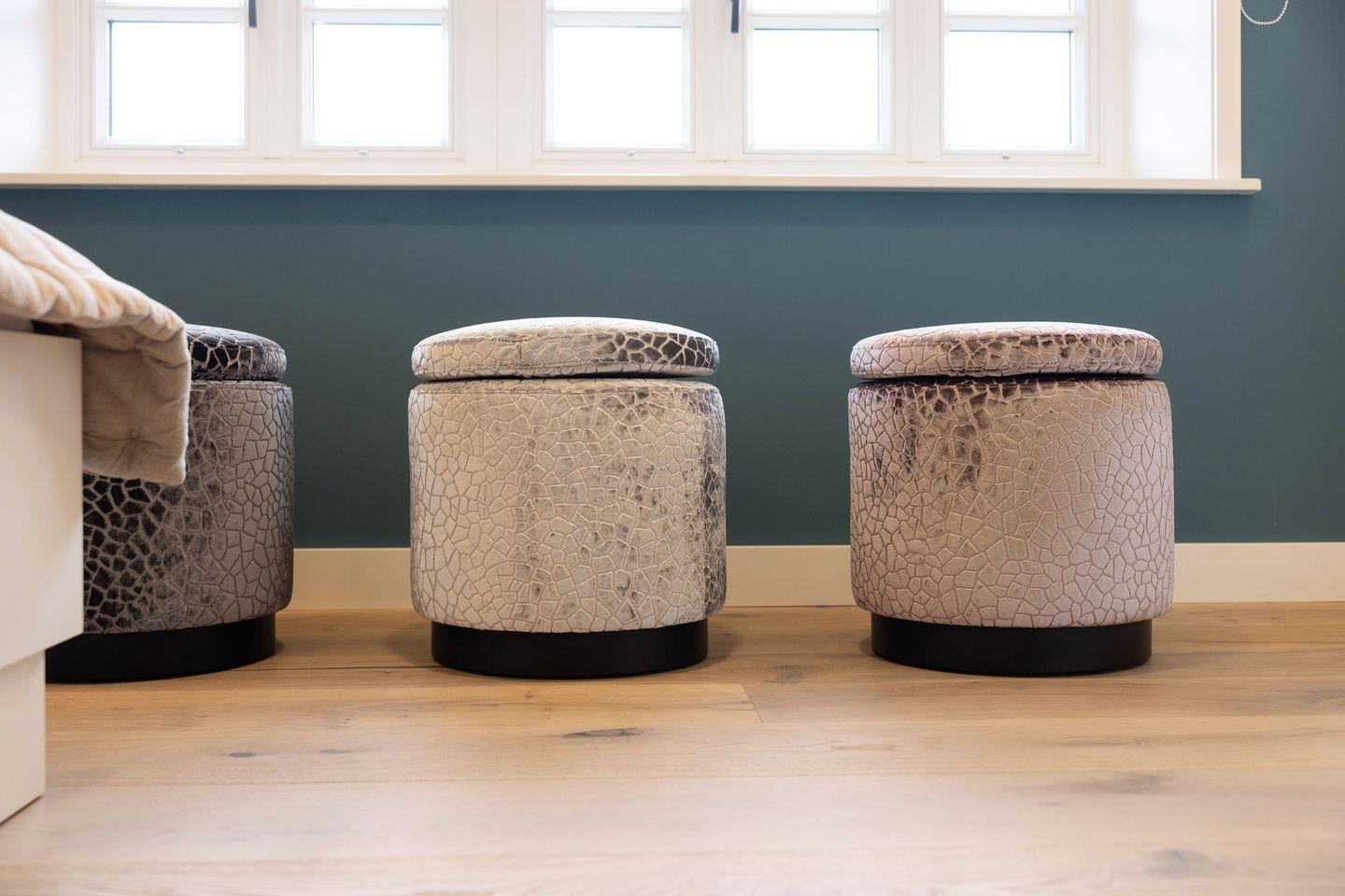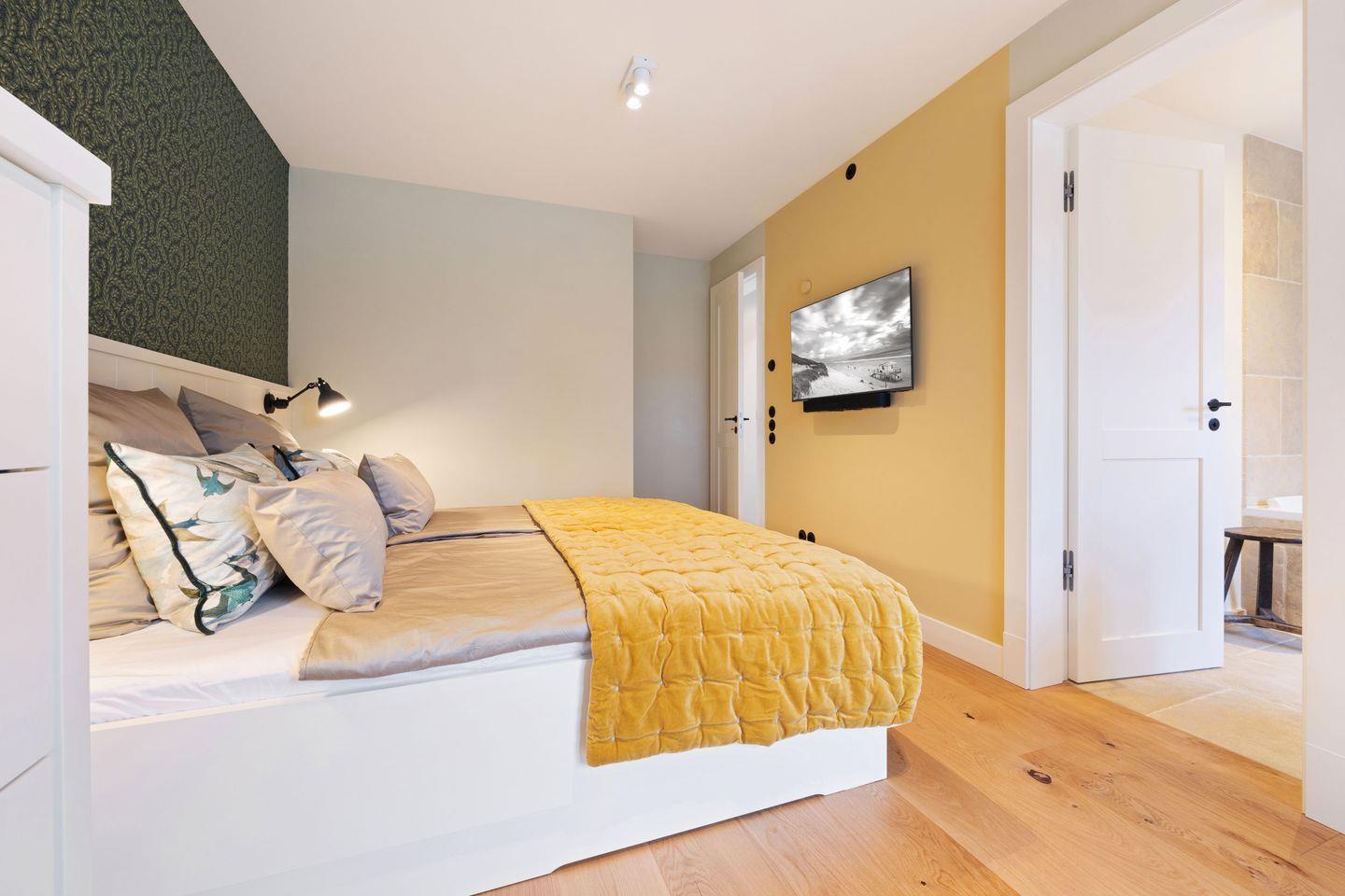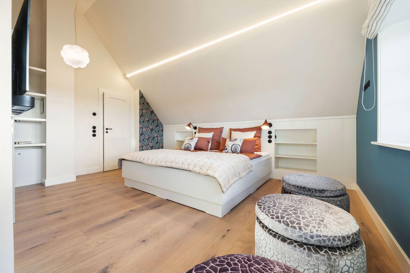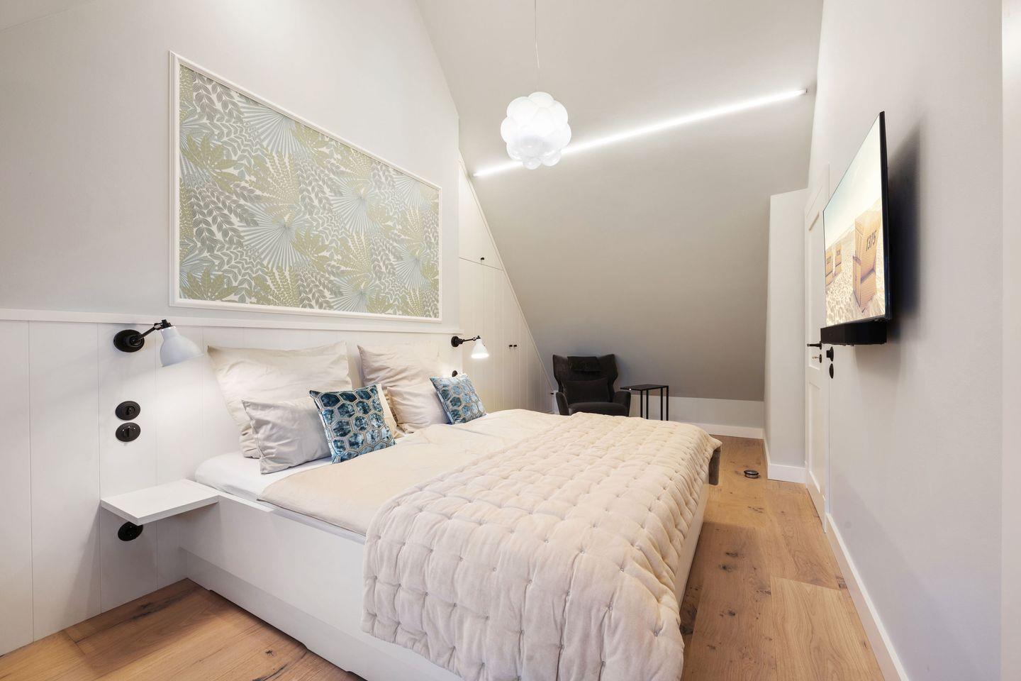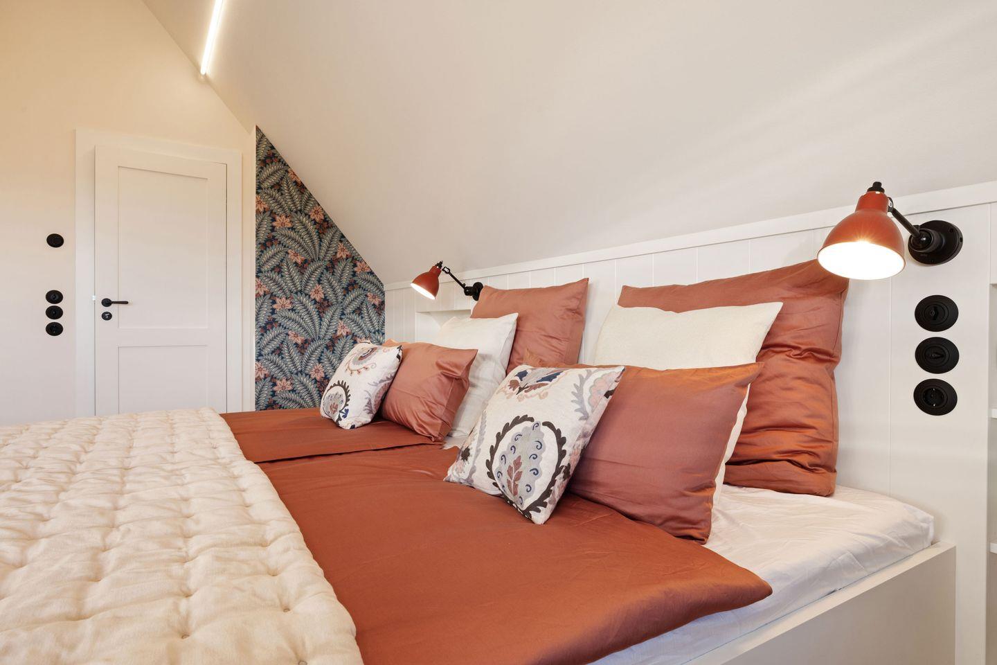 Alle drei Schlafzimmer sind mit luxuriösen Boxspring-Doppelbetten (180x200 cm) und Einbauschränken ausgestattet und bieten höchsten Schlafkomfort. Jedes Schlafzimmer verfügt über ein angrenzendes Badezimmer, das mit Tageslicht, Fußbodenheizung und Föhn ausgestattet ist und Ihnen ein kleines Wellness-Erlebnis bietet. Die Bäder verfügen über bodengleiche Duschen und eine Badewanne – perfekt für entspannte Momente.