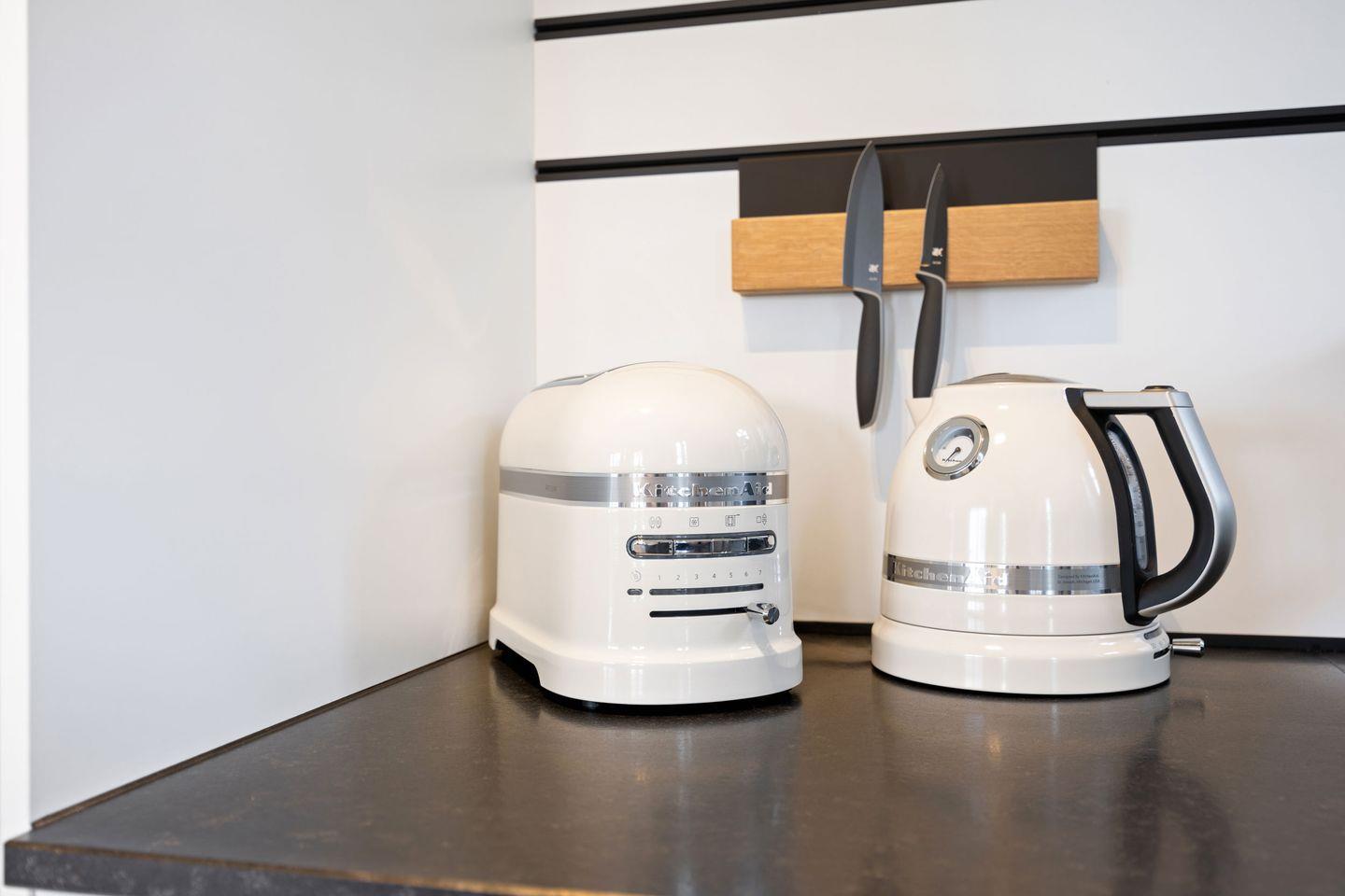 Die offene Wohnküche ist mit hochwertigen Geräten der Marke KitchenAid, einem Induktionsherd und einer Nespresso-Maschine ausgestattet. Hier finden Sie alles, was Sie für die Zubereitung Ihrer Lieblingsgerichte benötigen. Die Küche bietet eine perfekte Balance aus Funktionalität und stilvollem Design, ideal für gemeinsame Kochabende und gemütliche Mahlzeiten am Esstisch.