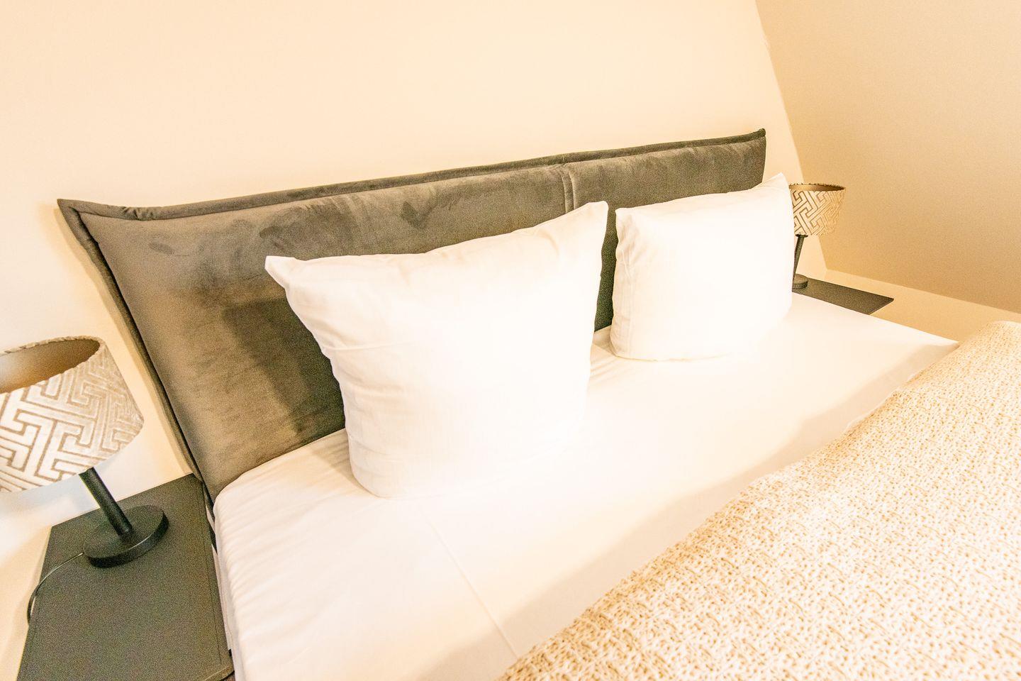Die Wohnung verfügt über zwei geräumige Schlafzimmer, die jeweils mit einem Boxspring-Doppelbett (180x200 cm), TV und maßgefertigten Tischlereinbauten ausgestattet sind. Diese Kombination aus stilvollem Design und hochwertigen Möbeln sorgt für erholsame Nächte und eine ruhige Rückzugsatmosphäre.
