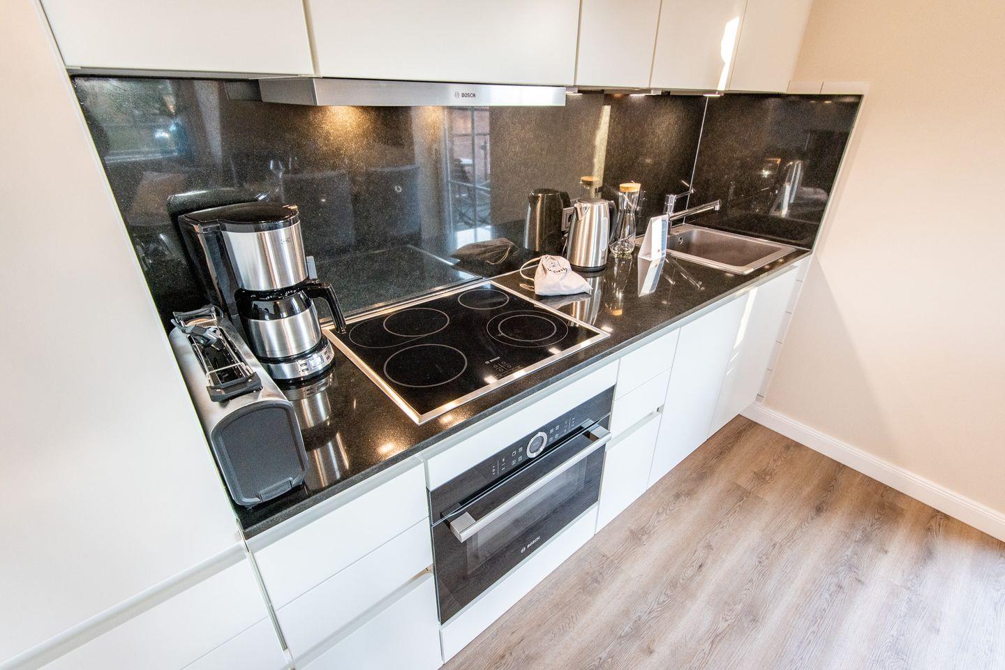 Die offene Küche bietet modernen Komfort und ist vollständig ausgestattet. Mit Cerankochfeld, Geschirrspüler und Filterkaffeemaschine lässt sich hier im Handumdrehen ein leckeres Essen zubereiten. Der angrenzende Essbereich bietet eine angenehme Atmosphäre für gemeinsame Mahlzeiten in geselliger Runde.