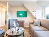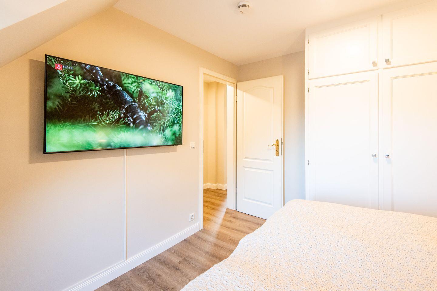 Die Wohnung verfügt über zwei stilvoll eingerichtete Schlafzimmer. Das Hauptschlafzimmer ist mit einem großzügigen Boxspring-Doppelbett (180x200 cm), TV und eleganten Tischlereinbauten ausgestattet. Das zweite Schlafzimmer bietet zwei Einzelbetten (je 90x200 cm) und ist ebenfalls mit einem TV sowie maßgefertigten Einbauten versehen – perfekt für erholsame Nächte und ausreichend Stauraum.