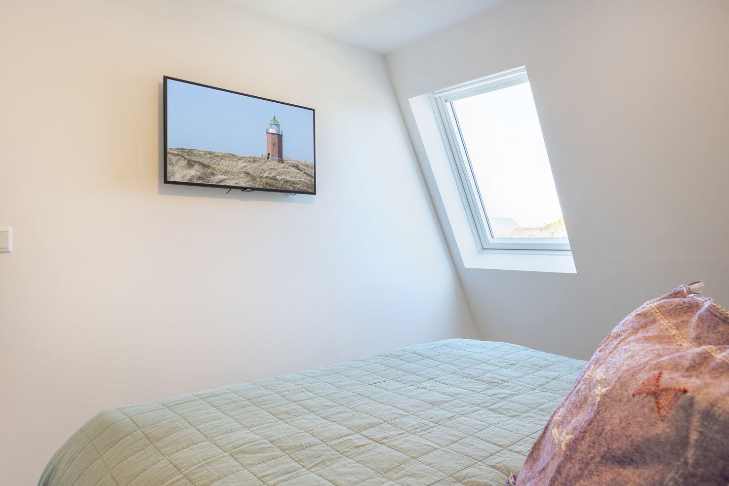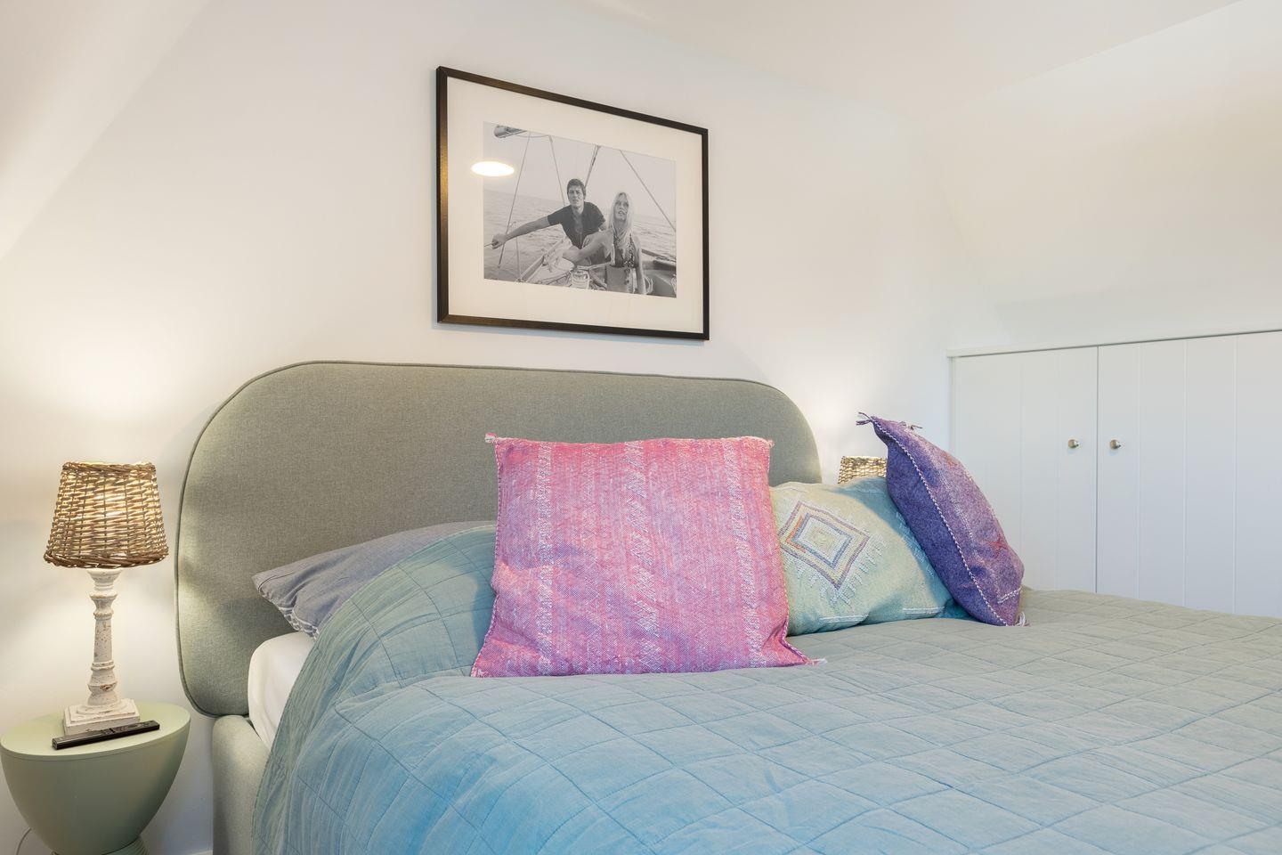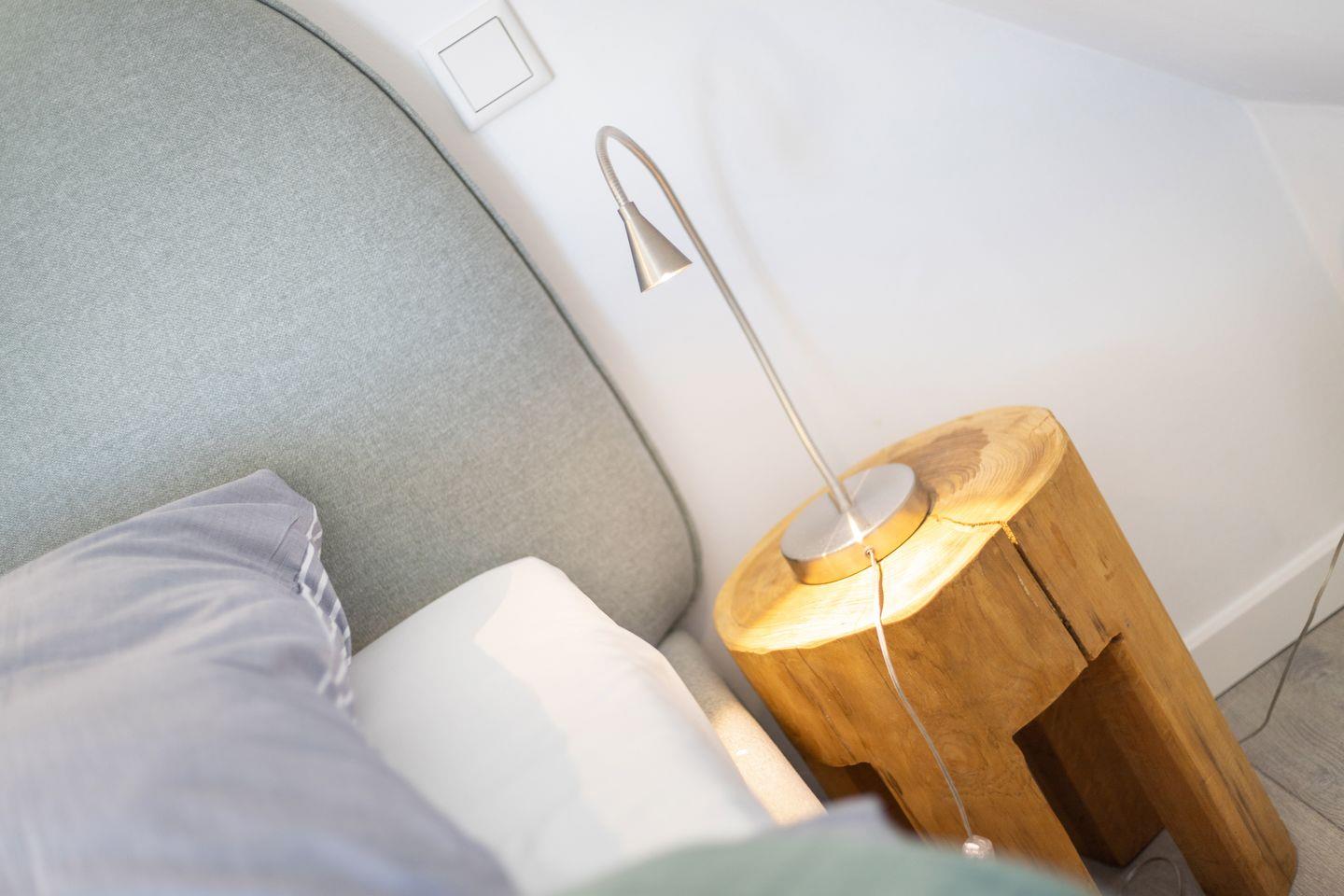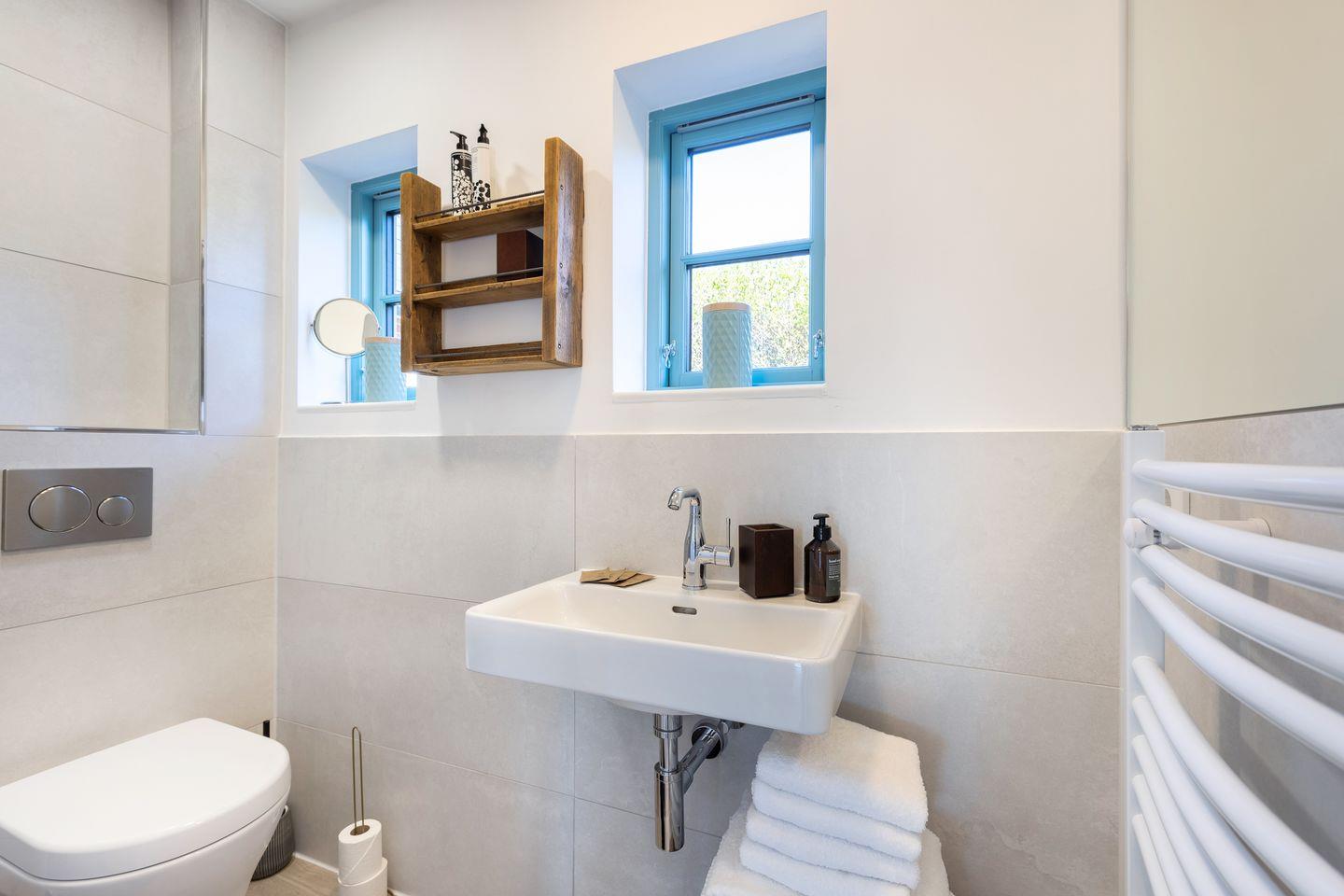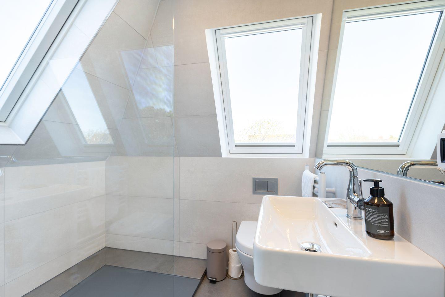Im Erdgeschoss erwartet Sie ein stilvolles Schlafzimmer mit komfortablem Doppelbett sowie ein modernes Bad mit bodentiefer Dusche. Zwei weitere gemütliche Schlafzimmer befinden sich im Obergeschoss – eines davon mit besonderem Charme dank durchdachter Bauweise und geschickt platzierten Fenstern. Auch hier steht Ihnen ein weiteres Badezimmer mit Dusche zur Verfügung.