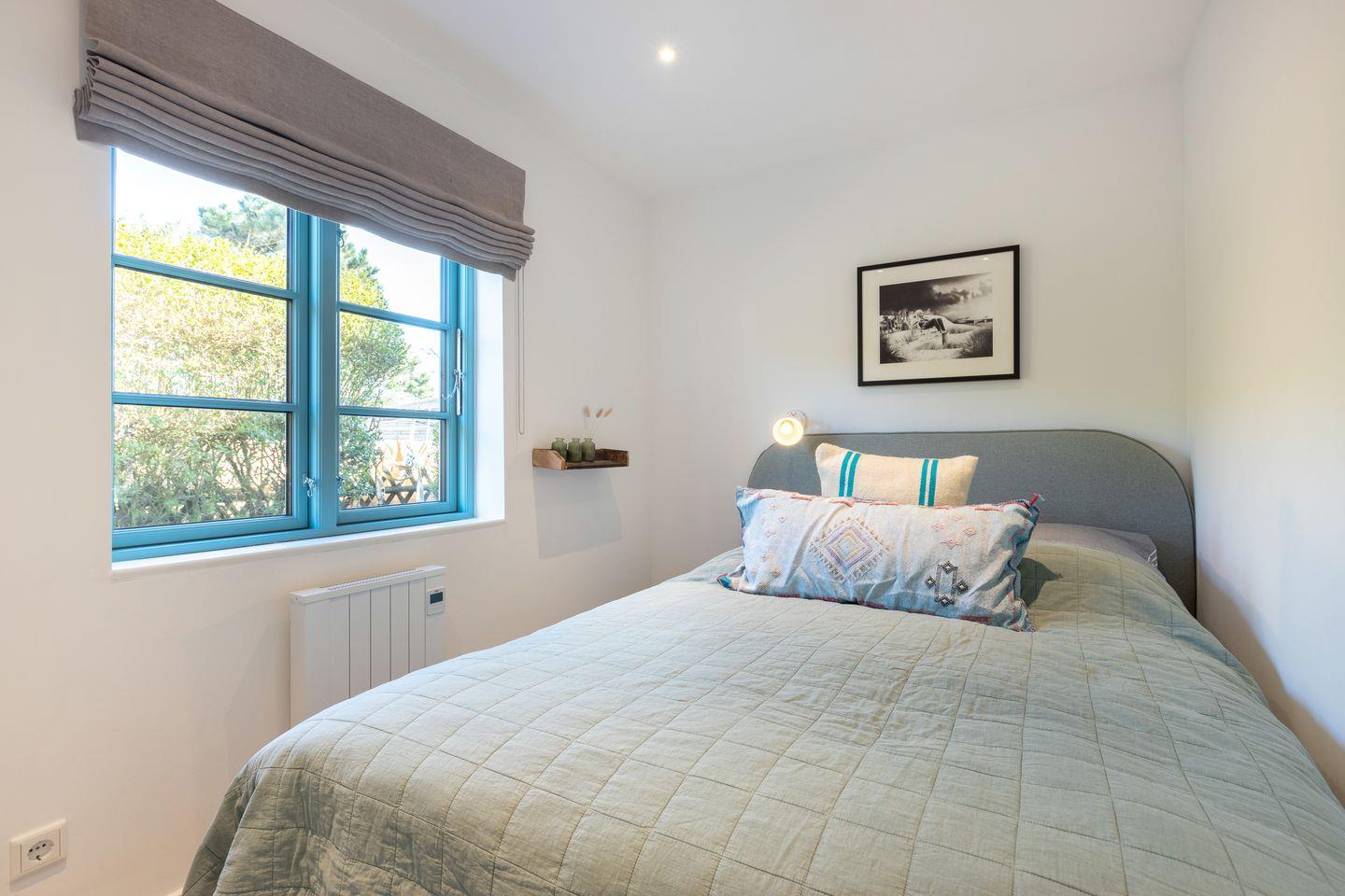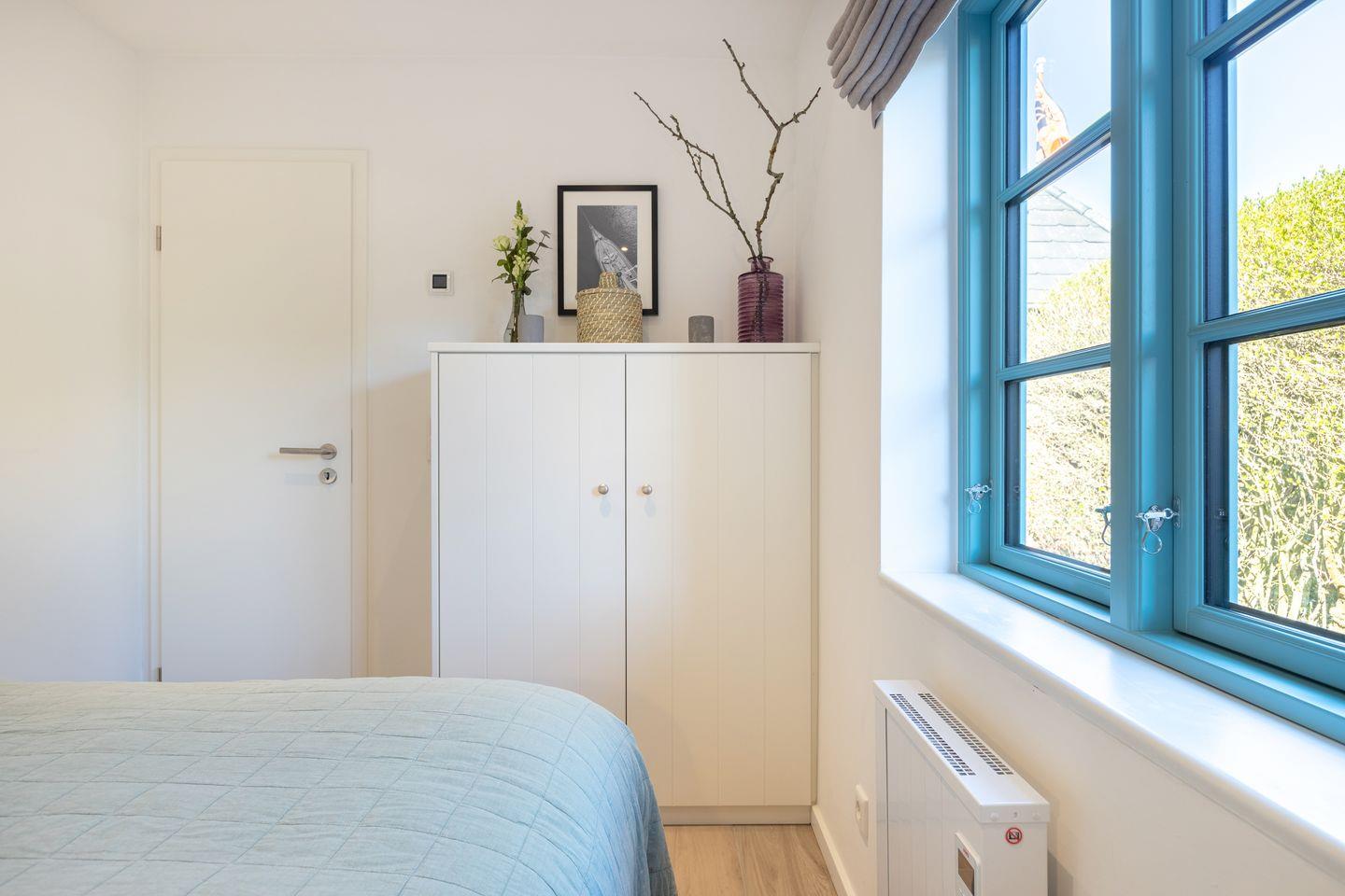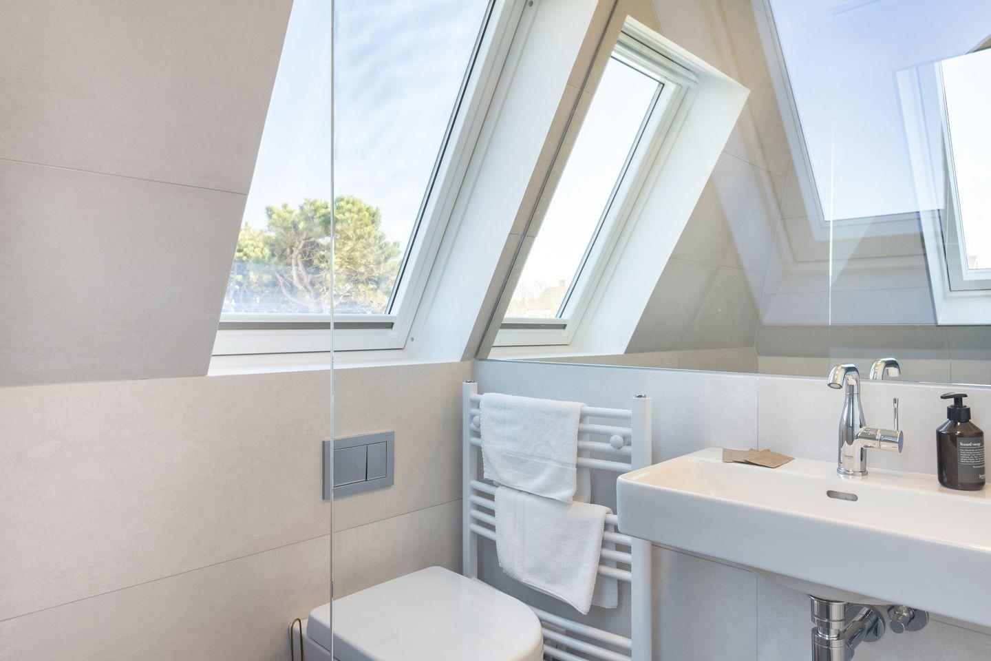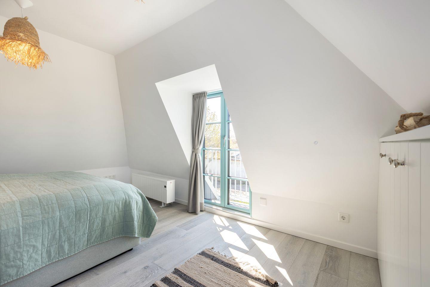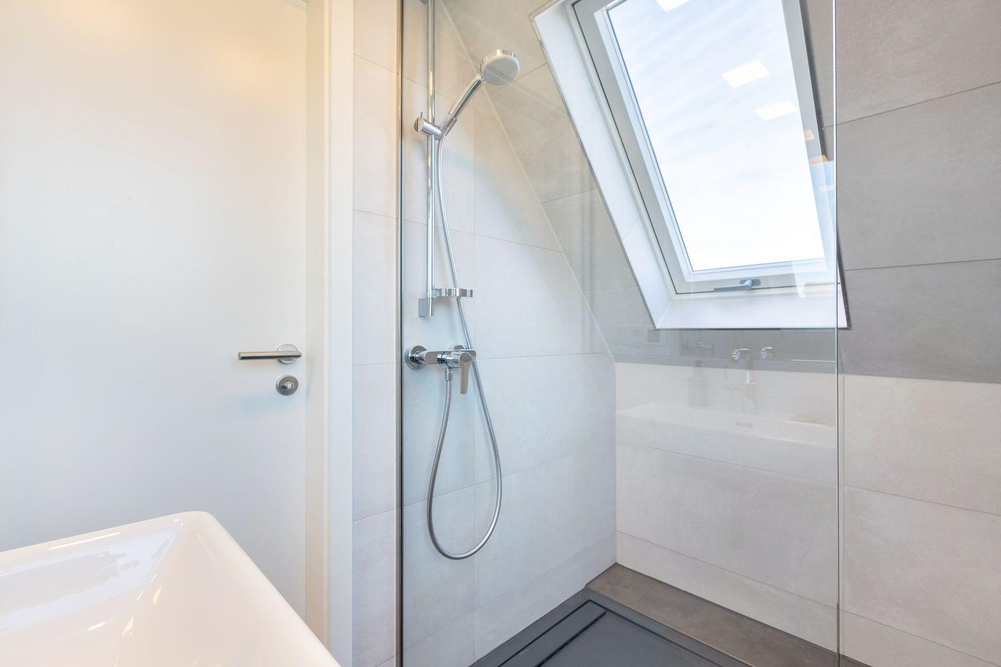 Im Erdgeschoss erwartet Sie ein stilvolles Schlafzimmer mit komfortablem Doppelbett sowie ein modernes Bad mit bodentiefer Dusche. Zwei weitere gemütliche Schlafzimmer befinden sich im Obergeschoss – eines davon mit besonderem Charme dank durchdachter Bauweise und geschickt platzierten Fenstern. Auch hier steht Ihnen ein weiteres Badezimmer mit Dusche zur Verfügung.