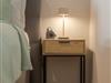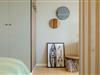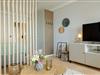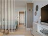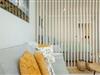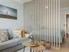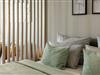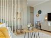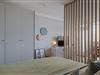 Durch eine stilvolle Lamellenwand sind Wohn- und Schlafbereich sanft voneinander getrennt – ein elegantes Detail, das Ruhe und Offenheit zugleich schafft. Das hochwertige Boxspringbett lädt zum Ausschlafen ein, während das gemütliche Sofa zum Verweilen bei einem guten Buch oder einem Filmabend einlädt.