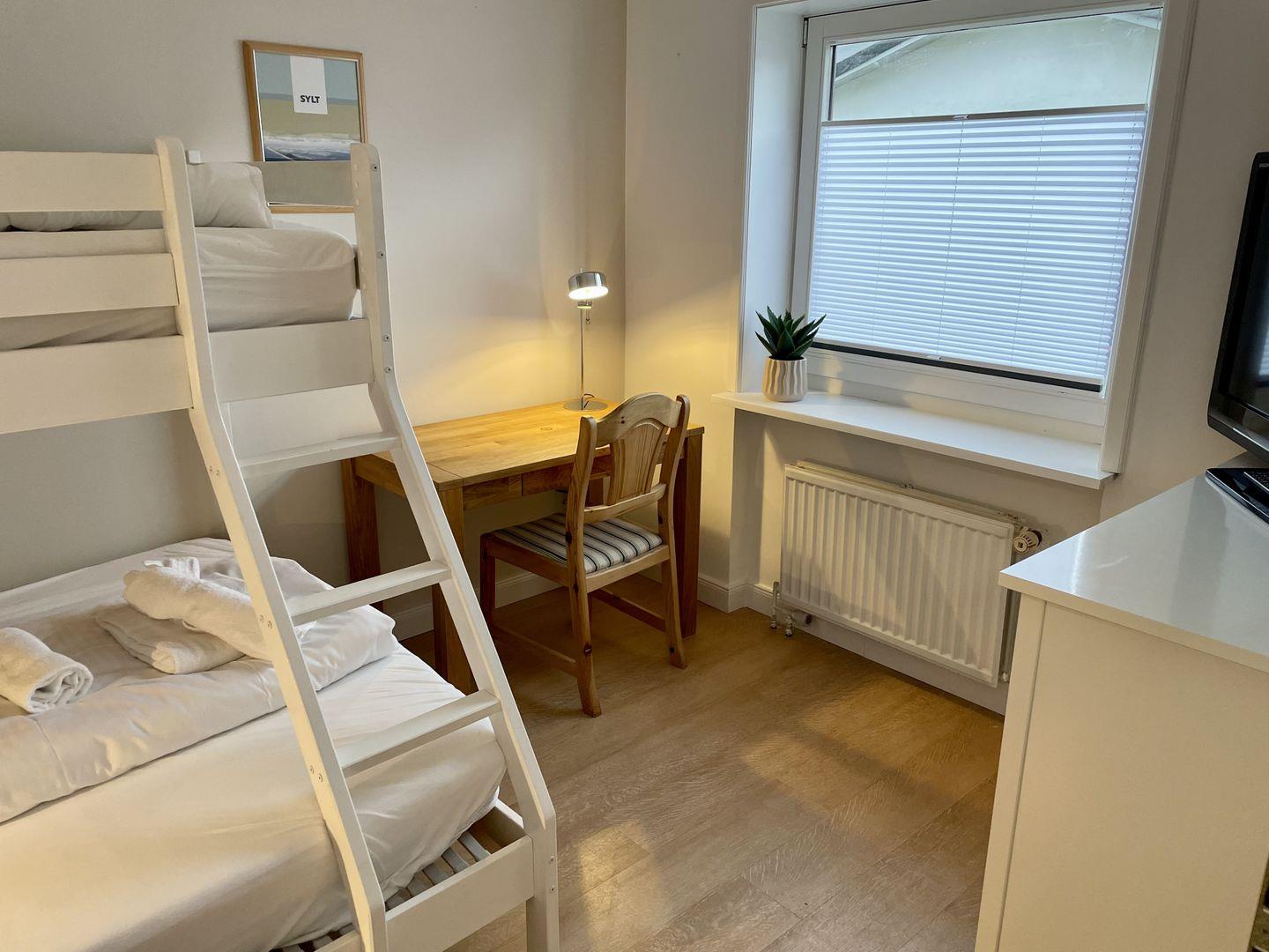 Diese gemütliche ca. 55 m² große Ferienwohnung für bis zu 4 Personen verläuft über zwei Ebenen. Das Erdgeschoss bietet Ihnen ein lichtdurchflutetes Wohnzimmer mit Essbereich, eine gut ausgestattete Küche samt Essecke und ein Gäste-WC. Über eine Treppe gelangen Sie runter ins Souterrain. Dort erwartet Sie ein Schlafzimmer mit ausziehbarem Doppelbett (160x200 cm) sowie ein Schlafzimmer mit Etagenbett (90/140x200 cm). Nutzen Sie gerne den schönen Wintergarten mit Südausrichtung samt Gartenmöbeln. WLAN sowie kostenlose, öffentliche Parkplatzmöglichkeiten vor dem Haus sind vorhanden. Haustiere sind willkommen.