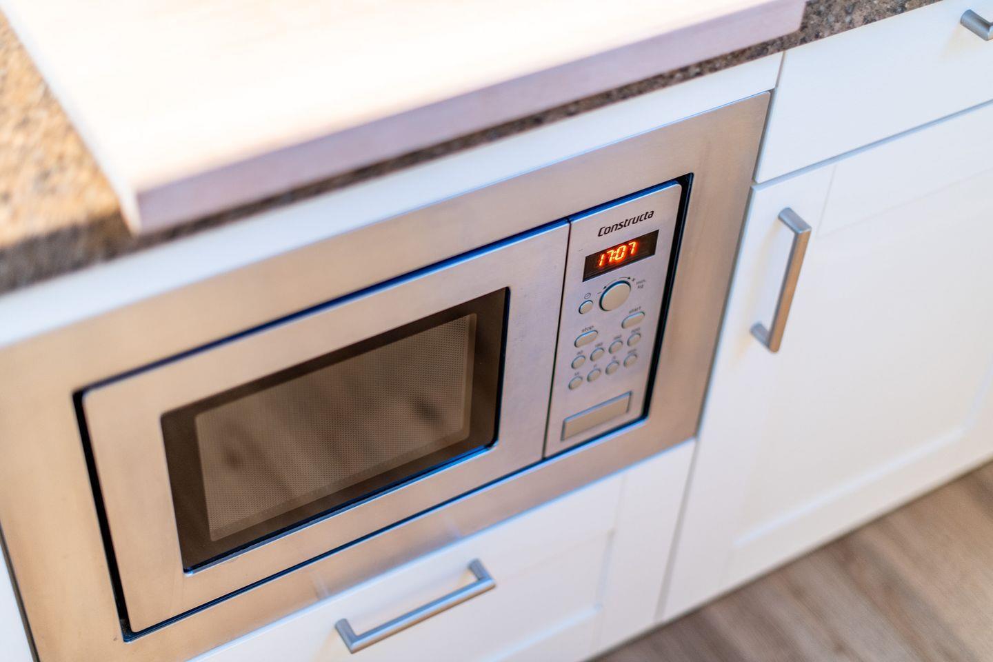 Die offene Einbauküche ist mit modernen Geräten ausgestattet, darunter ein Geschirrspüler, eine Mikrowelle und eine Nespresso-Maschine. Hier finden Sie alles, was Sie für die Zubereitung Ihrer Lieblingsgerichte benötigen.