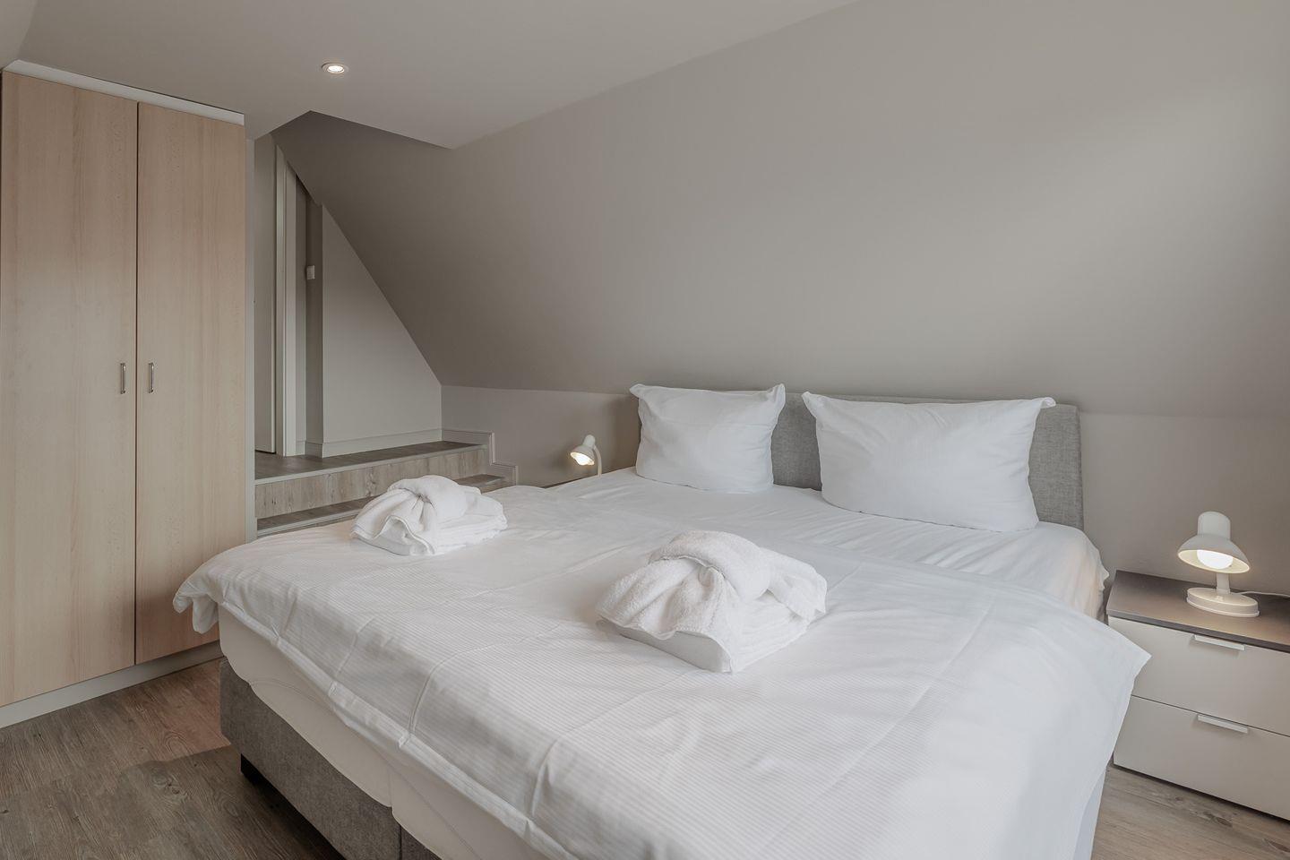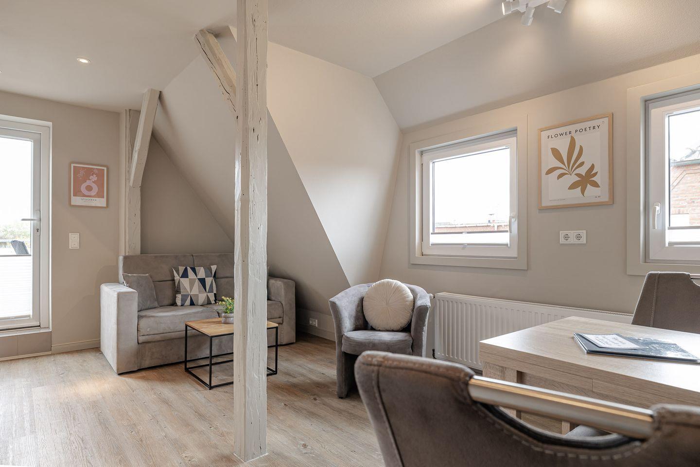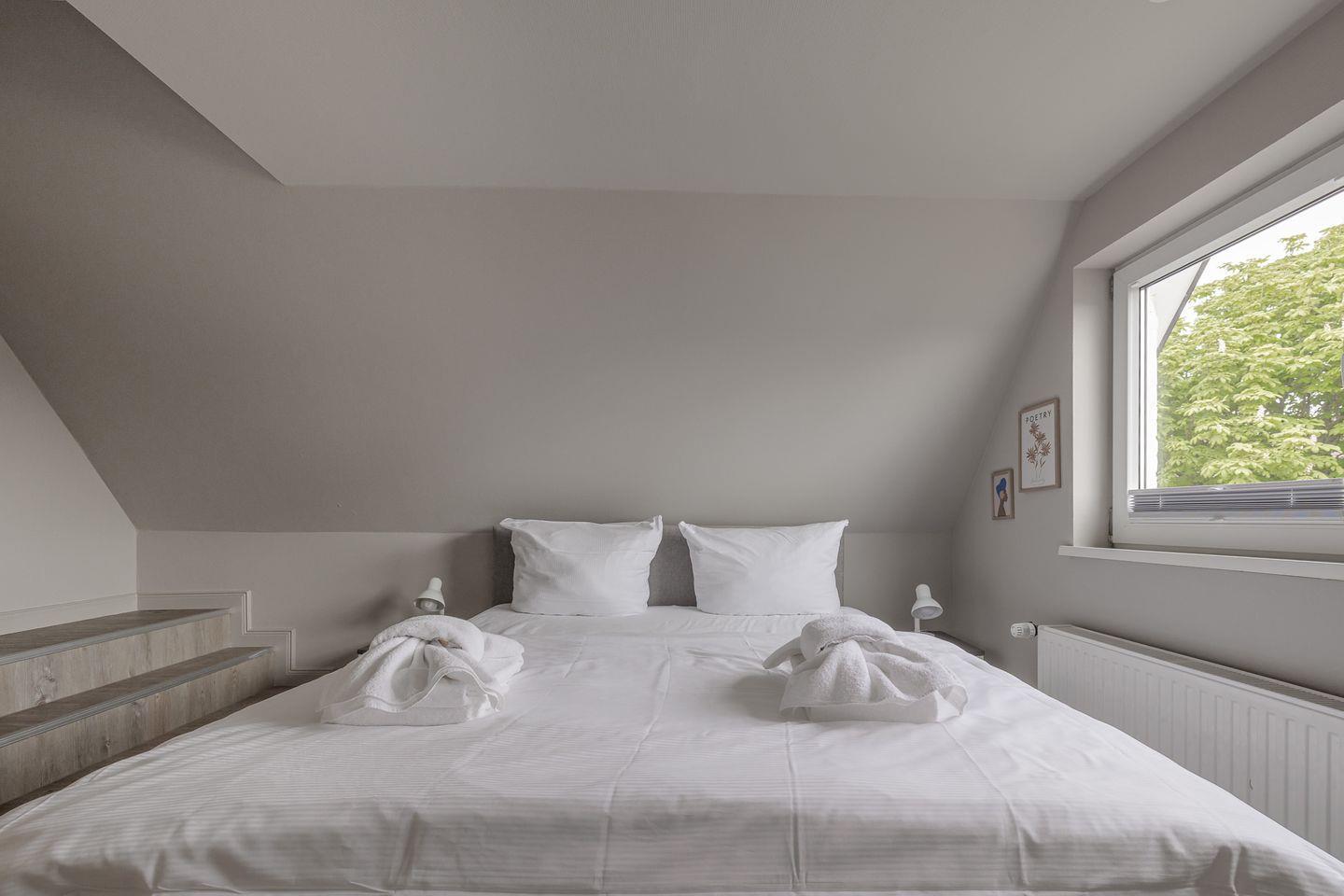 Das gut geschnittene Appartement verfügt über einen Wohnbereich mit Couch und kleiner Essecke. Die große Dachterrasse (Südlage), mit herrlichem Blick in den Garten, lädt zum Frühstück oder Sundowner ein. Eine gut ausgestattete Küchenzeile, das helle Duschbad sowie das Schlafzimmer mit bequemem Boxspringbett und Einbauschrank runden das Appartement Hummer ab.