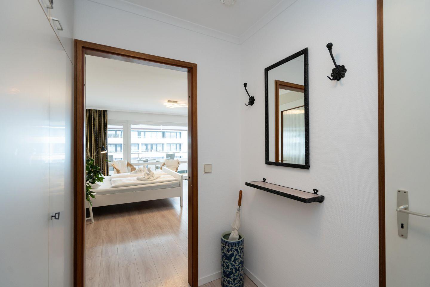 StrandZEIT – Das charmante 1-Zimmer App. für bis zu 2 Personen befindet sich zentral in Westerland. Das App. bietet Ihnen eine offene, gut ausgestattete Küche mit angrenzendem Ess- und Schlafbereich sowie ein schönes Duschbad. Nutzen Sie gerne den schönen Balkon samt Balkonmöbeln und entdecken Sie den kleinen "Meerblick". Kostenloses WLAN sowie ein Fahrstuhl sind vorhanden. Haustiere sind erlaubt. Der zugehörige PKW-Tiefgaragenstellplatz eignet sich ausschließlich für Kleinwagen (max. Gesamtlänge 5 m / max. Gesamthöhe 1,65 m / max. Gesamtbreite 1,85 m / max. Gesamtgewicht 1.700 kg / max. Reifenbreite 45 cm). Gebührenpflichtige Stellplätze finden sich vor dem Haus. Kostenlose Parkmöglichkeiten sind in wenigen Gehminuten zu erreichen.