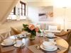 Wohn-/Koch-/Essbereich: Gemütlicher Wohnbereich mit Sofaecke und Rattansessel lädt zum Verweilen ein. Die offene und gut ausgestattete Küche wird perfekt von einem runden Esstisch mit Platz für 4 Personen zum Wohnbereich abgegrenzt.