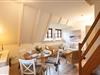 Über eine steile Holztreppe gelangen Sie in das Dachgeschoss