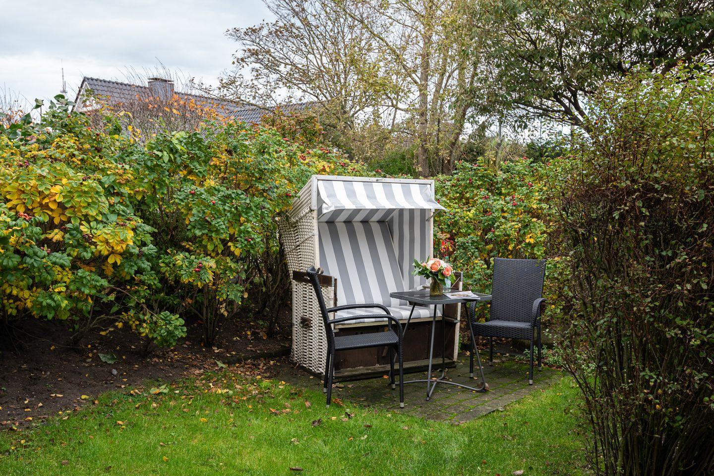 Garten: Im Garten steht Ihnen eine Sonnenkuhle Richtung Norden mit Gartenmöbeln und Strandkorb zur Verfügung.