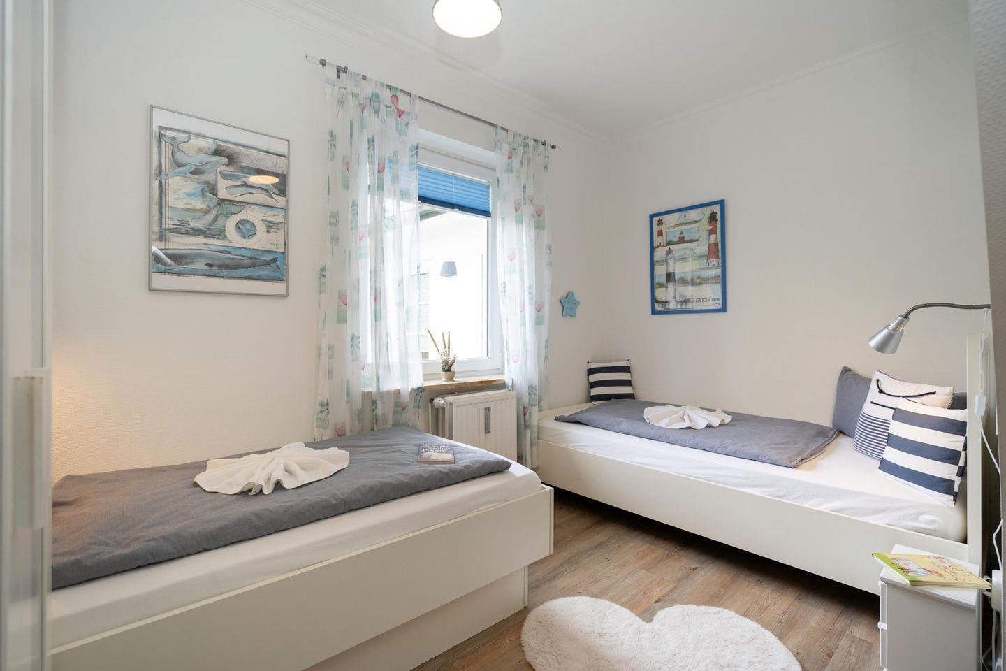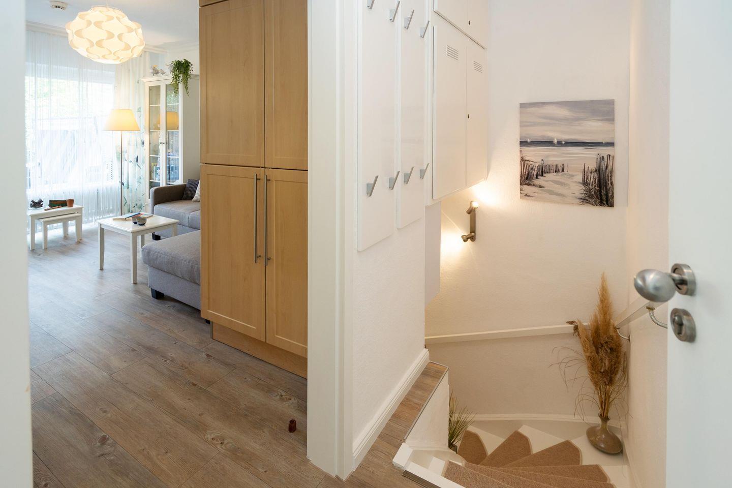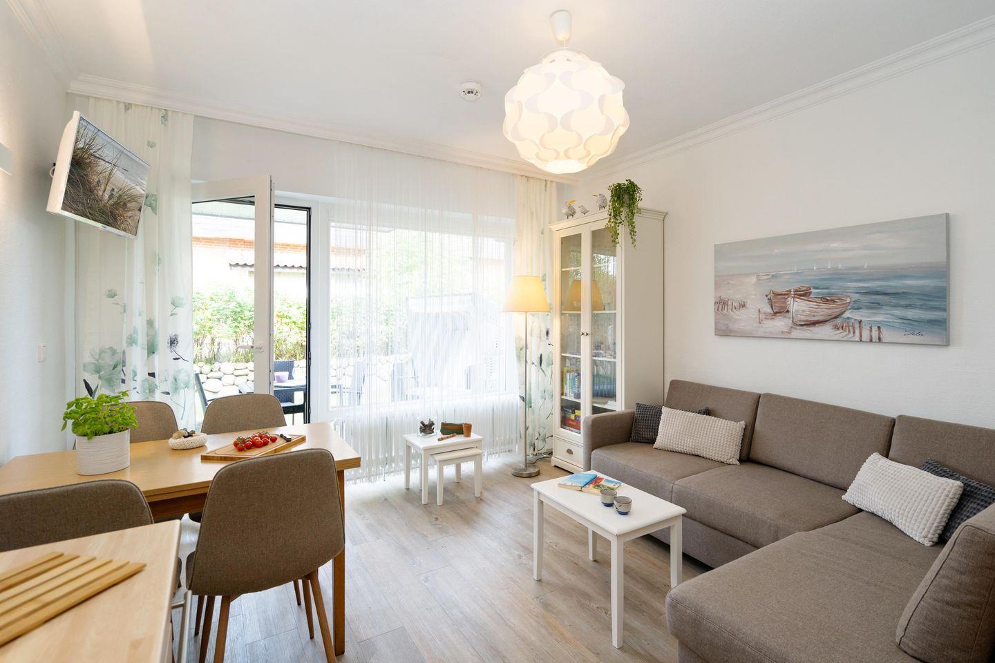 Gemütlich renovierte ca. 59 m² große Ferienwohnung für bis zu 4 Personen mit schönem Garten in ruhiger, zentraler Lage. Inklusive WLAN, zugehörigem PKW-Stellplatz sowie Strandkorb.