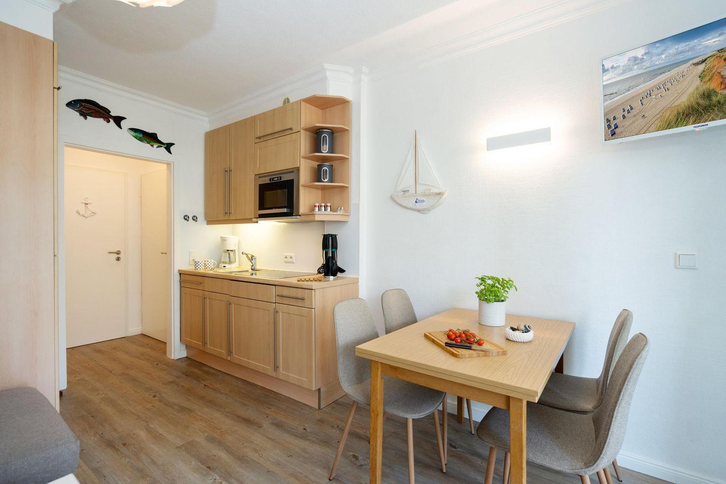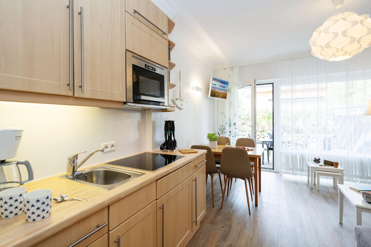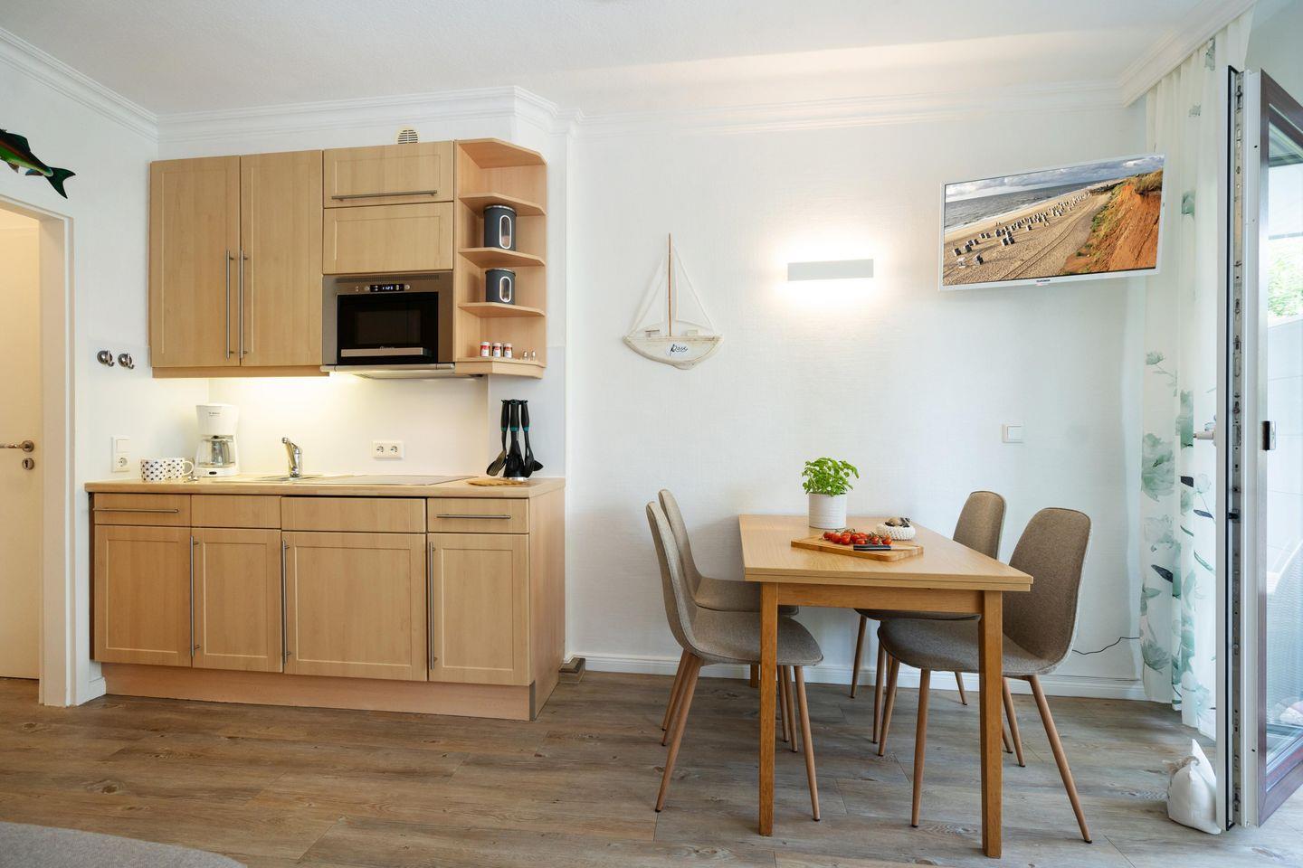 Gemütlich renovierte ca. 59 m² große Ferienwohnung für bis zu 4 Personen mit schönem Garten in ruhiger, zentraler Lage. Inklusive WLAN, zugehörigem PKW-Stellplatz sowie Strandkorb.