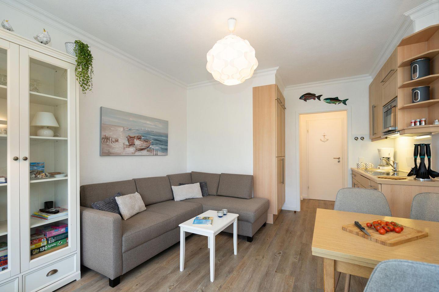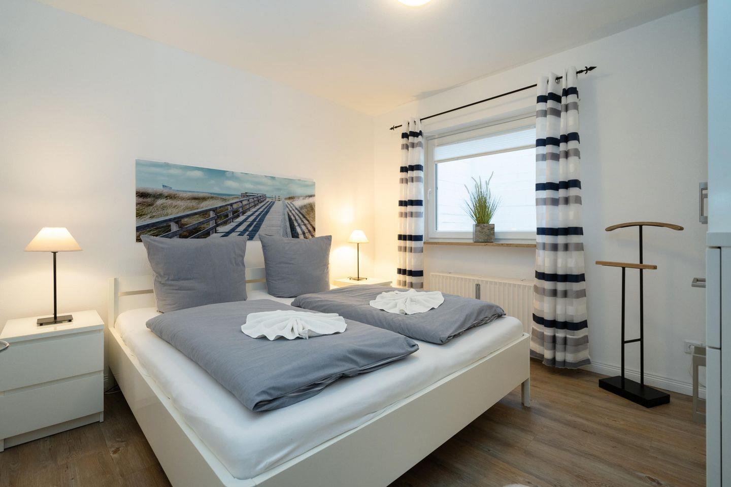Diese schöne ca. 59 m² große Ferienwohnung für bis zu 4 Personen verläuft über zwei Ebenen und befindet sich in einer strandnahen Lage im Norden Westerlands. Das Erdgeschoss bietet Ihnen einen stilvoll eingerichteten Wohn- und Essbereich, der durch seine gemütliche Atmosphäre zur Entspannung einlädt. Das ausziehbare Sofa bietet die Möglichkeit einer Schlaffunktion. Die offene Küche samt Geschirrspüler ist voll ausgestattet. Ebenfalls im Erdgeschoss befindet sich ein Zimmer mit zwei Einzelbetten. Über eine Treppe gelangen Sie runter ins Souterrain. Dort erwartet Sie ein helles Doppelschlafzimmer und ein Duschbad. Nutzen Sie gerne die schöne überdachte Terrasse mit angrenzendem Garten samt Gartenmöbeln und Strandkorb. Von der SyltOase sind Sie in wenigen Minuten fußläufig an der Westerländer Promenade, dem Wäldchen am Friedrichshain und beim nahegelegenen Supermarkt "Nah und Frisch". Die Bushaltestelle "Marinesiedlung" befindet sich gegenüber des Hauses. Auch der Nachbarort Wenningstedt, die Westerländer Innenstadt mit Ihrem breiten Gastronomischen Angebot sind nicht weit entfernt. Kostenloses WLAN, ein zugehöriger PKW-Stellplatz, eine gemeinschaftliche Waschmaschine sowie Wäschetrockner (jeweils gebührenpflichtig) stehen Ihnen zur Verfügung. Ein Haustier ist erlaubt. Auf Anfrage besteht die Möglichkeit die Ferienwohnung mit mehr als 4 Personen zu beziehen.