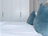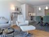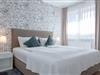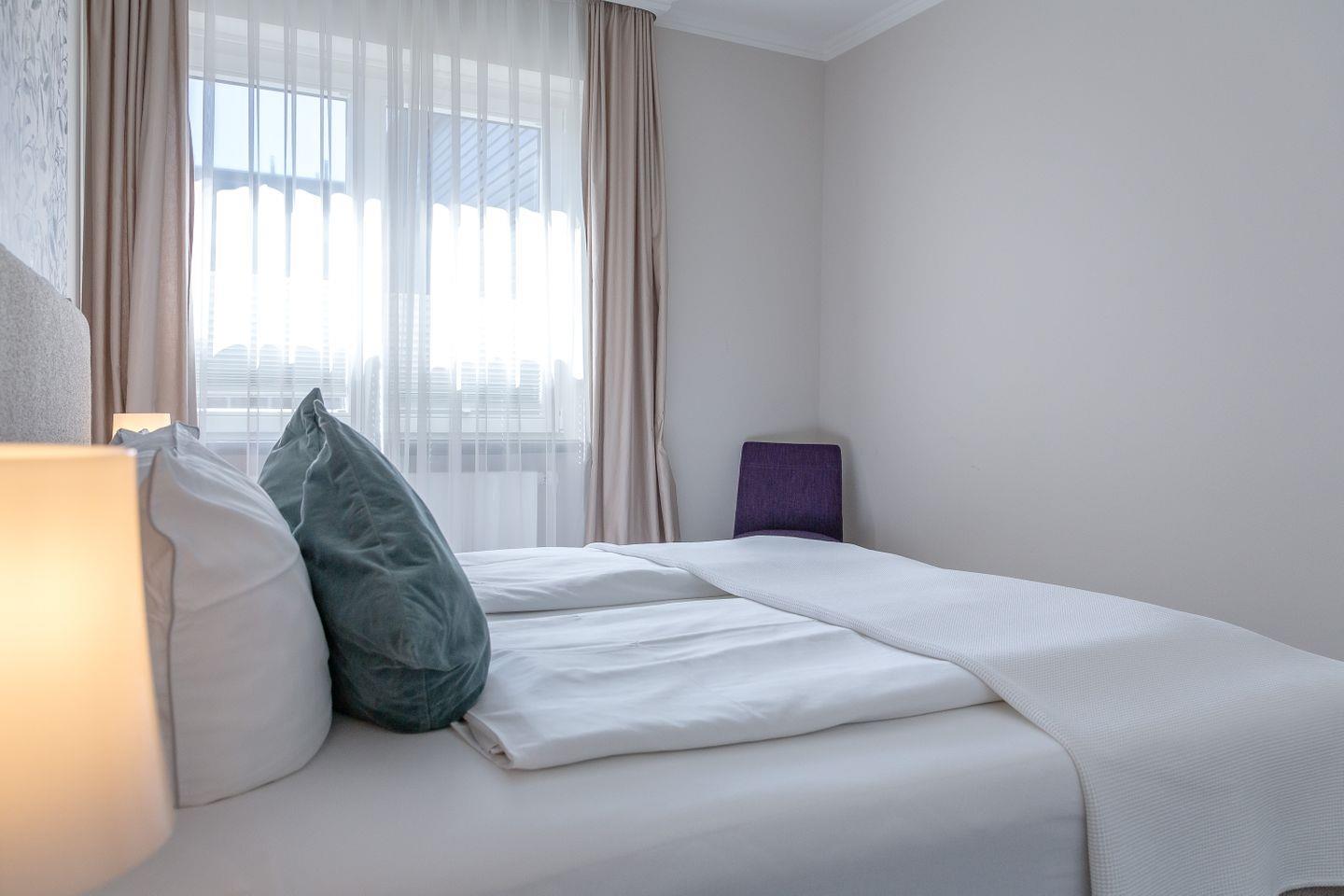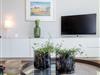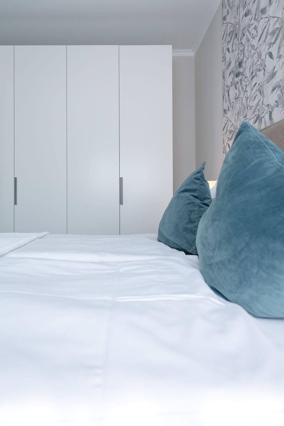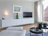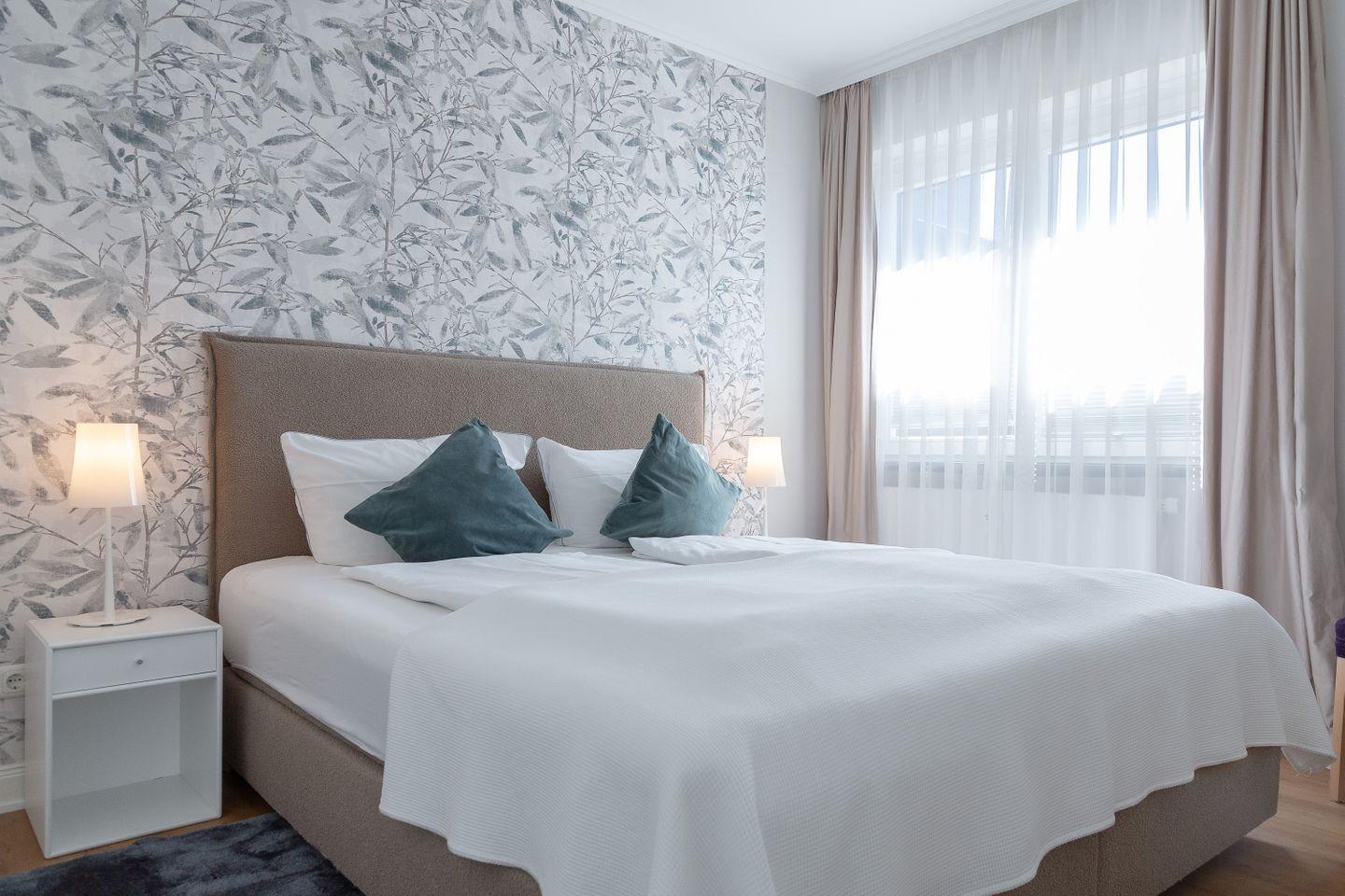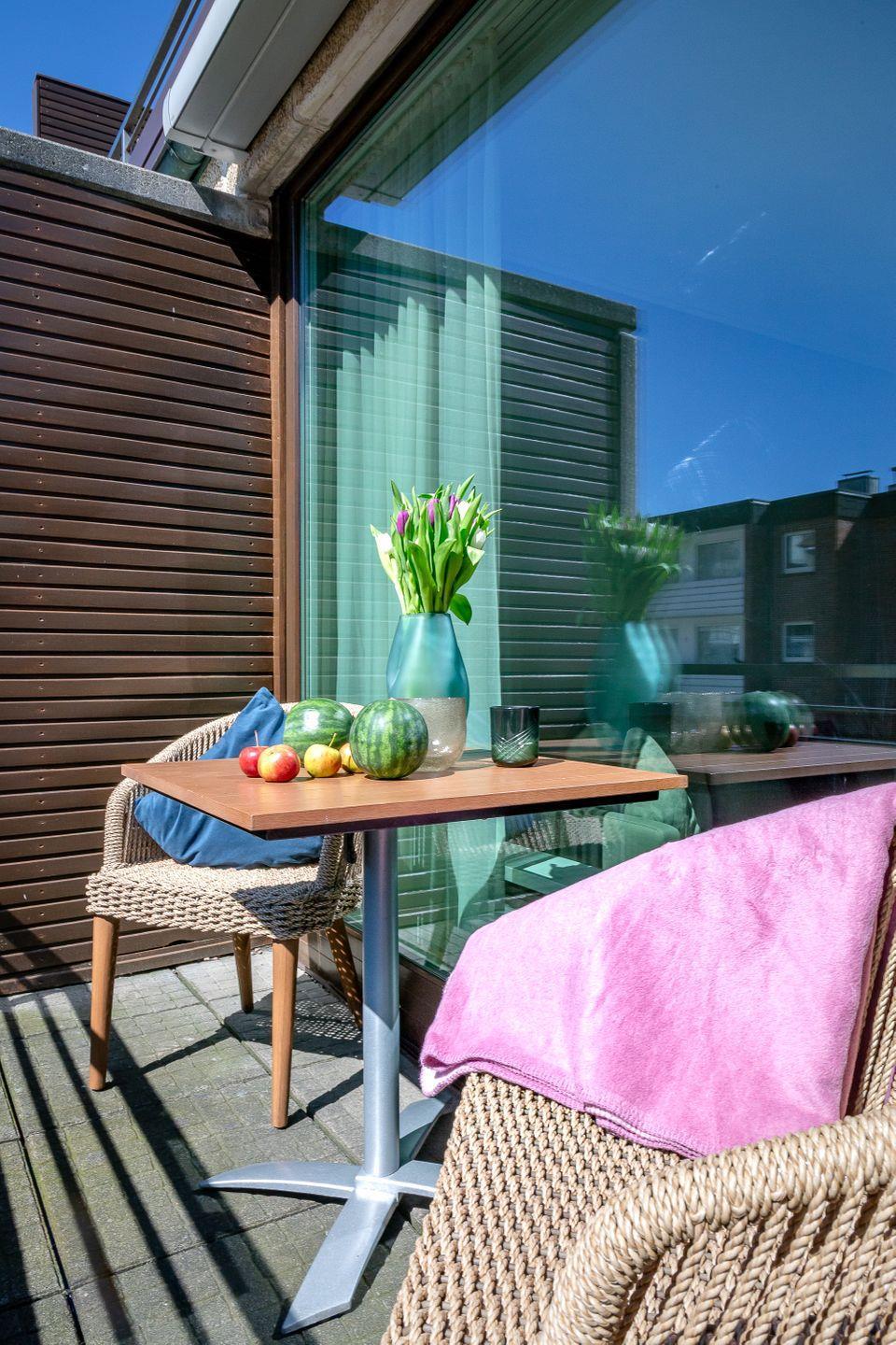 Mit einer großzügigen Fläche von 60 m² bietet die Wohnung Platz für bis zu drei Personen und ist damit ideal für kleine Familien oder Paare, die einen entspannten Aufenthalt direkt am Strand genießen möchten. Das ausreichende Platzangebot wird durch ein helles Schlafzimmer und ein einladendes Wohnzimmer ergänzt, das mit einem bequemen Sofa und einer gemütlichen Sofaecke ausgestattet ist. Der hochwertige Parkettboden sorgt zusätzlich für ein behagliches Wohngefühl.