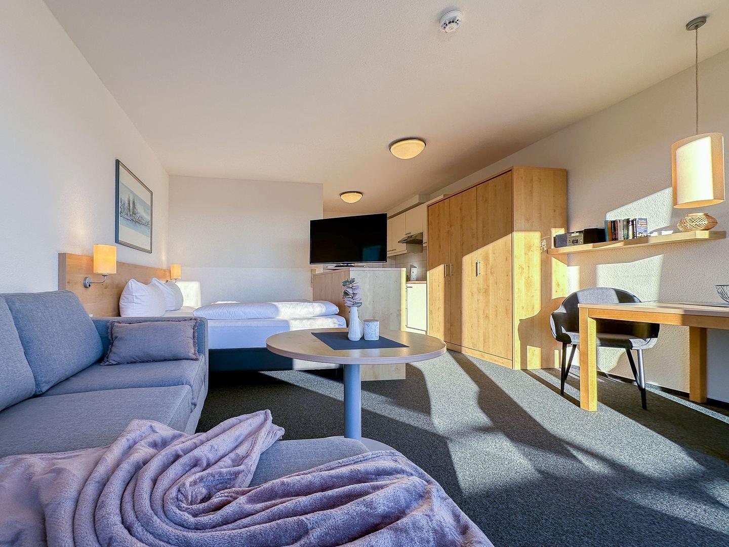 Appartement Sinnewyn ist ein modernes Einraumwunder unweit der Westerländer Innenstadt.