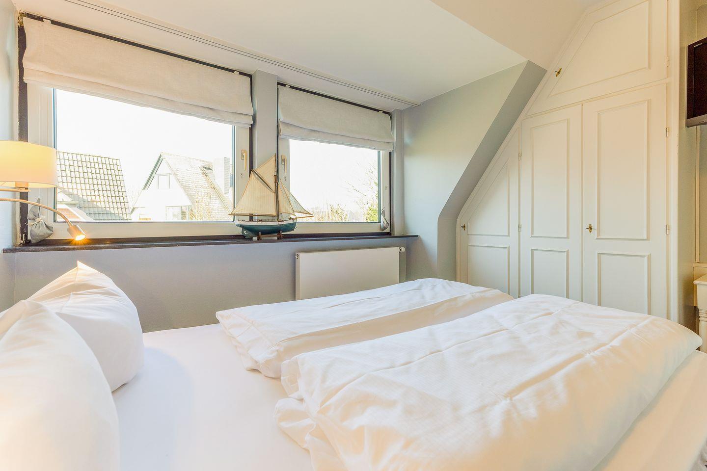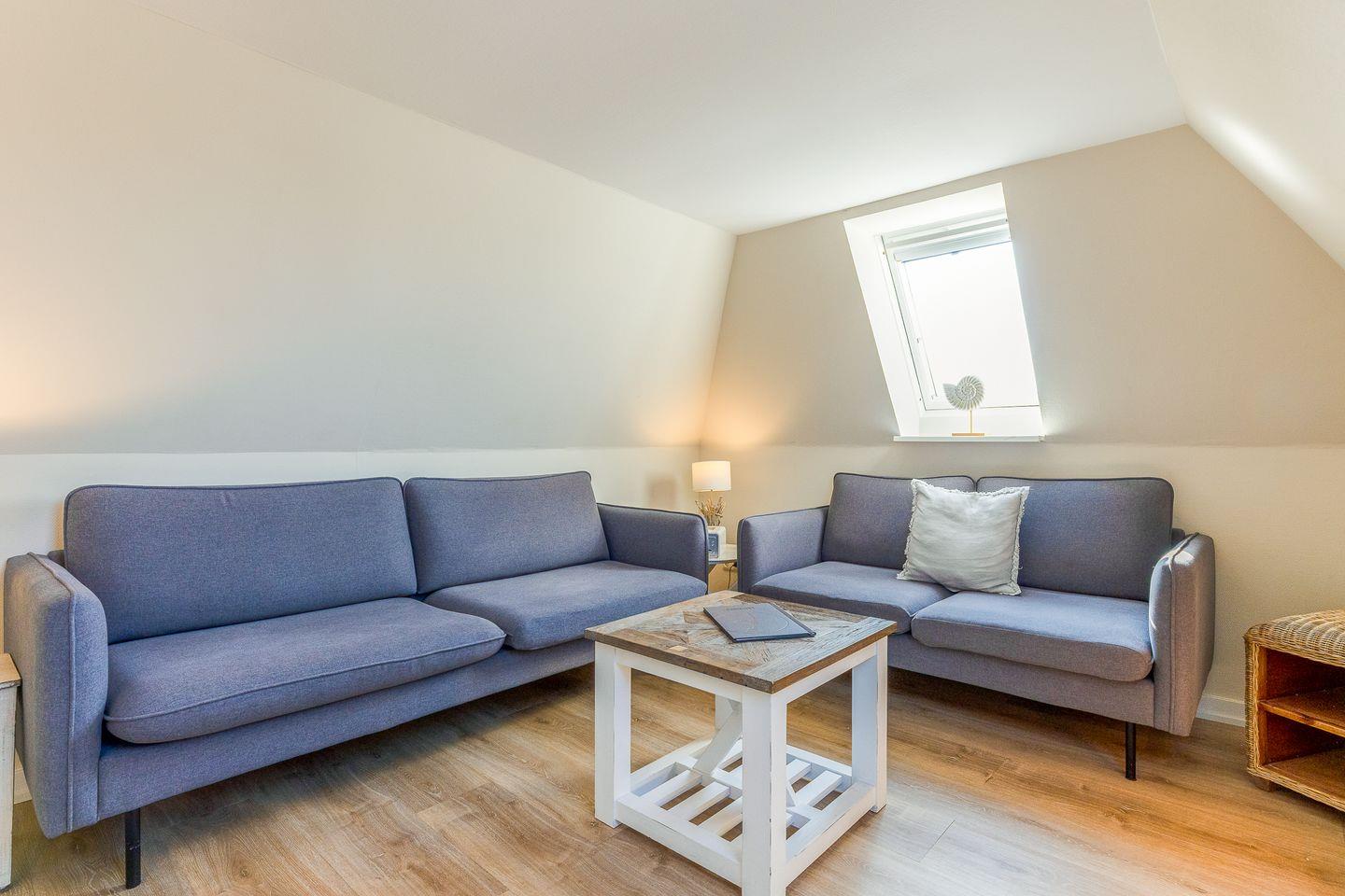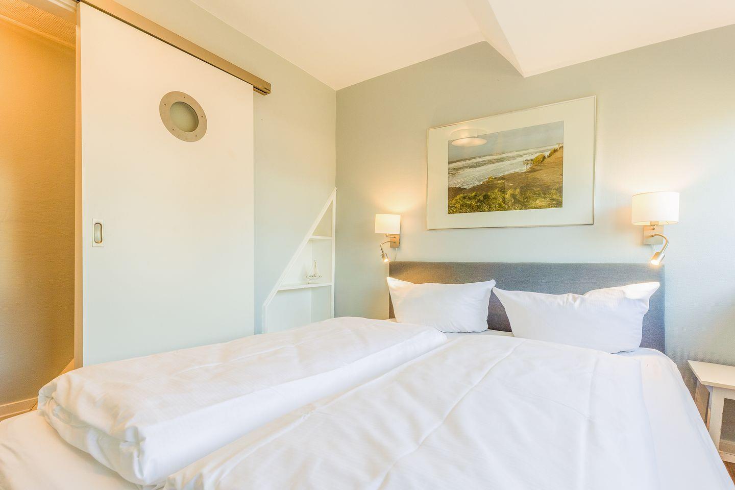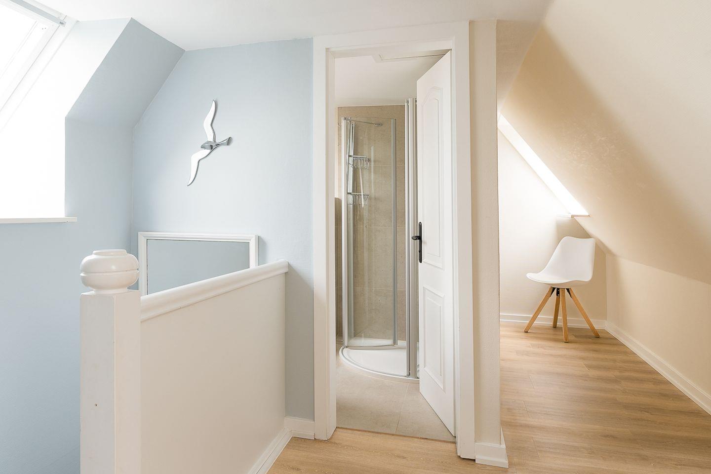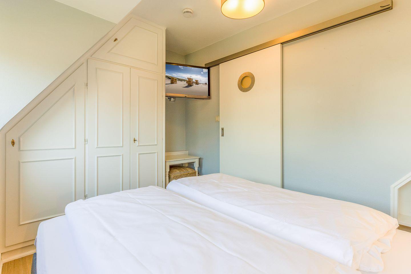 Der Schnitt des Appartements ist ungewöhnlich und kreativ wie die niederländische Hauptstadt: Das Schlafzimmer mit seinem komfortablen Polsterbett befindet sich in der 1. Etage und punktet mit viel maritimer Gemütlichkeit. Eine (etwas steile) Treppe höher führt ein langer Flur durch die Küche mit Essbereich in das helle und einladende Wohnzimmer. Auf der anderen Seite des Flurs wartet ein weiteres Schlafzimmer mit zwei Einzelbetten sowie ein modernes, helles Bad mit Walk-in Dusche (aufgrund der etwas niedrigeren Deckenhöhe für größere Menschen nicht geeignet).