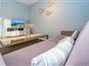 Der großzügig geschnittene Wohnbereich besteht aus einer kleinen Chillout-Ecke mit Schlafcouch sowie einem Esstisch nebst hochwertig ausgestatteter Küchenzeile. Die bodentiefen Fenster sind zugleich der Austritt auf die Terrasse (Westlage), auf der es sich im Sommer perfekt im Strandkorb relaxen lässt. Nebenan im Schlafzimmer steht ein hochwertiges Boxspringbett und - zur Freude der Damen - gibt es hier sogar einen kleinen Schminktisch.