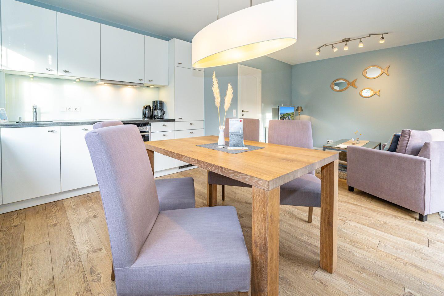 Hier lautet das Motto: Wohnen und Entspannen mit Heimat-Atmosphäre. Das gut geschnittene Appartement ist im modernen nordischen Stil eingerichtet mit viel Geschmack und Liebe zum Detail. Natürliche Farben und Materialien erinnern an einen Tag am Strand und sorgen für das berühmte "Hygge-Gefühl".