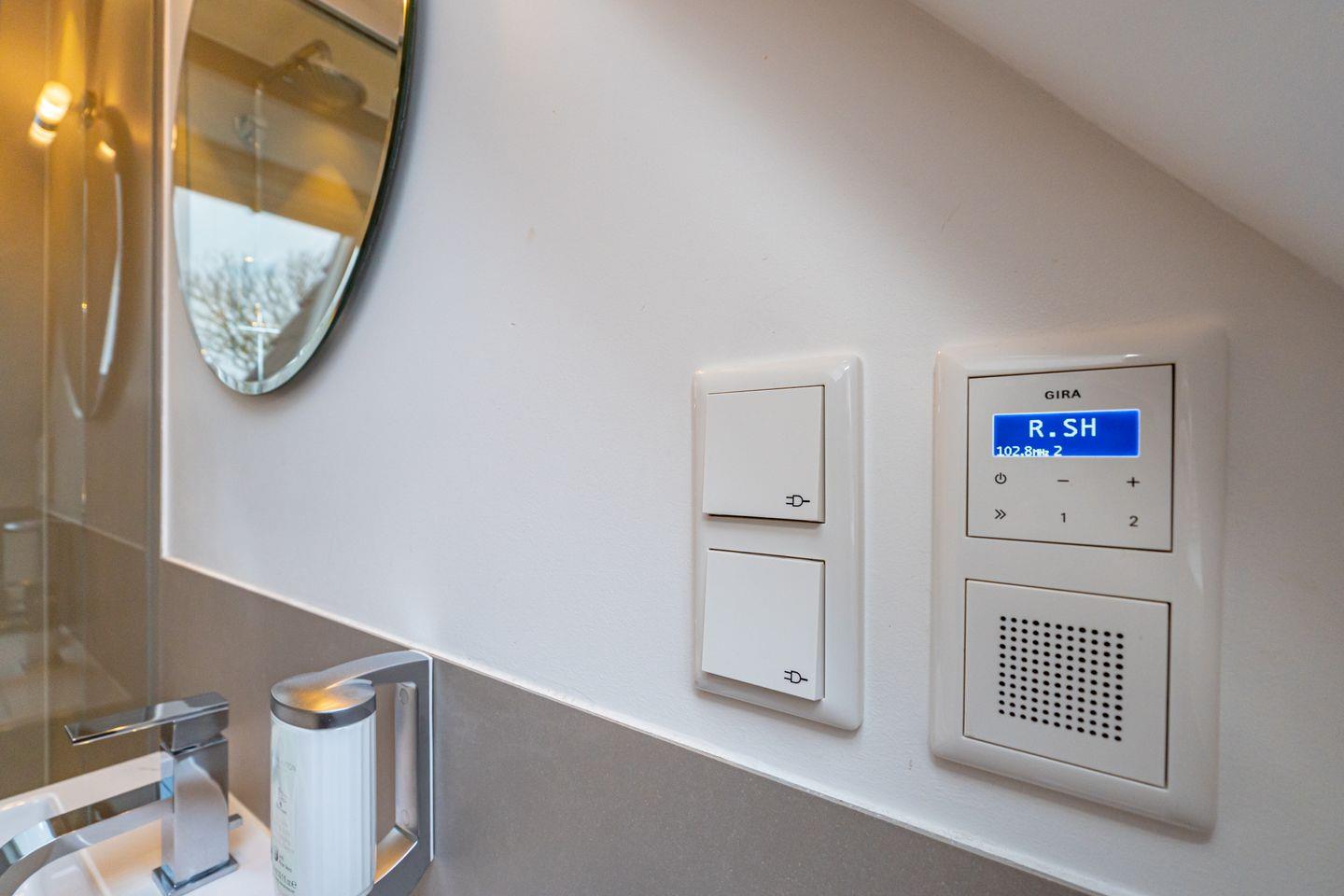 Für Beauty und Wellness sorgt das stylishe Designbad mit seinen wertigen Armaturen, Wohlfühldusche und Unterputzradio.
