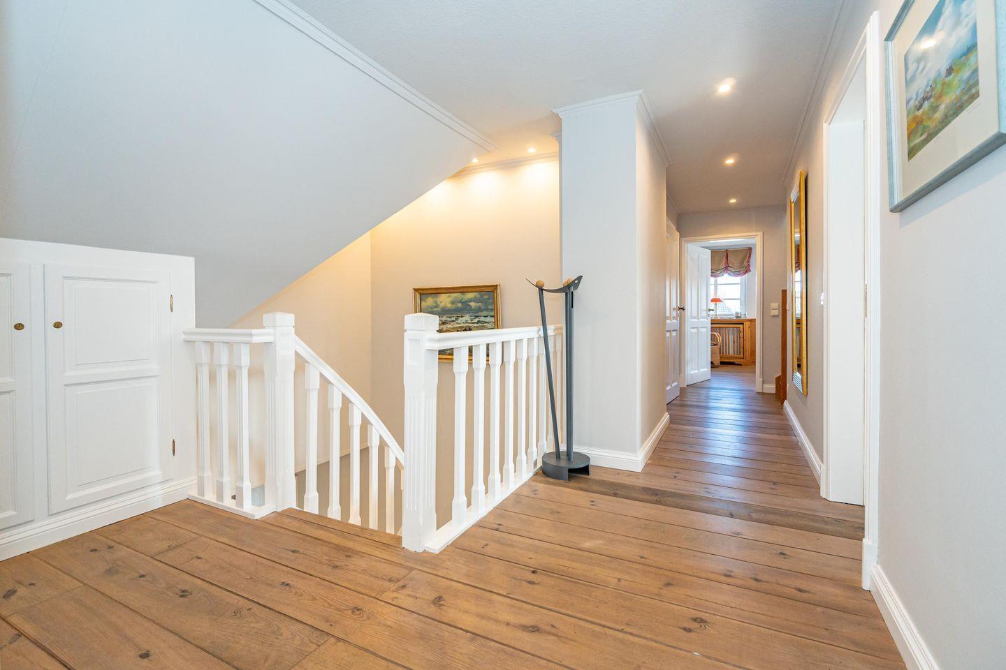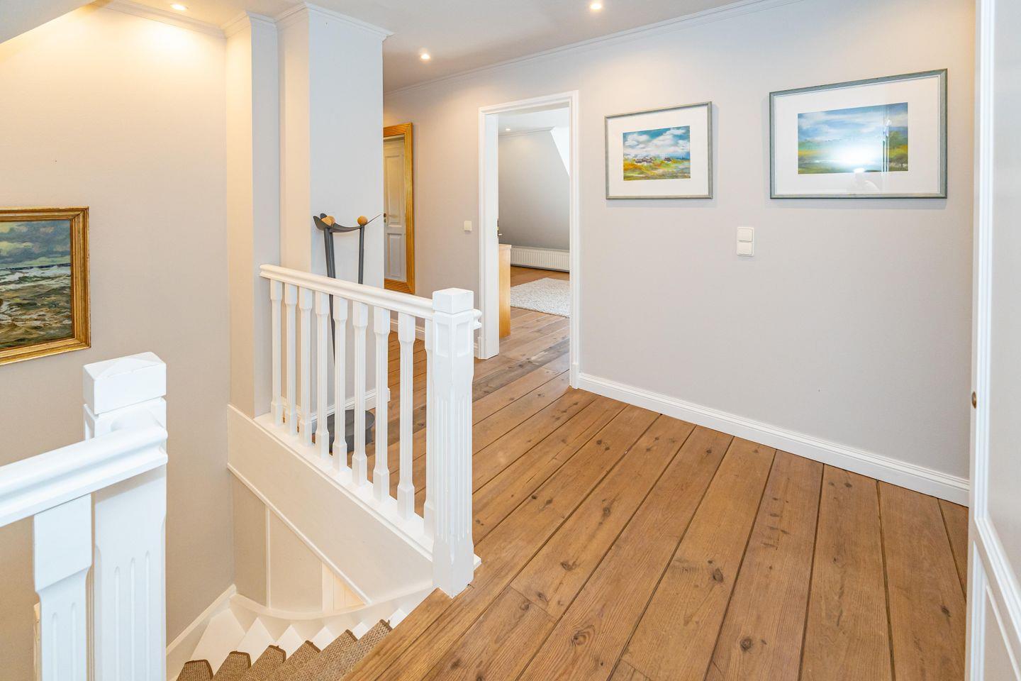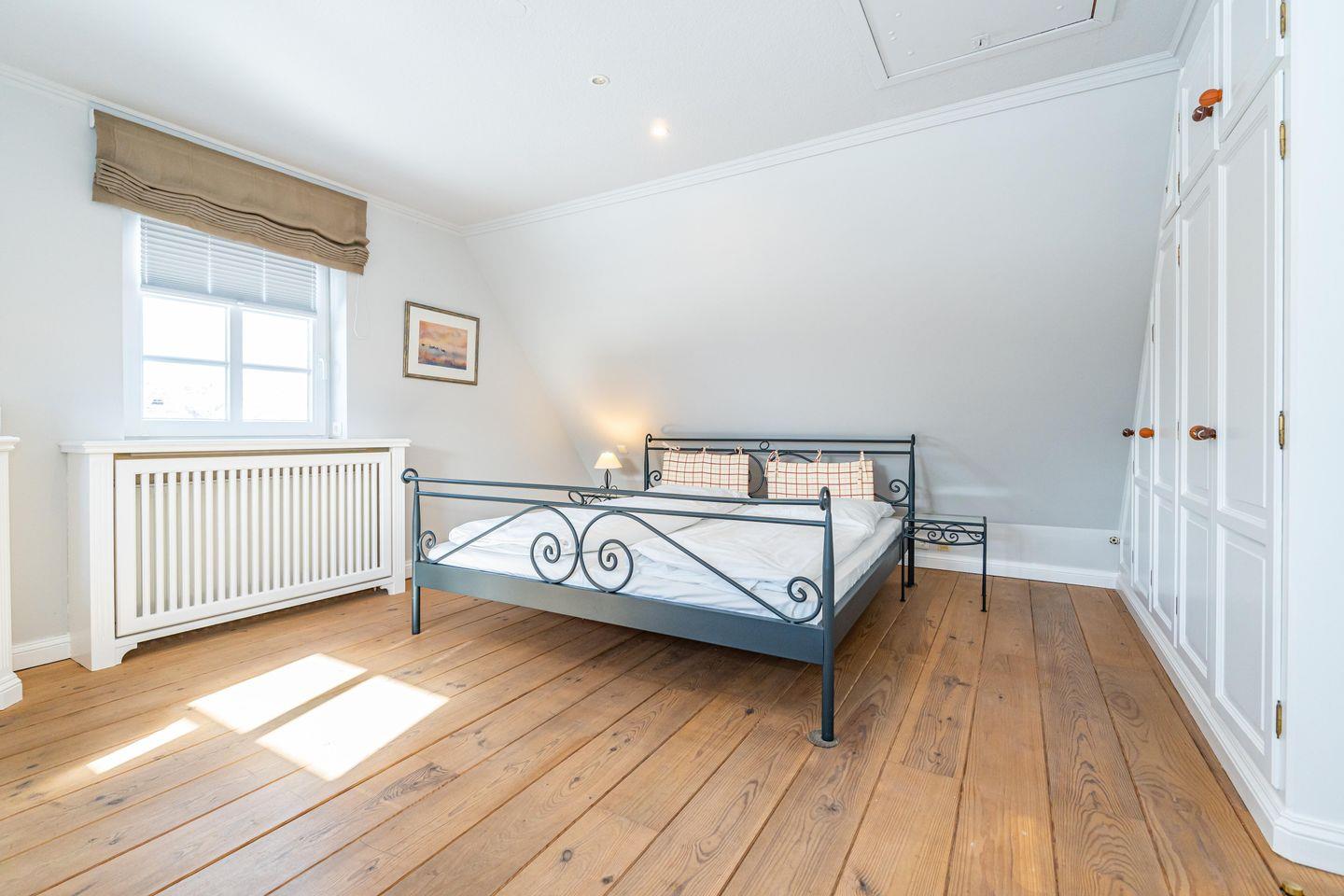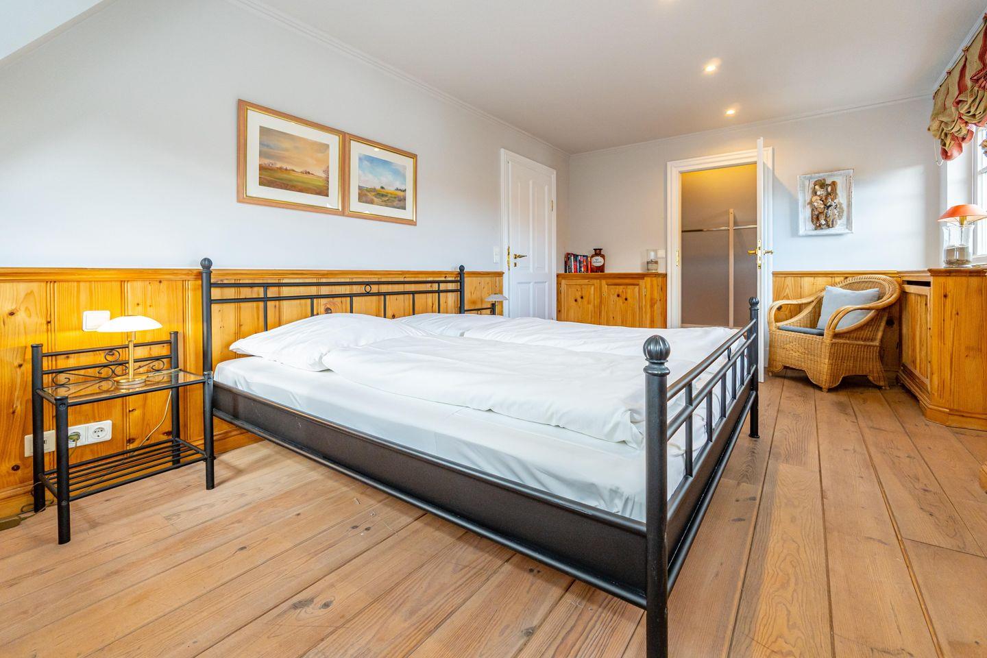 In einer traumhaft ruhigen Seitenstraße im Süden Westerlands befindet sich das schöne Landhaus Nici nur wenige Gehminuten vom Strand entfernt. Auch der Ortskern ist fußläufig gut und schnell erreichbar. Im Erdgeschoss des Hauses erwartet Sie ein heller, großzügiger Wohn- und Essbereich, der zum gemeinsamen Verweilen einlädt. Von hier aus gelangen Sie auf die wunderschöne Südterrasse samt Gartenmöbeln und Strandkorb. Der angrenzende Garten darf anteilig bis zu der imaginären Grenze zwischen den Hortensien genutzt werden (anteilig, damit die Gäste aus dem Bungalow nicht gestört werden). In der offenen, voll ausgestatteten Küche finden Sie einen Side by Side Kühlschrank mit Eiswürfelspender, einen Herd mit Cerankochfeld sowie einen Backofen als auch eine Filterkaffeemaschine, einen Toaster sowie einen Wasserkocher vor. Die Küche bietet alles, was für einen gemeinsamen Kochabend mit Freunden oder der Familie benötigt wird. Im 1. Obergeschoss erwarten Sie drei großzügige Doppelschlafzimmer mit schönem Holzdielenboden, die jeweils mit Flachbildfernsehern ausgestattet sind. Das große Tageslichtbad verfügt über eine tolle Eckbadewanne, eine separate Dusche mit Infrarotkabine, einem WC sowie einem Bidet. Im 2. Obergeschoss finden Sie ein weiteres kleines Duschbad mit WC vor. Auf dem wunderschönen Grundstück befindet sich neben dem Landhaus zudem noch das App. Nici sowie der Bungalow Nici, welche wunderbar gemeinsam für größere Familienzusammenkünfte gemietet werden können. Das Landhaus Nici verfügt über einen PKW-Stellplatz vor der Garage. Weitere öffentliche Parkmöglichkeiten befinden sich zudem direkt vor dem Haus. Kostenloses WLAN ist vorhanden, zwei Hunde sind erlaubt.
