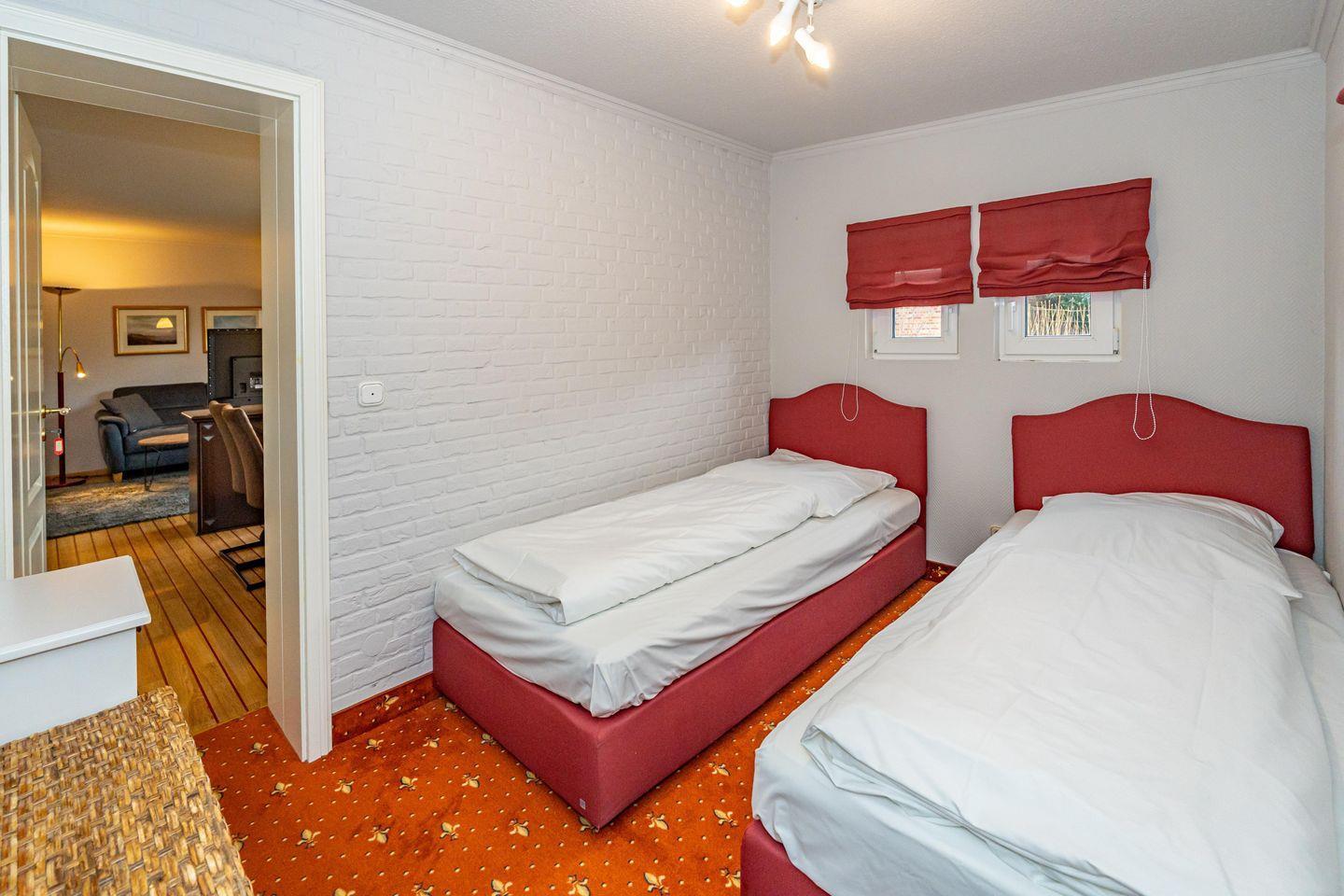 In einer traumhaft ruhigen Seitenstraße im Süden Westerlands befindet sich der schöne Bungalow Nici nur wenige Gehminuten vom Strand entfernt. Der gemütliche Wohn- und Essbereich lädt zum gemeinsamen Verweilen ein. In der kleinen, separaten und voll ausgestatteten Küche finden Sie eine Spülmaschine, einen Kühlschrank mit Gefrierfach sowie eine Mikrowelle als auch eine Filterkaffeemaschine, ein Toaster und einen Wasserkocher vor. Der Bungalow verfügt über ein Schlafzimmer mit einem Doppelbett und einem großzügigen Kleiderschrank sowie einem Schlafzimmer mit zwei Einzelbetten sowie einer Kommode. Das Duschbad ist mit einem WC sowie einem Haartrockner ausgestattet. Auf dem wunderschönen Grundstück befindet sich neben dem Bungalow zudem noch das App. Nici sowie das Landhaus Nici, welche wunderbar gemeinsam für größere Familienzusammenkünfte gemietet werden können. Der Bungalow Nici verfügt über keinen zugehöriger PKW-Stellplatz, öffentliche Parkmöglichkeiten befinden sich allerdings direkt vor dem Haus. Kostenloses WLAN ist vorhanden, zwei Hunde sind erlaubt.