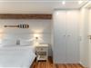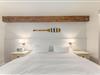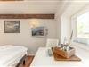 Ganz in Weiß und als Kontrast dazu ein Holzboden und Deckenbalken präsentiert sich der Admirals Room als cosy Doppelzimmer.
