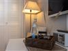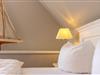 Ganz in Weiß und als Kontrast dazu der braune Holzboden, präsentiert sich Southampton als geräumiges Doppelzimmer.