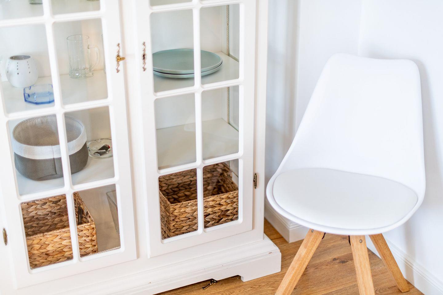 Ein Flur mit Garderobe und Sessel sorgt für zusätzlichen Komfort. Die Wohnung verfügt über einen Pkw-Stellplatz, und im Haus stehen eine Waschmaschine und ein Trockner zur Verfügung. WLAN (ohne Gewähr) ist ebenfalls vorhanden.