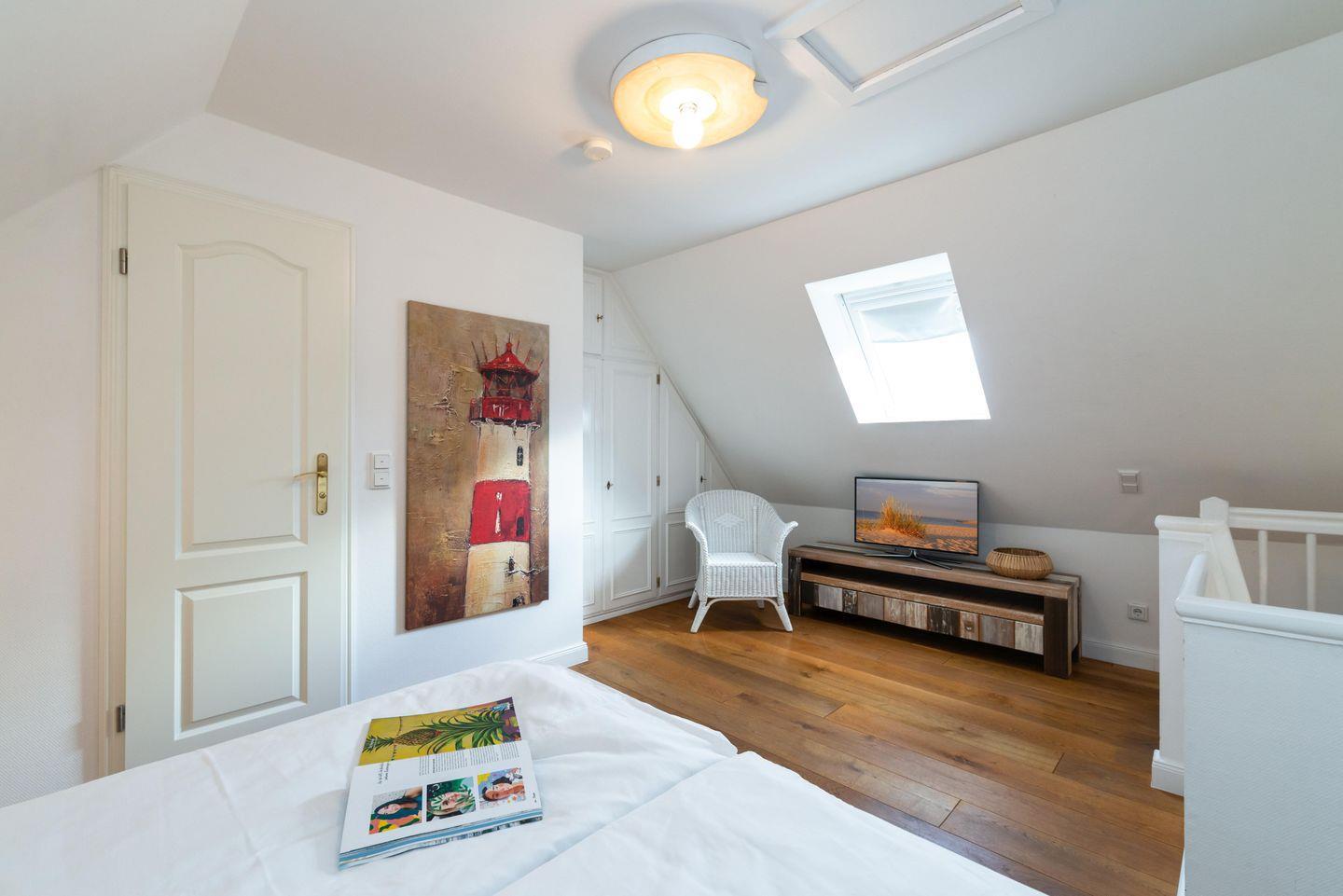 Dieses familienfreundliche ca. 120 m² große 4-Sterne Reihenhaus für bis zu 6 Personen befindet sich in ruhiger, zentralen Lage in Westerland. "Meeresstern" bietet Ihnen einen modernen Wohn- und Essbereich. Die separate Küche samt Geschirrspüler ist voll ausgestattet. Im Erdgeschoss befindet sich zudem ein Gäste-WC. Im 1.OG erwarten Sie zwei Doppelschlafzimmer sowie ein großzügiges Duschbad. Im Dachgeschoss befindet sich ein weiteres Doppelschlafzimmer mit Duschbad. Alle Schlafräume sowie das Wohnzimmer sind mit Flat TVs ausgestattet. Nutzen Sie gerne die schöne Südterrasse mit angrenzendem Garten samt Gartenmöbel und Strandkorb (in der Saison) oder lassen Sie die Abende gemütlich mit der Familie am Kamin ausklingen. Kostenloses WLAN, ein zugehöriger Garagenstellplatz sowie eine Waschmaschine sind vorhanden. Haustiere sind erlaubt.