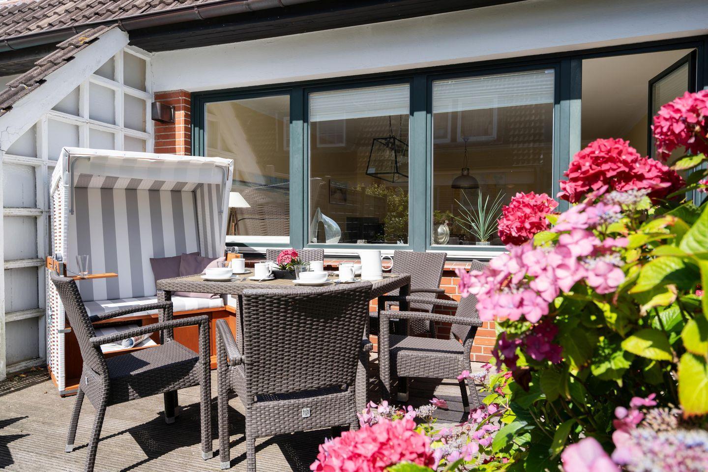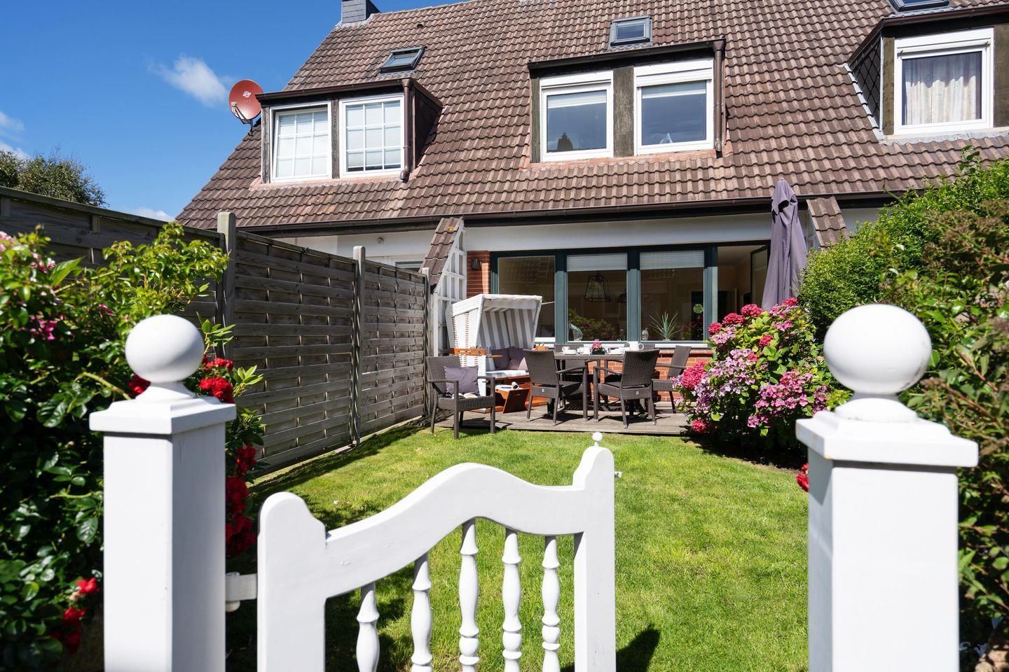 Familienfreundliches ca. 120 m² großes 4-Sterne Ferienhaus in ruhiger, zentraler Lage für bis zu 6 Personen mit schönem Garten und zugehörigem PKW-Stellplatz. Inklusive WLAN und Strandkorb (in der Saison).