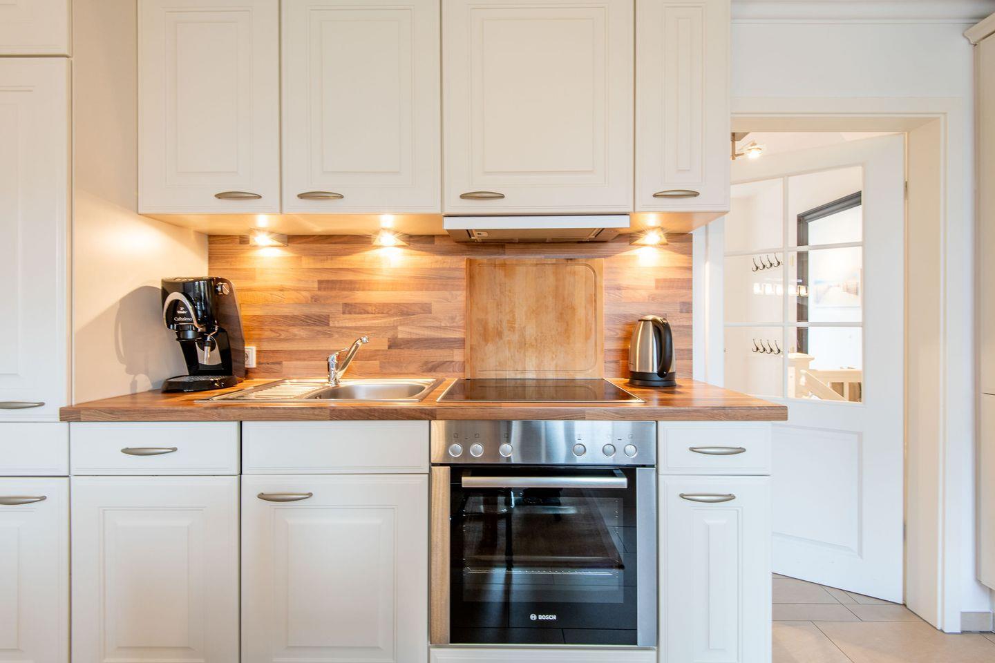 Die moderne Küche fügt sich harmonisch in den Wohnbereich ein und ist mit einem Cerankochfeld, Geschirrspüler und weiterem Komfort ausgestattet, sodass Ihnen alle Annehmlichkeiten für die Zubereitung Ihrer Speisen zur Verfügung stehen.