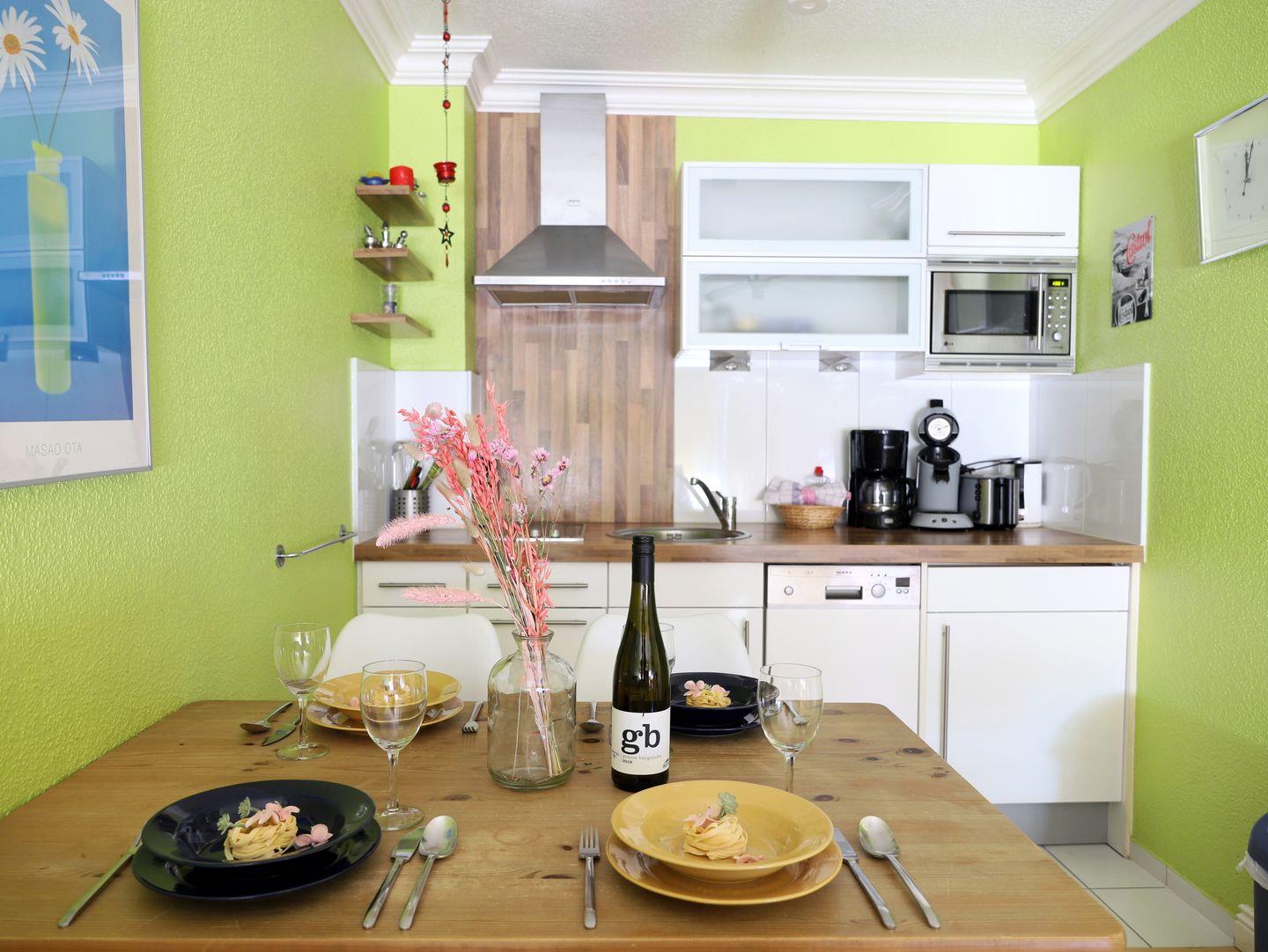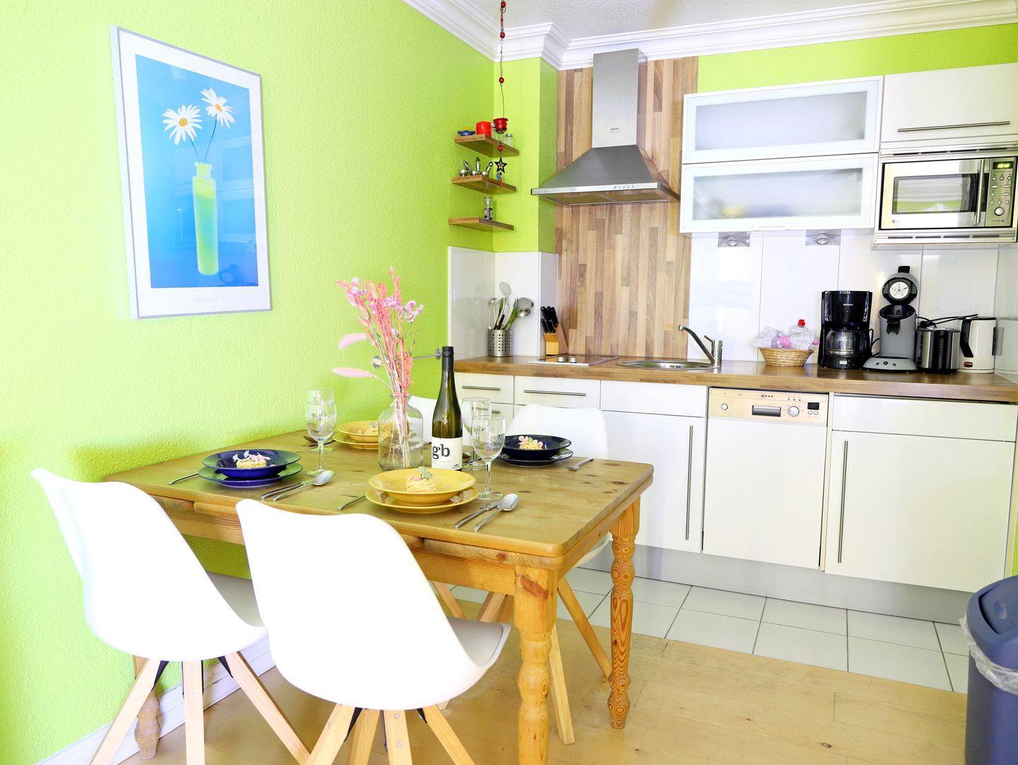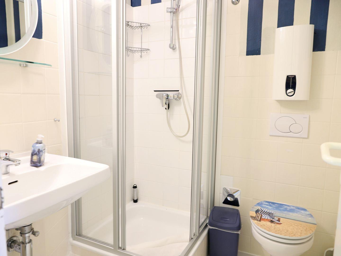 Erleben Sie einen entspannten Urlaub in diesem modernen 54 m² großen 2-Zimmer-Appartement im Herzen von Westerland. Es befindet sich in der 3. Etage eines zentral gelegenen Appartementhauses mit Schwimmbad und Sauna. Der Wohn-/Essbereich verfügt über eine Schlafcouch (150 x 190 cm) und eine offene, voll ausgestattete Küche mit Cerankochfeld, Spülmaschine und Mikrowelle. Im Schlafzimmer sorgt ein Doppelbett (180 x 200 cm) für erholsamen Schlaf. Das Badezimmer bietet Dusche und WC. Vom nach Westen ausgerichteten Balkon genießen Sie sonnige Stunden. Ein Tiefgaragenstellplatz (Park-Combilift) steht zur Verfügung – bitte beachten Sie die Maße für Ihr Fahrzeug (Länge: 5,0 m, Breite: 1,85 m, Höhe: 1,7 m). Zusätzlich gibt es einen Fahrradkeller ohne garantierten Stellplatz. Waschmaschine, Trockner und Sauna sind gegen Münzeinwurf nutzbar. Haustiere sind herzlich willkommen.