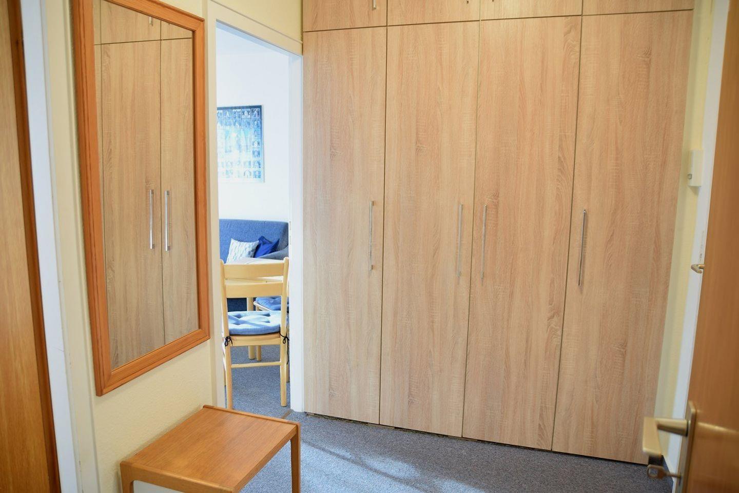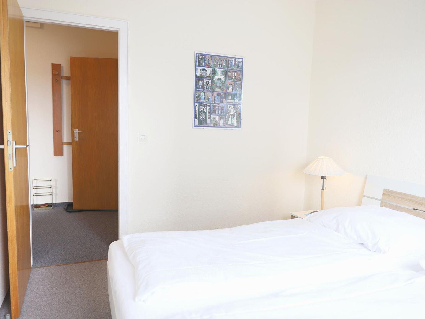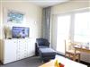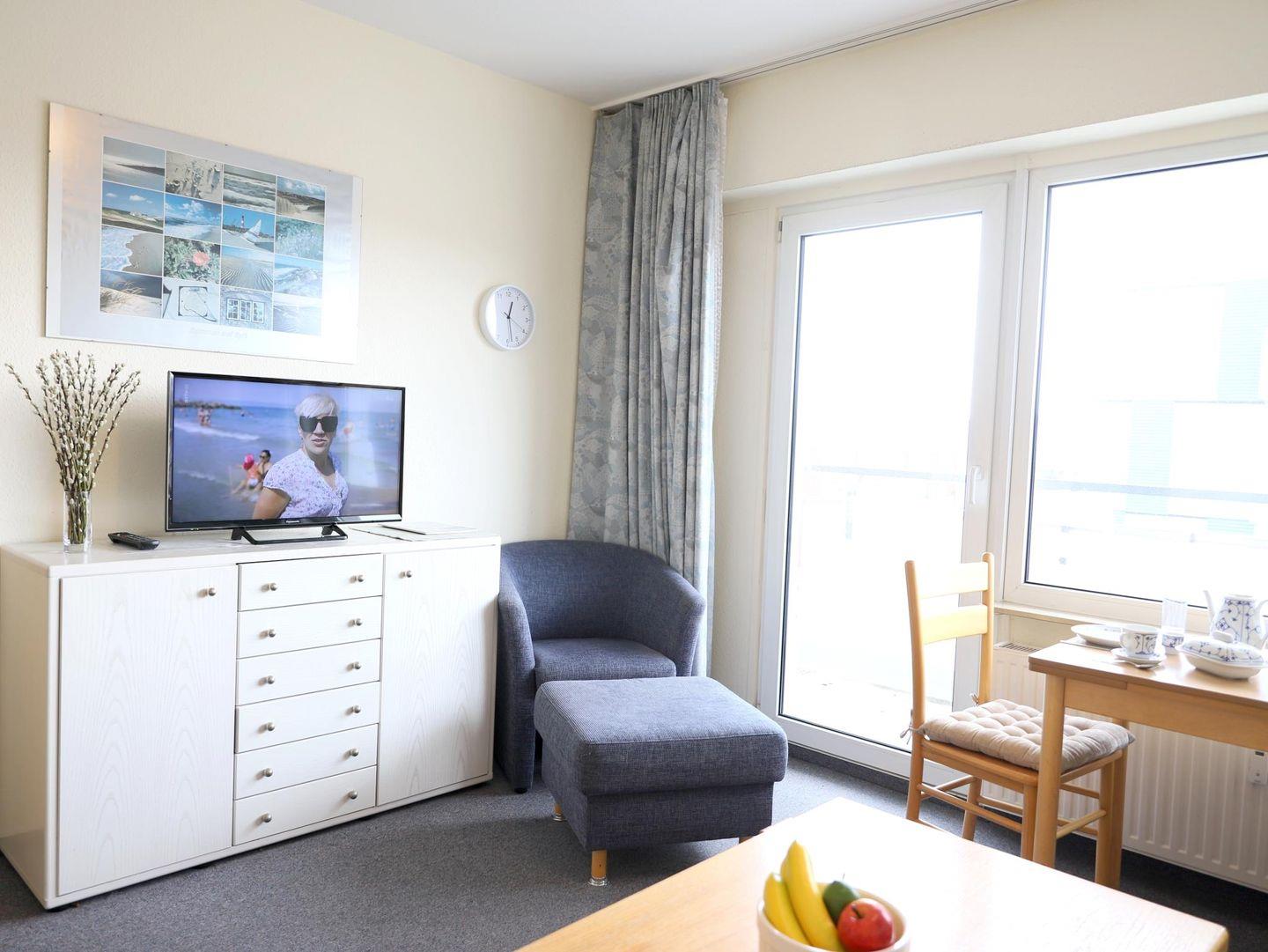 Das 2-Zimmer-Appartement in Westerland (ca. 40 m²) für bis zu 4 Personen bietet ein Schlafzimmer mit Doppelbett, ein Wohnzimmer mit Schlafsofa, eine separate Küche und ein Wannenbad. Haustiere willkommen. Schwimmbad, Sauna und mehr im Haus verfügbar.