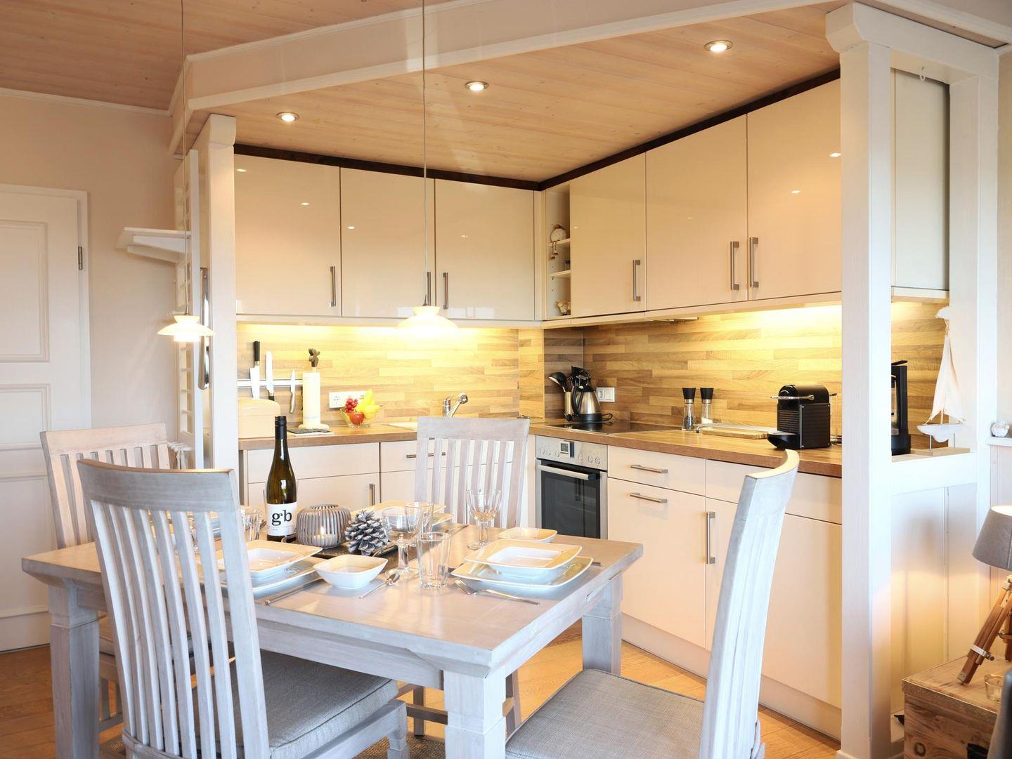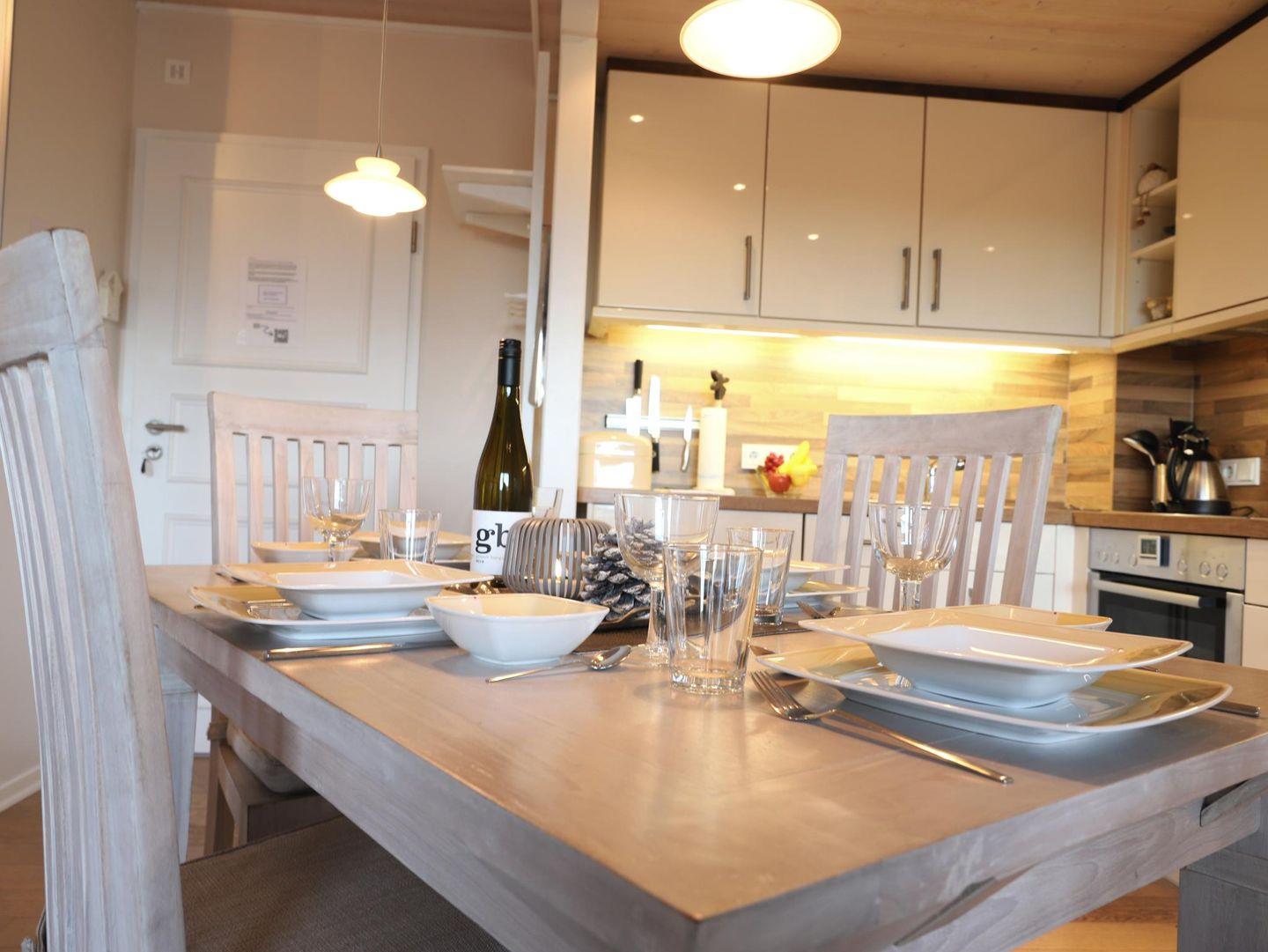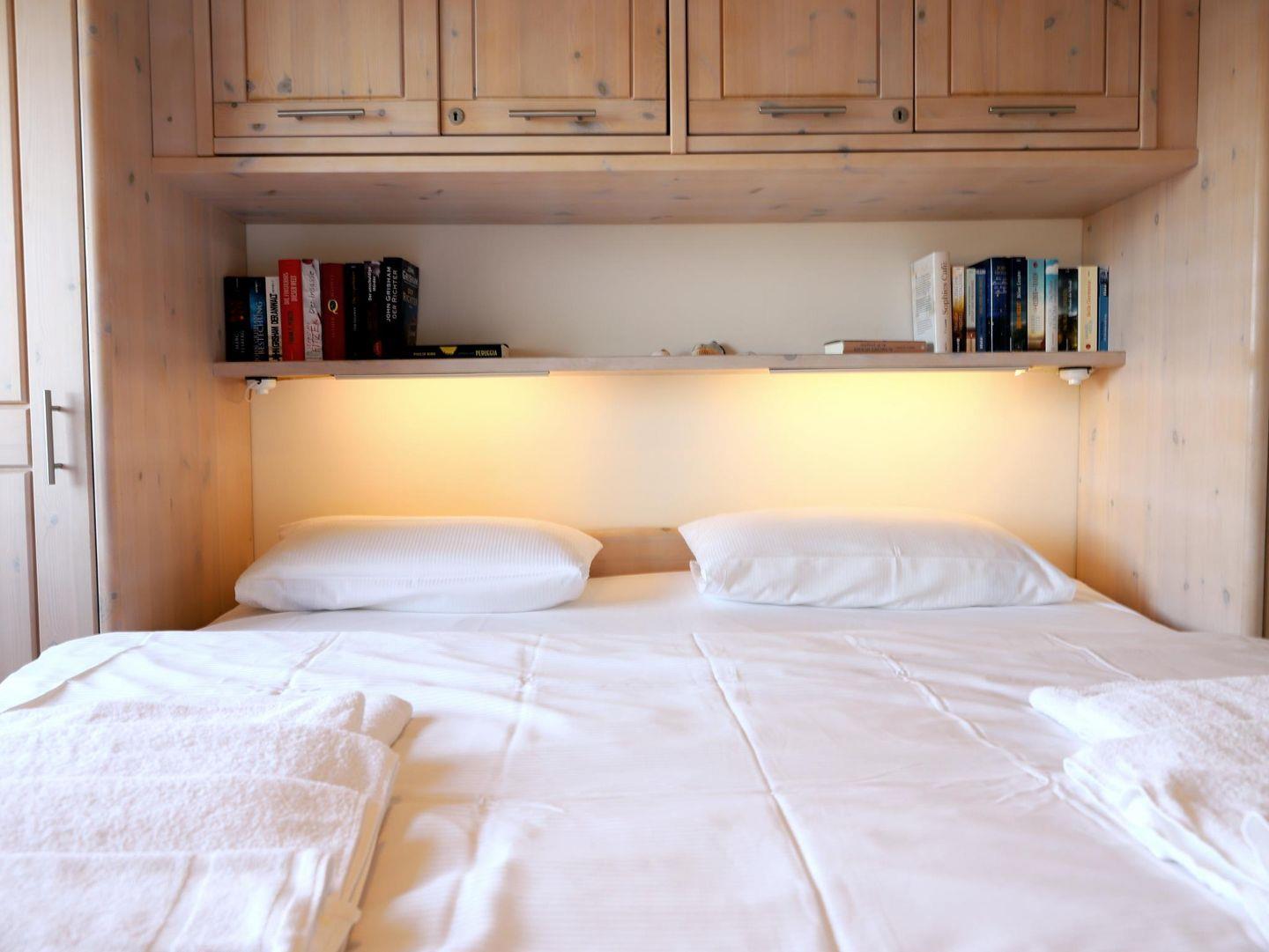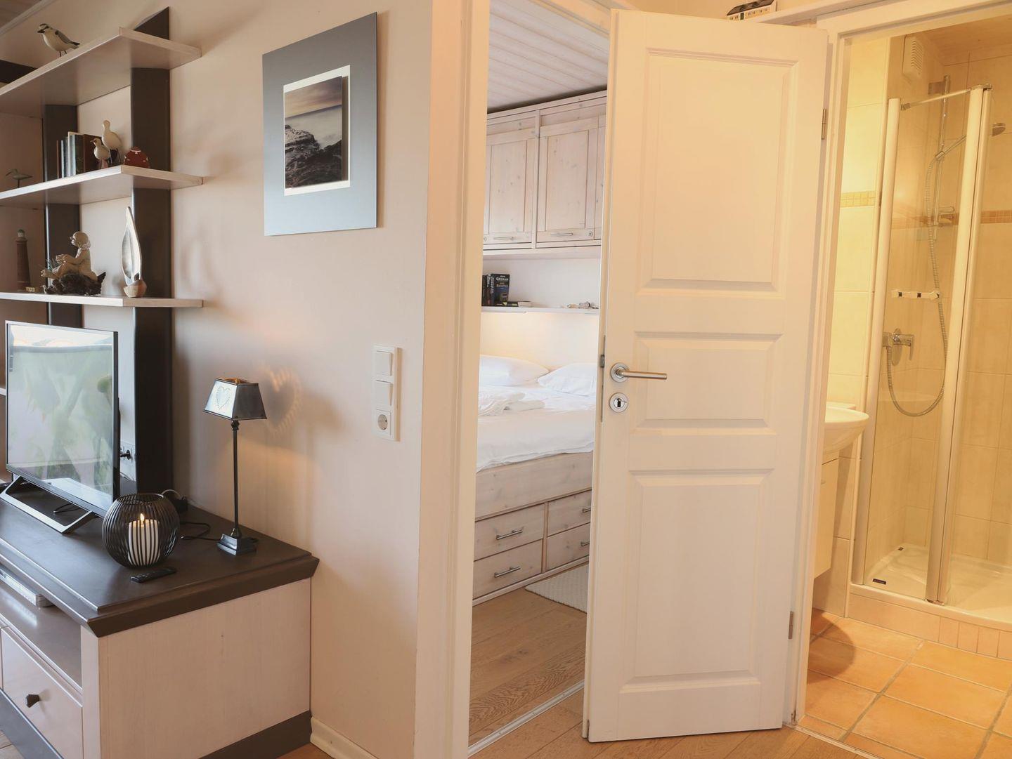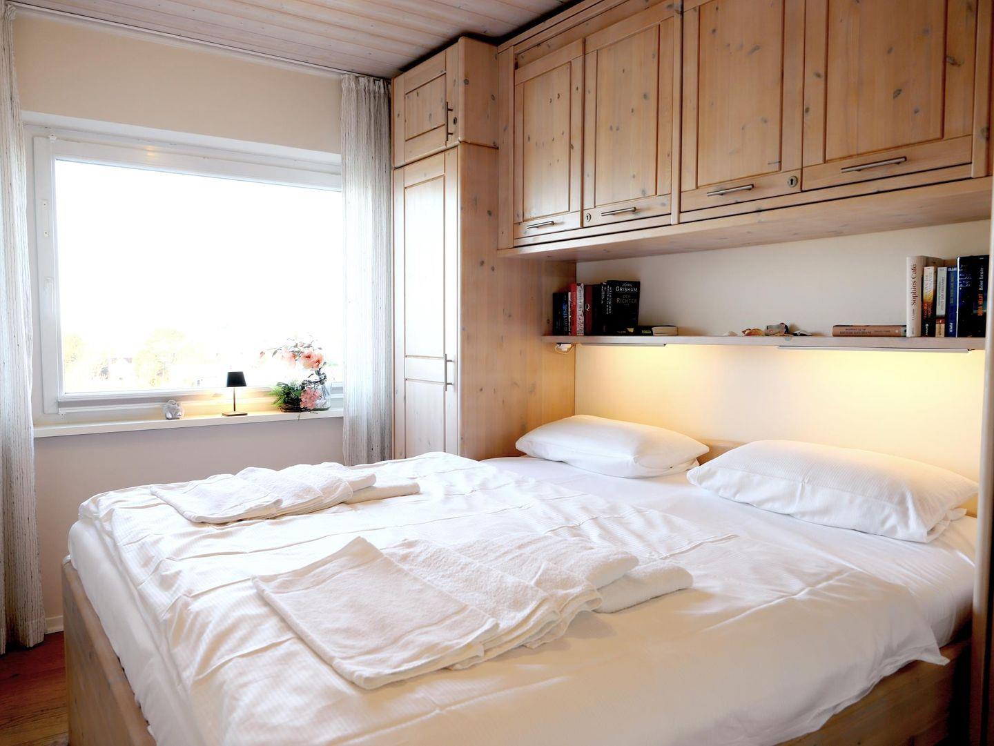 Dieses wunderschöne 2-Zimmer-Appartement (ca. 40 m²) befindet sich in der 4. Etage eines Appartementhauses mit Hallenschwimmbad, Sauna und Solarium. Das Appartement bietet Platz für bis zu 2 Personen und verfügt über ein Wohnzimmer, ein separates Schlafzimmer sowie eine offene Küche mit Geschirrspüler. Der Essplatz im Wohnzimmer lädt zum Verweilen ein. Das moderne Badezimmer ist mit einer Duschkabine und WC ausgestattet. Vom Balkon aus können Sie bei gutem Wetter das Wasser sehen. Die Wohnung ist eine Nichtraucherwohnung und bietet W-Lan (offenes Netzwerk) sowie ein Telefon. Der Nord-Balkon ist mit einem Gartentisch und Stühlen ausgestattet, und der kostenfreie Stellplatz sorgt für eine bequeme Parkmöglichkeit. Ein Abstellraum für Fahrräder ist ebenfalls vorhanden, jedoch ohne garantierten Stellplatz. Der Fahrstuhl im Haus sorgt für einen bequemen Zugang zur Wohnung. Trockner und Waschmaschine stehen gegen Gebühr zur Verfügung. Haustiere sind nicht gestattet.Die Nutzung des Wellnessbereichs (Schwimmbad, Sauna, etc.) im Haus Nordland ist durch die Hausordnung geregelt und bleibt jederzeit vorbehalten.