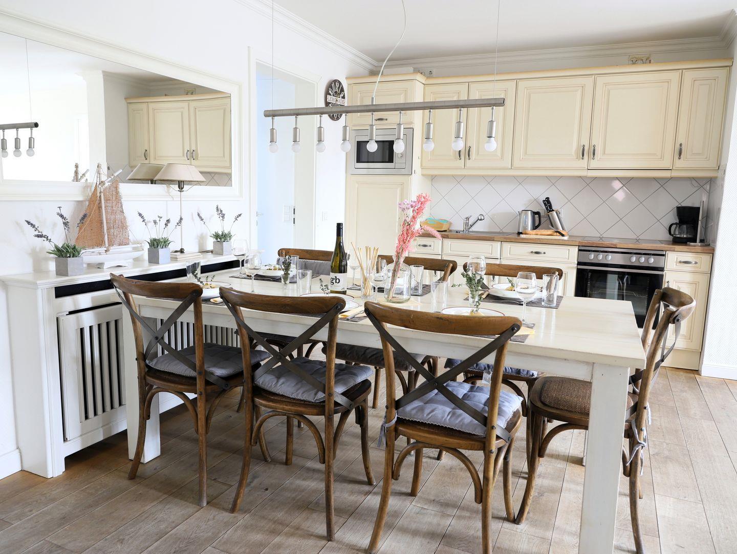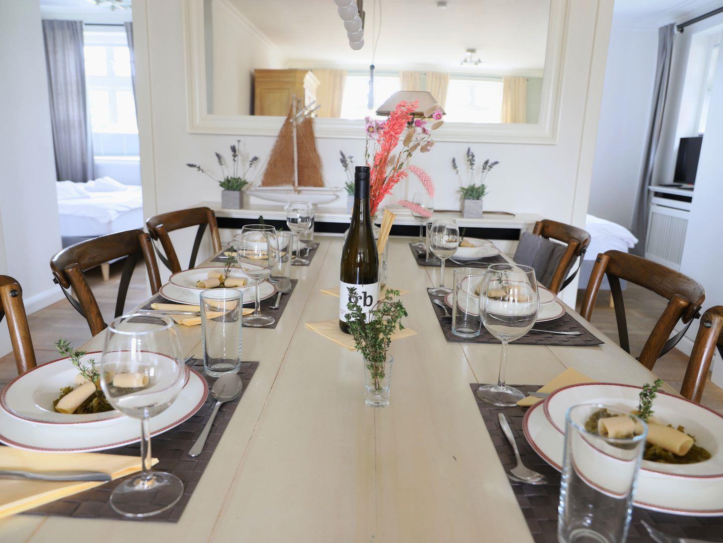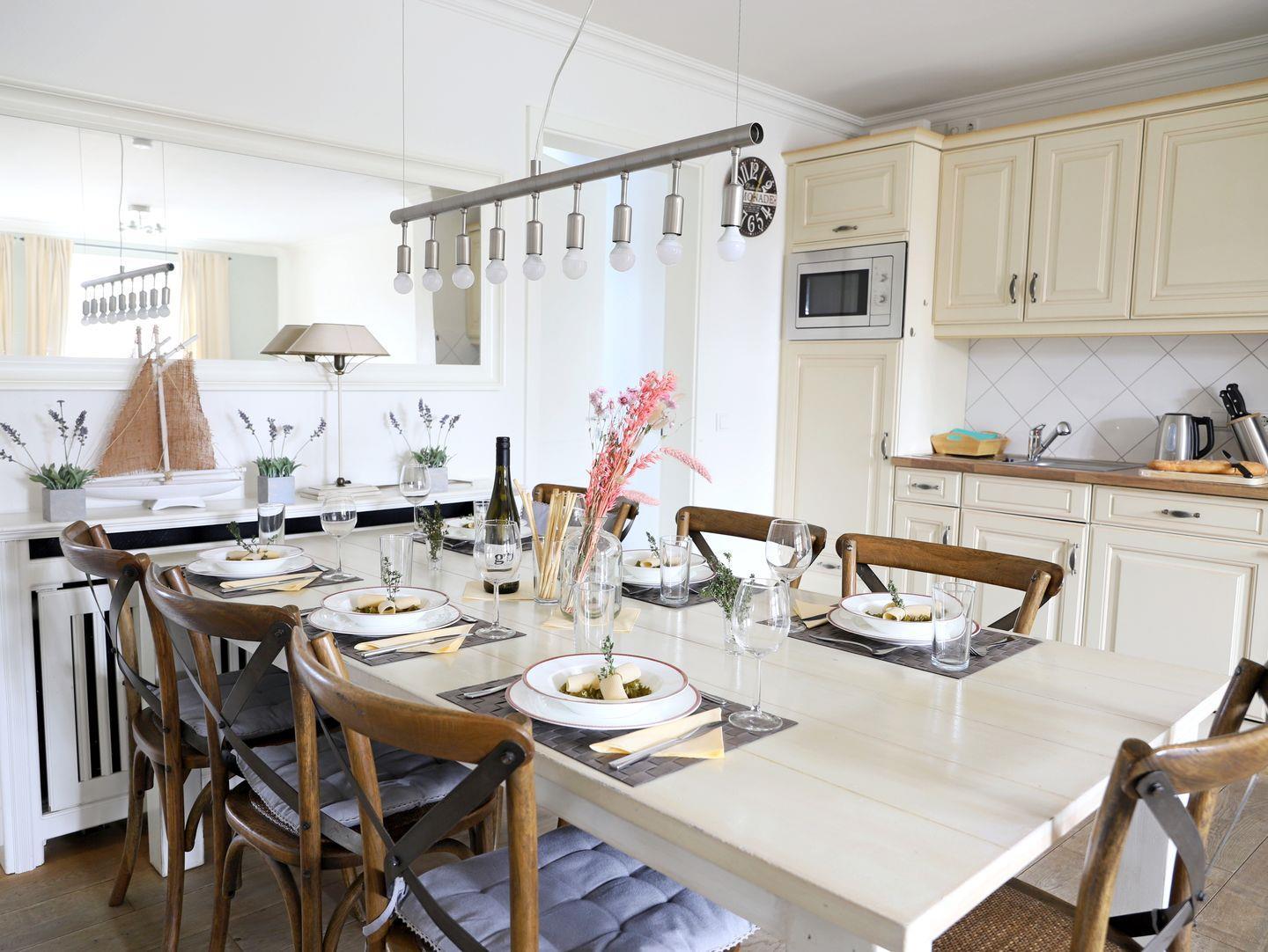 Dieses stilvolle, luxuriös ausgestattete Ferienhaus in Westerland auf Sylt bietet mit ca. 85 m² und einem eigenen Garten alles für einen komfortablen Aufenthalt für bis zu 6 Personen. Im großzügigen Wohnzimmer erwartet Sie eine gemütliche Couchgarnitur, ein Flatscreen-TV und eine Stereoanlage. Die offene, moderne Küche mit Ceranfeld, Backofen und Geschirrspüler ist perfekt für gemeinsame Mahlzeiten im angrenzenden Essbereich. Das Appartement umfasst drei komfortable Schlafzimmer: eines mit einem Doppelbett (180 x 200 cm) und zwei weitere mit Doppelbetten (je 160 x 200 cm), alle mit eigenem Flatscreen-TV. Zwei Badezimmer stehen zur Verfügung: eines mit Dusche und WC und das andere mit Badewanne, Dusche und WC. Ein separater Eingang und der eigene Garten mit Strandkorb sorgen für zusätzliche Privatsphäre. Ein kostenfreier Stellplatz ist vorhanden, und Haustiere sind erlaubt. Genießen Sie Ihren Urlaub in dieser Nichtraucherwohnung.
