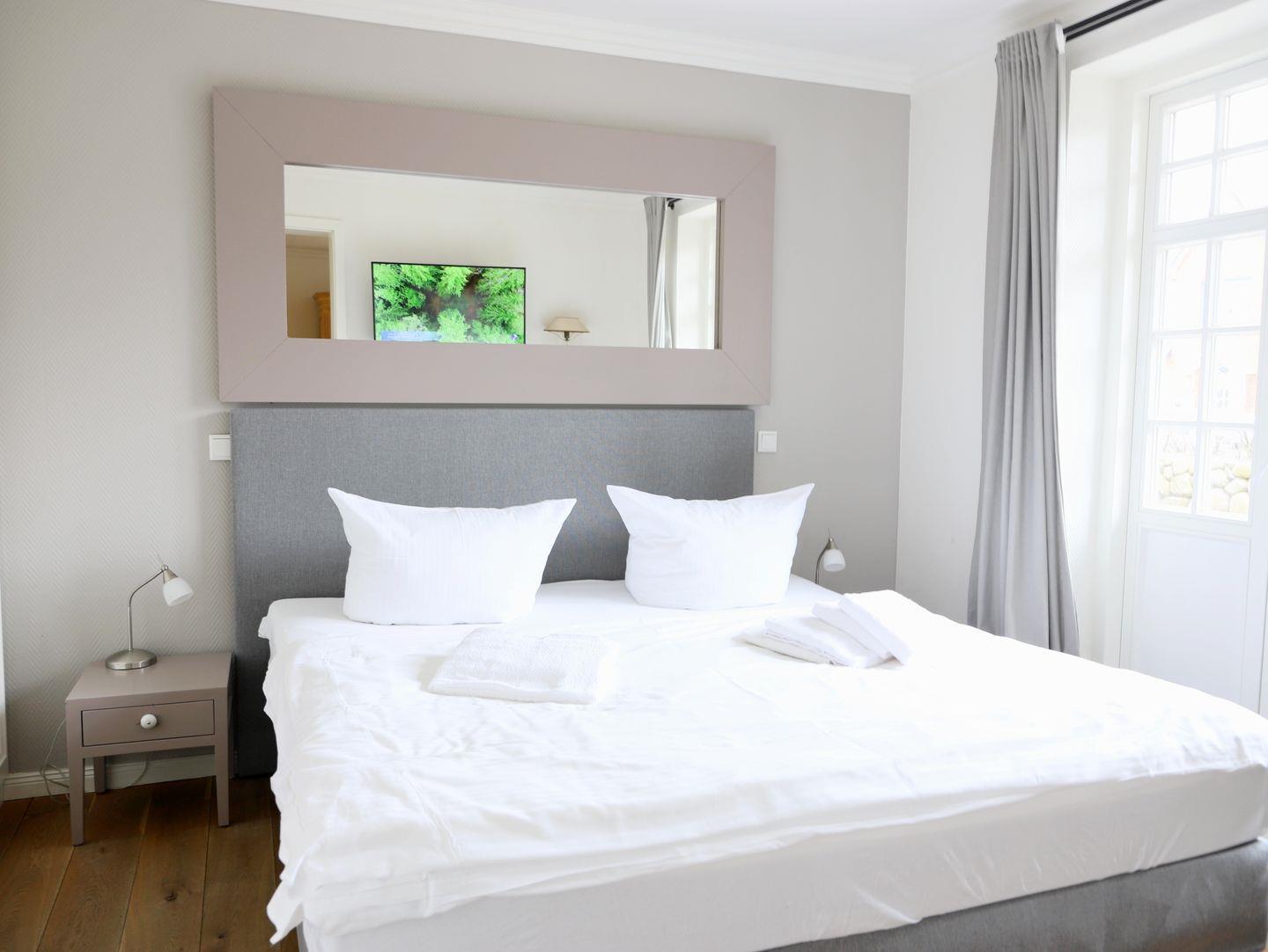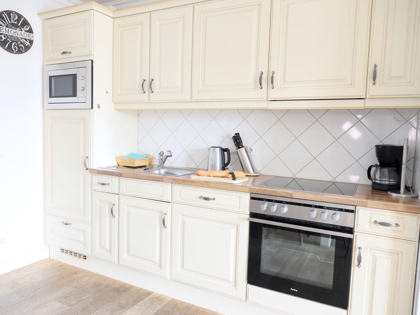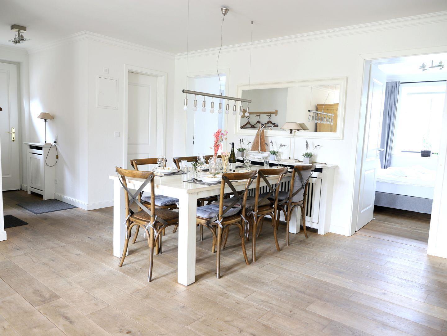 Dieses stilvolle, luxuriös ausgestattete Ferienhaus in Westerland auf Sylt bietet mit ca. 85 m² und einem eigenen Garten alles für einen komfortablen Aufenthalt für bis zu 6 Personen. Im großzügigen Wohnzimmer erwartet Sie eine gemütliche Couchgarnitur, ein Flatscreen-TV und eine Stereoanlage. Die offene, moderne Küche mit Ceranfeld, Backofen und Geschirrspüler ist perfekt für gemeinsame Mahlzeiten im angrenzenden Essbereich. Das Appartement umfasst drei komfortable Schlafzimmer: eines mit einem Doppelbett (180 x 200 cm) und zwei weitere mit Doppelbetten (je 160 x 200 cm), alle mit eigenem Flatscreen-TV. Zwei Badezimmer stehen zur Verfügung: eines mit Dusche und WC und das andere mit Badewanne, Dusche und WC. Ein separater Eingang und der eigene Garten mit Strandkorb sorgen für zusätzliche Privatsphäre. Ein kostenfreier Stellplatz ist vorhanden, und Haustiere sind erlaubt. Genießen Sie Ihren Urlaub in dieser Nichtraucherwohnung.