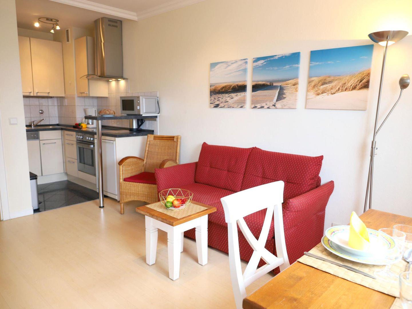 Dieses 2-Zimmer-Appartement (ca. 40 m²) in Westerland bietet Platz für bis zu 3 Personen. Es verfügt über ein Schlafzimmer mit Doppelbett, ein Wohnzimmer mit Schlafsofa, eine neue Küche und ein modernes Badezimmer. Haustiere sind nicht gestattet.