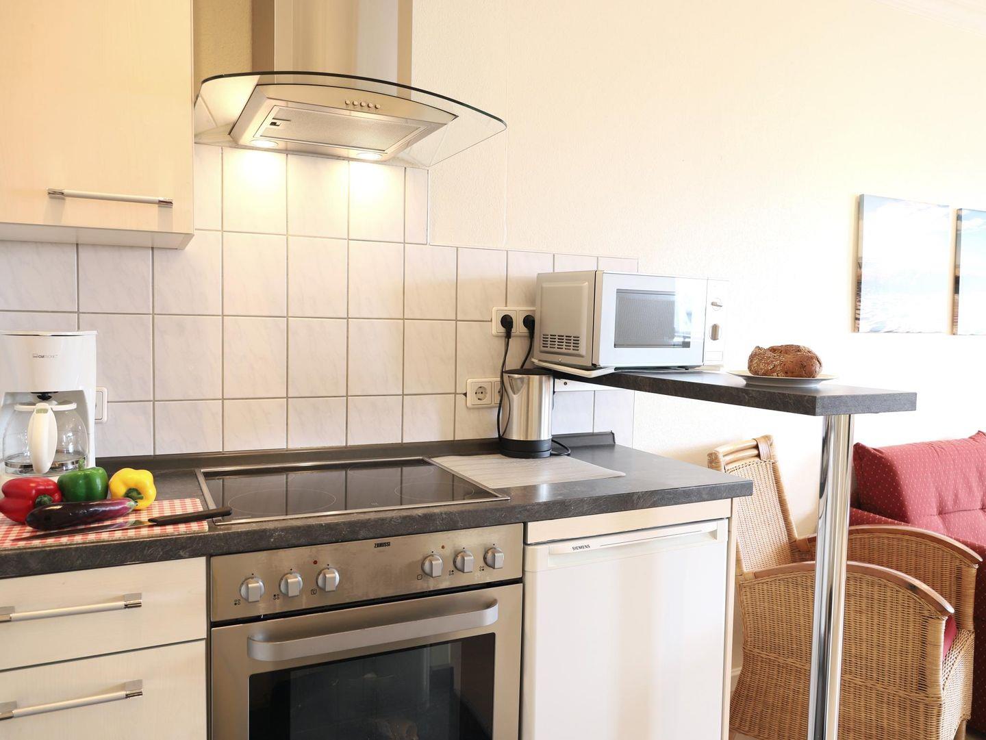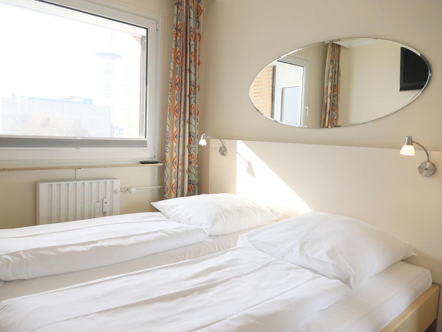 Das gemütliche 2-Zimmer-Appartement (ca. 40 m²) in Westerland ist für bis zu 3 Personen geeignet und liegt in einem Appartementhaus mit Hallenschwimmbad, Sauna und Solarium. Das Wohnzimmer ist mit einer Schlafcouch (140 x 200 cm), einer Essecke und Kabel-TV ausgestattet. Das Schlafzimmer bietet ein neues Doppelbett (180 x 200 cm), eine neue Schrankkombination und einen Flatscreen-TV. Die separate, neue Küche ist mit einer Theke, Cerankochfeld, Geschirrspüler und Backofen ausgestattet. Das moderne Badezimmer verfügt über ein Duschbad und WC. Das Appartement bietet einen West-Balkon mit Gartentisch und Stühlen sowie einen kostenfreien Stellplatz. Ein Abstellraum für Fahrräder ist vorhanden, jedoch ohne garantierten Stellplatz. Der Fahrstuhl erleichtert den Zugang zur Wohnung. Die Nutzung des Wellnessbereichs (Schwimmbad, Sauna, etc.) im Haus Nordland ist durch die Hausordnung geregelt und bleibt jederzeit vorbehalten. Trockner und Waschmaschine stehen gegen Gebühr zur Verfügung. Haustiere sind nicht gestattet.