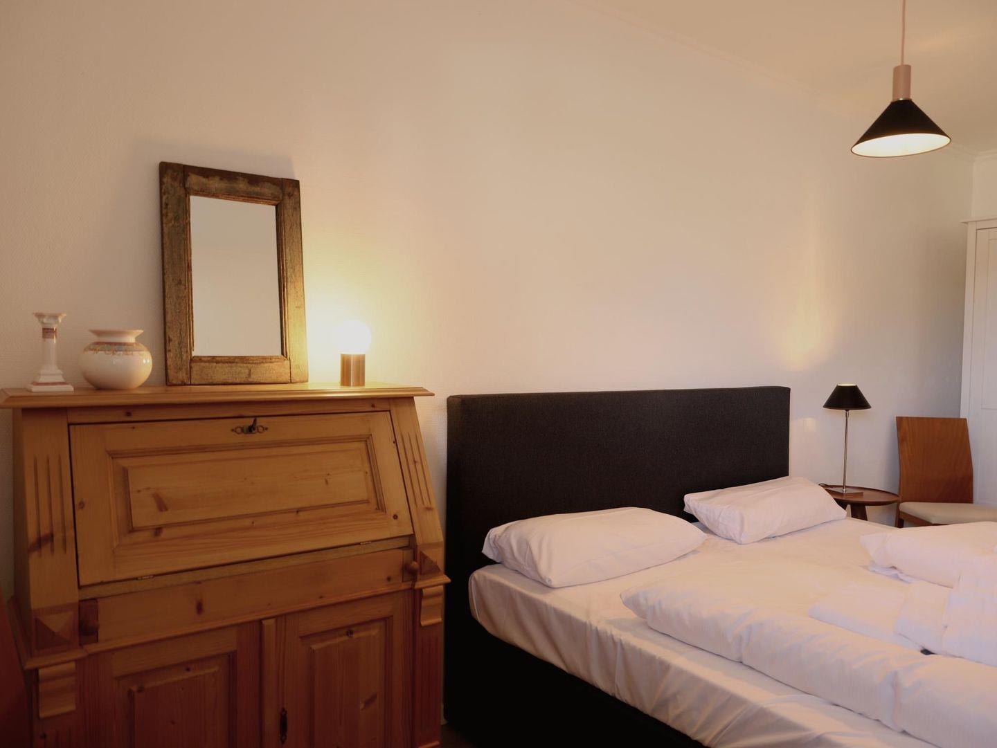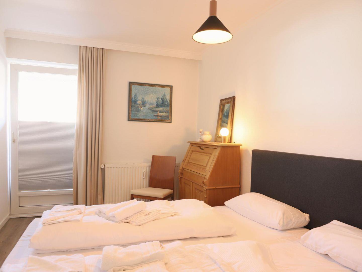 Die modern eingerichtete 2-Zimmer-Wohnung „Hedighuis“ in der Kampstraße 11 bietet auf 53 m² Platz für 2 Personen. Das Schlafzimmer verfügt über ein komfortables Doppelbett (180 x 200 cm). Der helle Wohnbereich lädt zum Entspannen ein, während der Ost-Balkon mit Gartentisch und Stühlen ideal für ein gemütliches Frühstück ist. Der Strand ist in wenigen Gehminuten erreichbar, und auch die Westerländer Innenstadt ist nur einen kurzen Spaziergang entfernt. Radwege führen in alle Richtungen, und ein Fahrradverleih sowie eine Bäckerei befinden sich in der Nähe. Zusätzlich stehen eine Münzwaschmaschine und ein Trockner im Keller zur Verfügung. Ein kostenfreier Parkplatz ist inklusive. Die Wohnung ist eine Nichtraucherwohnung, und Haustiere sind nicht gestattet. Perfekt für einen entspannten Sylt-Urlaub!
