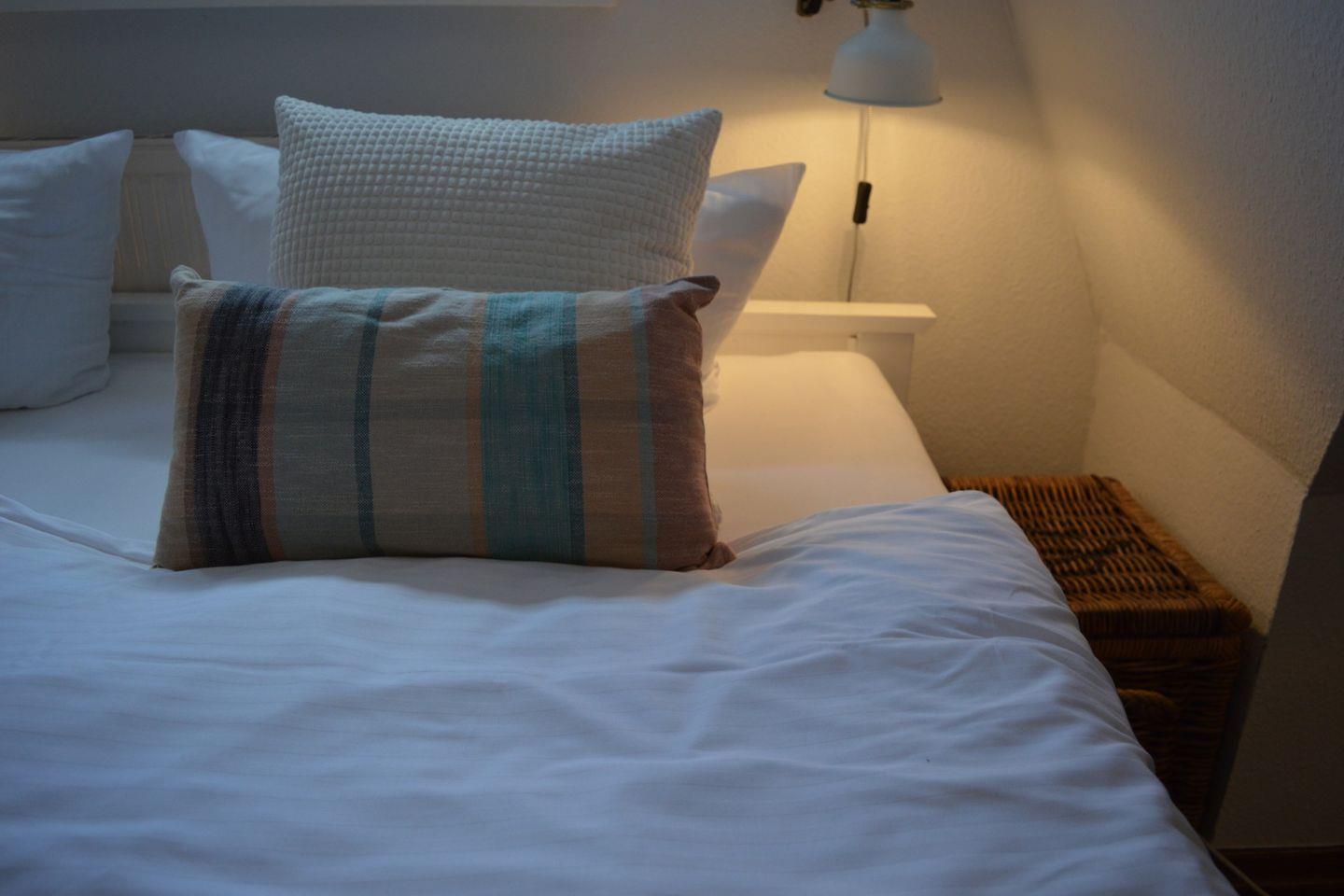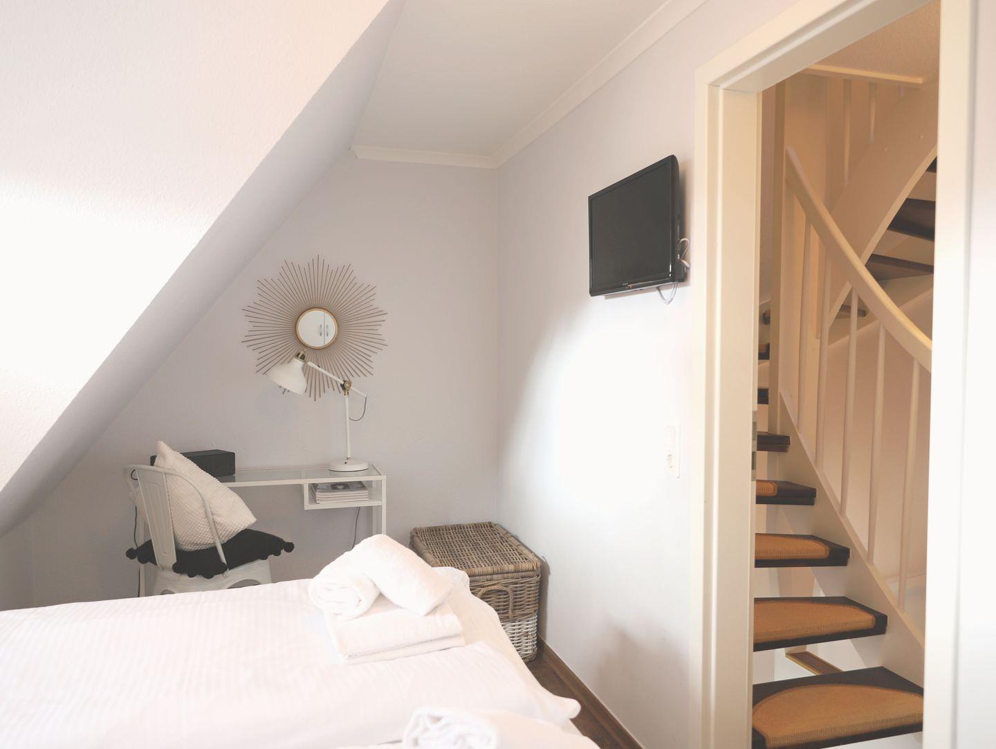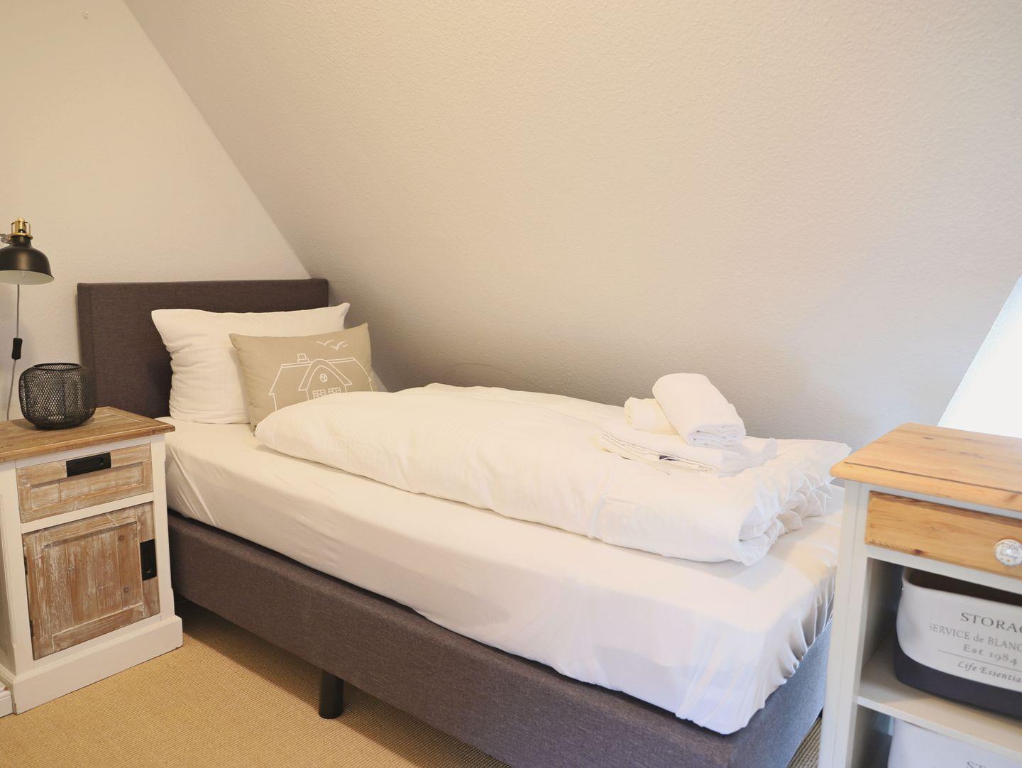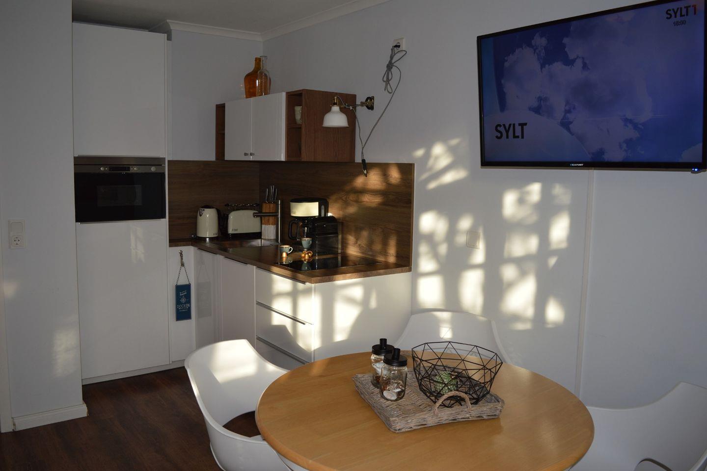 Diese moderne 3-Zimmerwohnung im Erdgeschoss eines reetgedeckten Hauses bietet auf 62 m² Platz für bis zu 3 Personen. Im Wohn-/Esszimmer mit integrierter Küche können Sie sich in einer gemütlichen Wohnecke entspannen. Genießen Sie die Sylter Sonne auf der angrenzenden Süd-Terrasse, ausgestattet mit Strandkorb (April-Oktober) und Gartenmöbeln. Im Obergeschoss erwartet Sie ein gemütliches Schlafzimmer mit einem Doppelbett (180 x 200 cm), während das Dachgeschoss einen weiteren Schlafbereich mit Einzelbett (90 x 200 cm) bereithält. Das moderne Duschbad befindet sich ebenfalls im Obergeschoss. Ein kostenfreier Stellplatz auf dem Grundstück steht zur Verfügung. Der Strand, die Promenade und das Wellenbad sind bequem zu Fuß erreichbar, ebenso die Fußgängerzone mit vielfältigen Einkaufsmöglichkeiten, Restaurants und Kneipen. Waschmaschine und Trockner mit Münzzähler befinden sich im Keller. Haustiere sind herzlich willkommen.