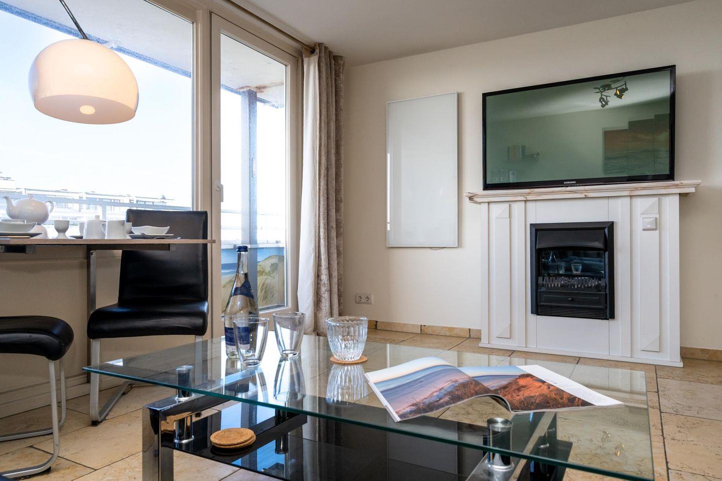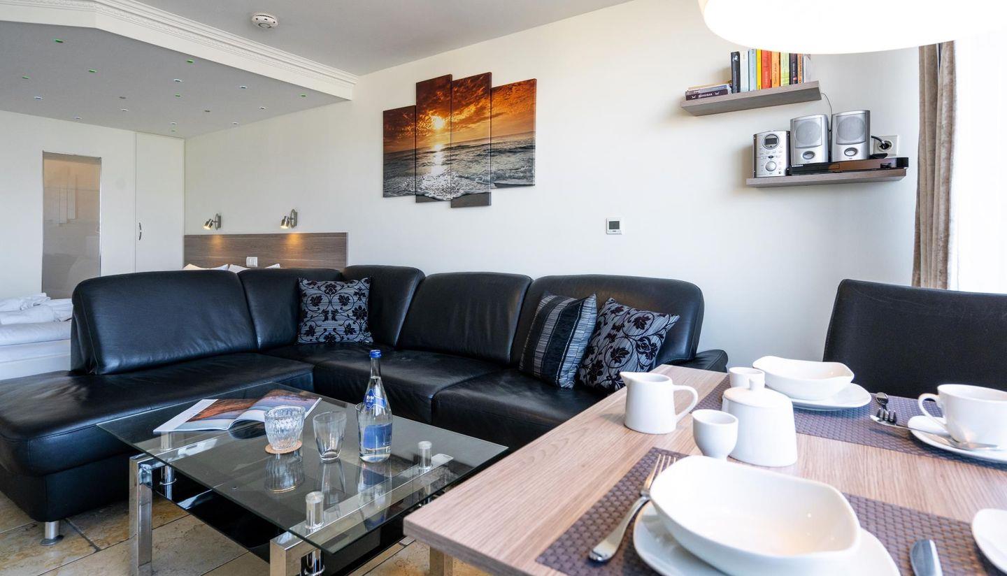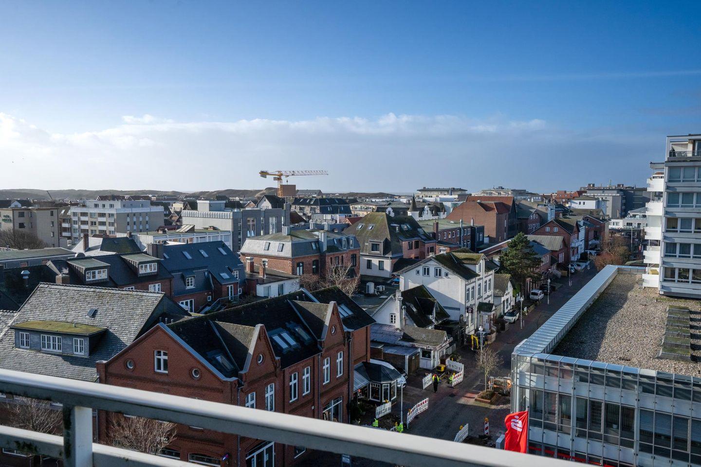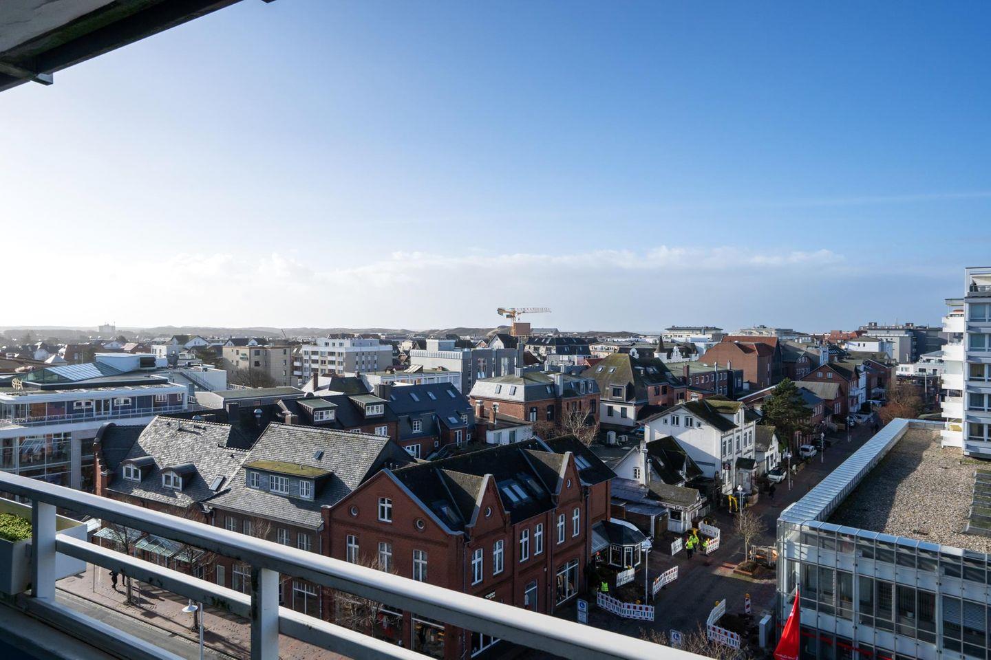 Genießen Sie den Blick über die Dächer von Westerland bis hin zum Meer in diesem luxuriösen, modern eingerichteten 42 m² großen 1-Zimmer-Appartement. Der lichtdurchflutete Wohn- und Schlafraum bietet ein großes Doppelbett (180 x 200 cm) und edle Natursteinböden. Das Whirlpool-Duschbad mit integriertem TV sorgt für besonderen Komfort. Auf dem West-Balkon mit Gartentisch und Stühlen lässt sich das Frühstück mit Meerblick genießen. Ein Tiefgaragenstellplatz sowie ein Fahrradkeller (kein garantierter Platz) sind vorhanden. Das Appartement liegt zentral, nur wenige Gehminuten von Strand, Promenade, Fußgängerzone und Bahnhof entfernt. Einkaufsmöglichkeiten, Restaurants und das Wellenbad befinden sich in unmittelbarer Nähe. Ein Fahrstuhl sorgt für zusätzlichen Komfort. Haustiere sind willkommen!