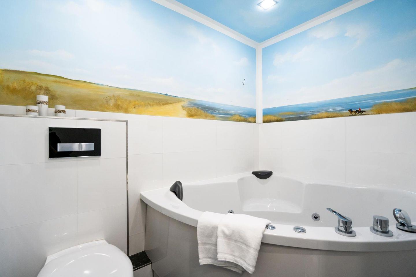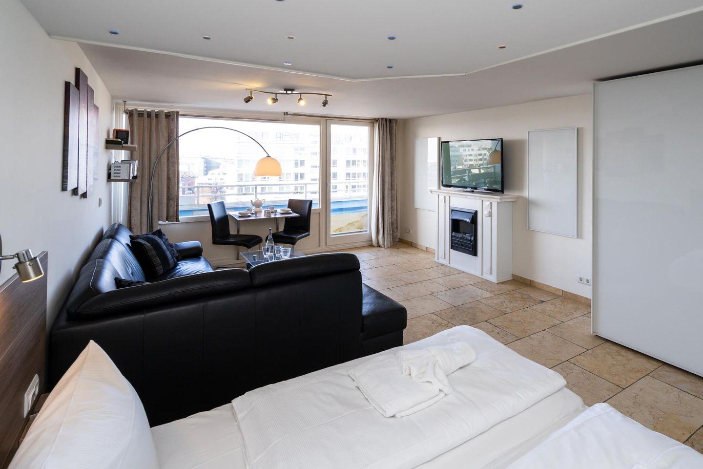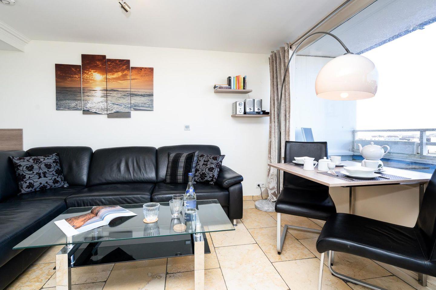 Modern renoviertes 1-Zimmer-Appartement in Westerland. 42 m², luxuriöse Ausstattung, Whirlpool-Duschbad mit TV, West-Balkon mit Meerblick, Tiefgaragenstellplatz, Fahrradkeller. Zentrale Lage nahe Strand und Promenade. Haustiere willkommen!