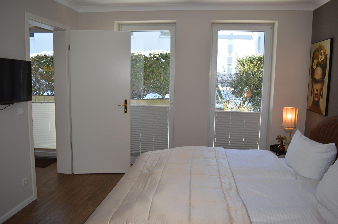 Exklusive 105 m² große, barrierefreie Ferienwohnung in direkter Strandnähe in Westerland. Diese moderne Wohnung bietet zwei Schlafzimmer, zwei luxuriöse Duschbäder, eine separate Küche und eine Terrasse mit Gartenmöbeln. Ein Pkw-Stellplatz in der Tiefgarage und ein Fahrradkeller stehen zur Verfügung. Waschmaschine und Trockner mit Münzzähler im Keller. Haustiere sind willkommen.