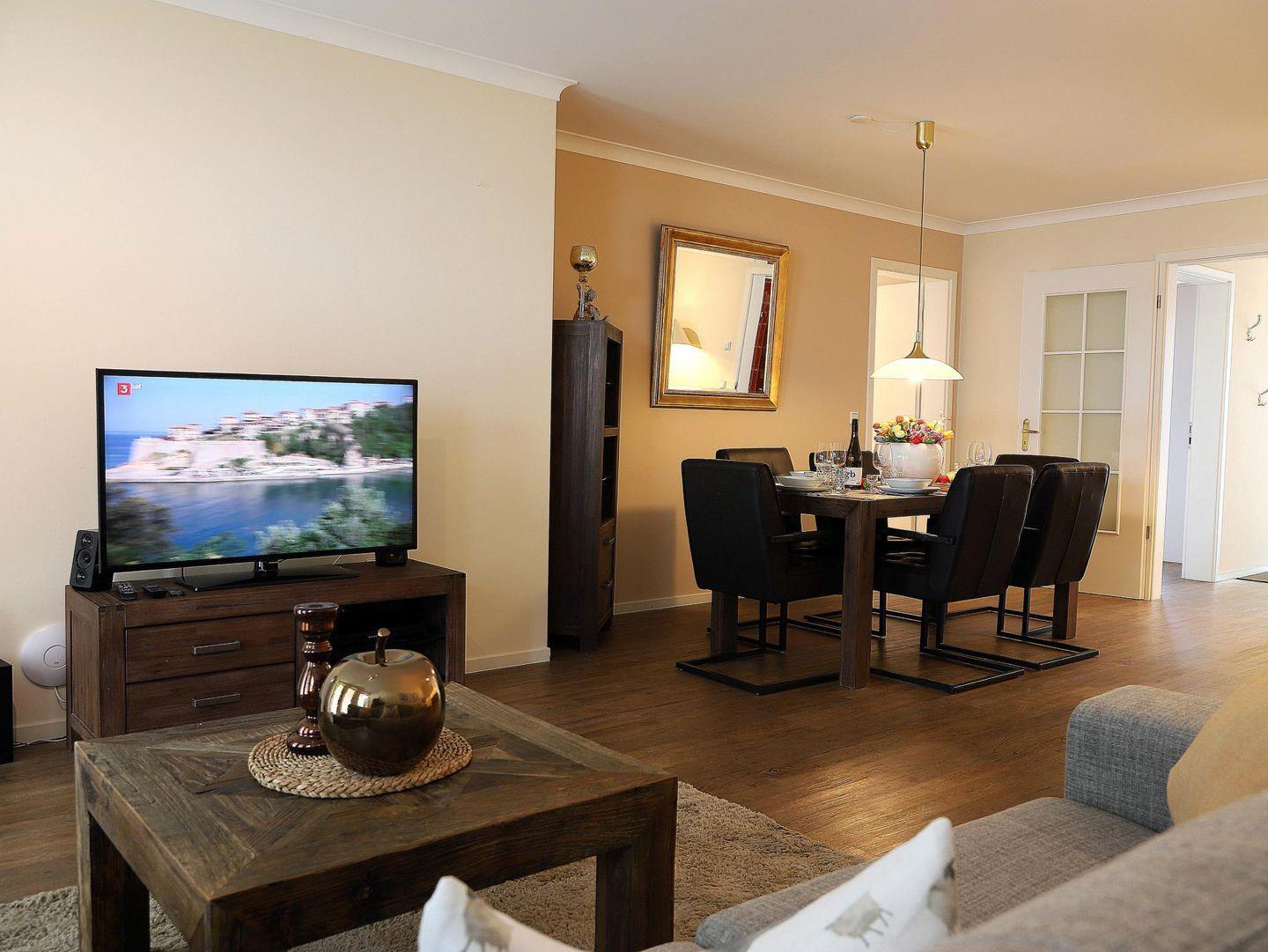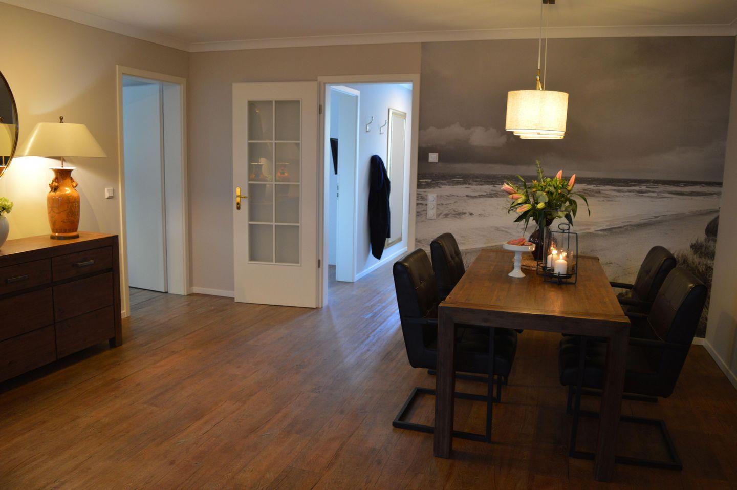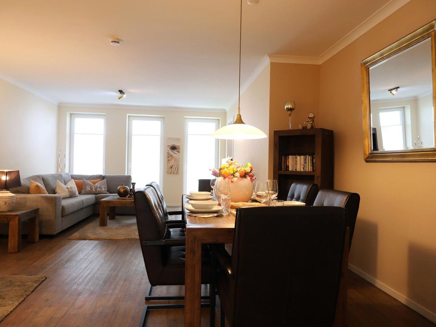 Diese 105 m² große, moderne Ferienwohnung auf einer Ebene befindet sich in der Bomhoffstraße 15, Westerland, in direkter Strandnähe. Die hochwertig eingerichtete Nichtraucherwohnung bietet einen großzügigen Wohn-/Essbereich, zwei geräumige Schlafzimmer mit Doppelbetten (jeweils 180 x 200 cm), Kabel-TV und zwei anspruchsvolle Duschbäder, eines davon en suite. Die separate, voll ausgestattete Küche sowie die Terrasse mit bequemen Gartenmöbeln laden zum Verweilen ein. Zur Wohnung gehören ein Pkw-Stellplatz in der Tiefgarage (Durchfahrtshöhe 2,0 m), ein Fahrradkeller und Münz-Waschmöglichkeiten im Keller. Die ruhige Lage in einer Seitenstraße des Kurviertels bietet schnelle Erreichbarkeit zur Promenade, zum Wellenbad und zur Fußgängerzone in nur 5 Gehminuten. Haustiere sind willkommen, und der Inselradweg liegt in unmittelbarer Nähe – perfekt für einen erholsamen Aufenthalt.