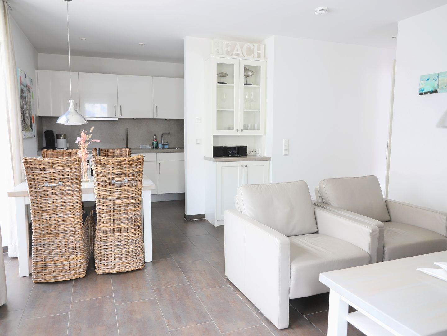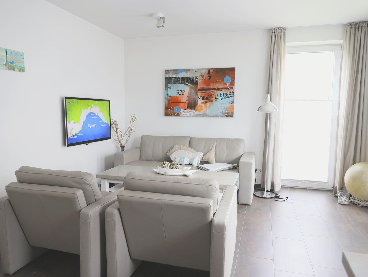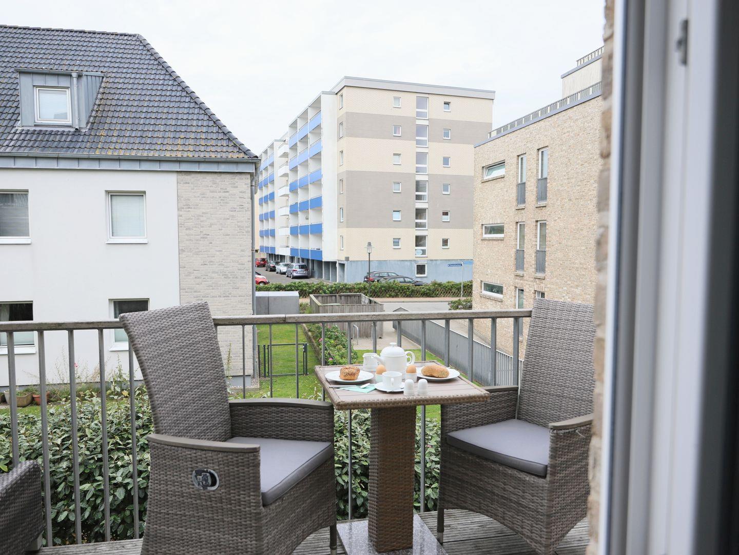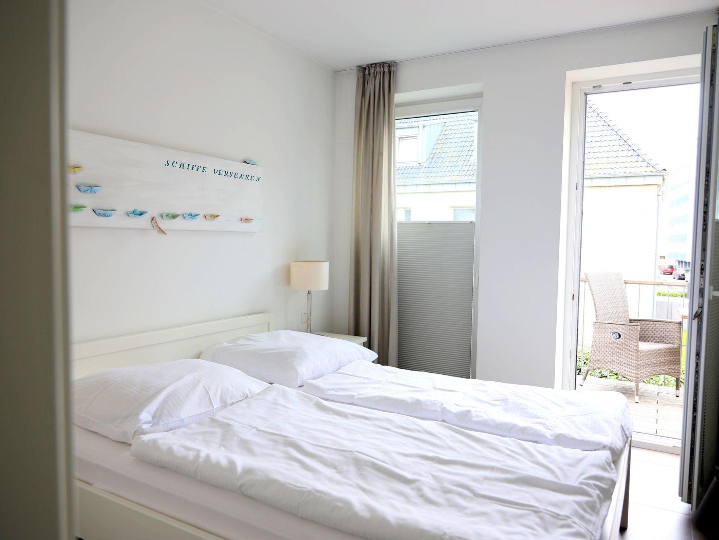 Diese modern eingerichtete 2-Zimmer-Wohnung im 1. Obergeschoss bietet auf ca. 60 m² alles für einen komfortablen Aufenthalt. Der Wohnbereich ist mit einem gemütlichen Sofa und einer offenen Küche mit Geschirrspüler ausgestattet. Das Schlafzimmer verfügt über ein Doppelbett (160 x 200 cm) und Kabel-TV. Zwei Balkone, einer nach Norden und einer nach Westen, laden zum Entspannen ein. Ein Badezimmer mit bodenebener Dusche, ein Tiefgaragenstellplatz und ein Fahrradkeller sind ebenfalls vorhanden. Die Wohnung liegt ruhig, nur wenige Schritte zur Innenstadt und zum Strand. Haustiere sind nicht gestattet.