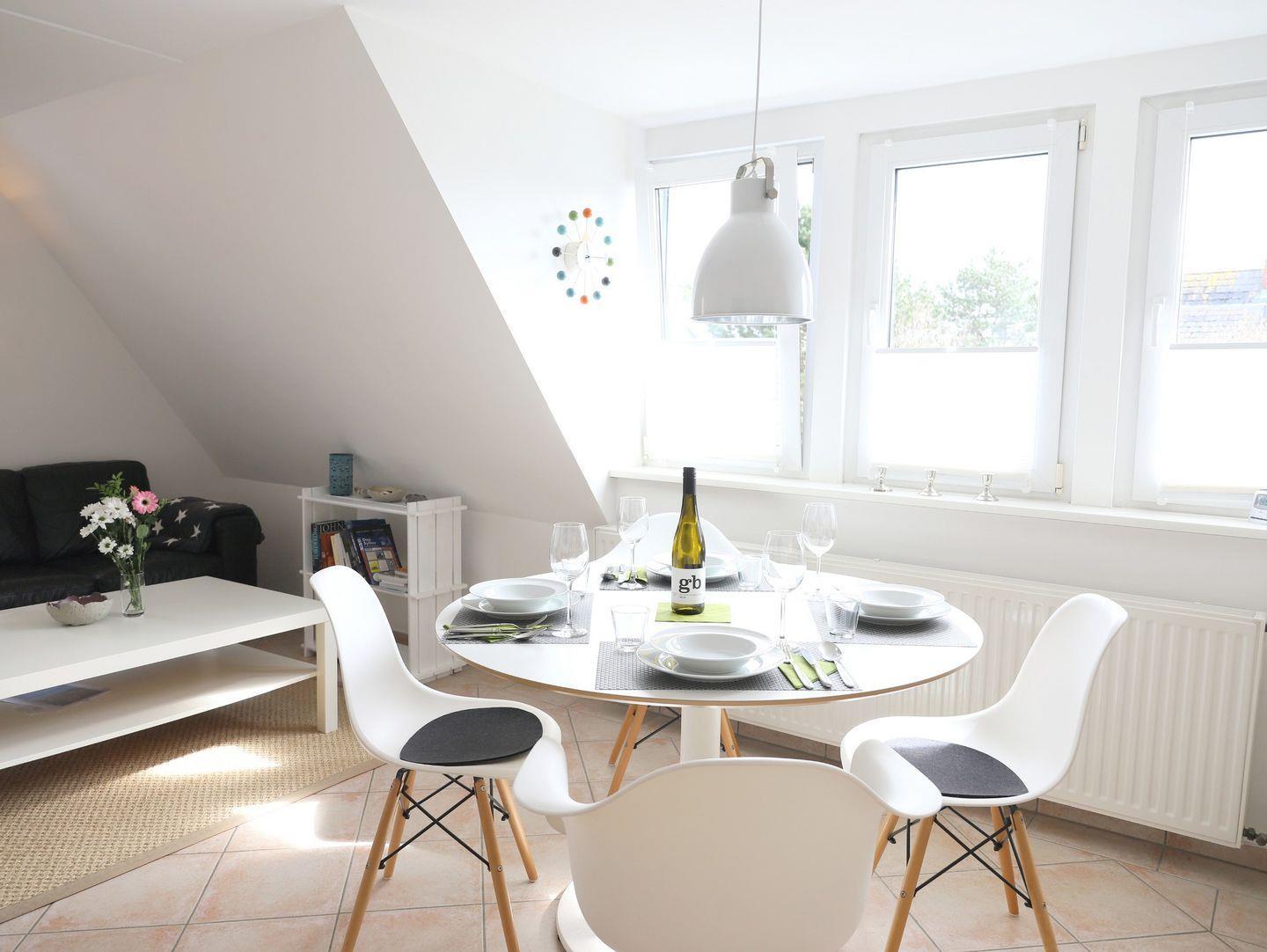 39 m² Dachgeschosswohnung für 2 Personen in Westerland. Ruhige Lage nahe Friedrichshain und Strand, Süd-Terrasse, Gartennutzung, Fire TV-Stick. Keine Haustiere erlaubt.