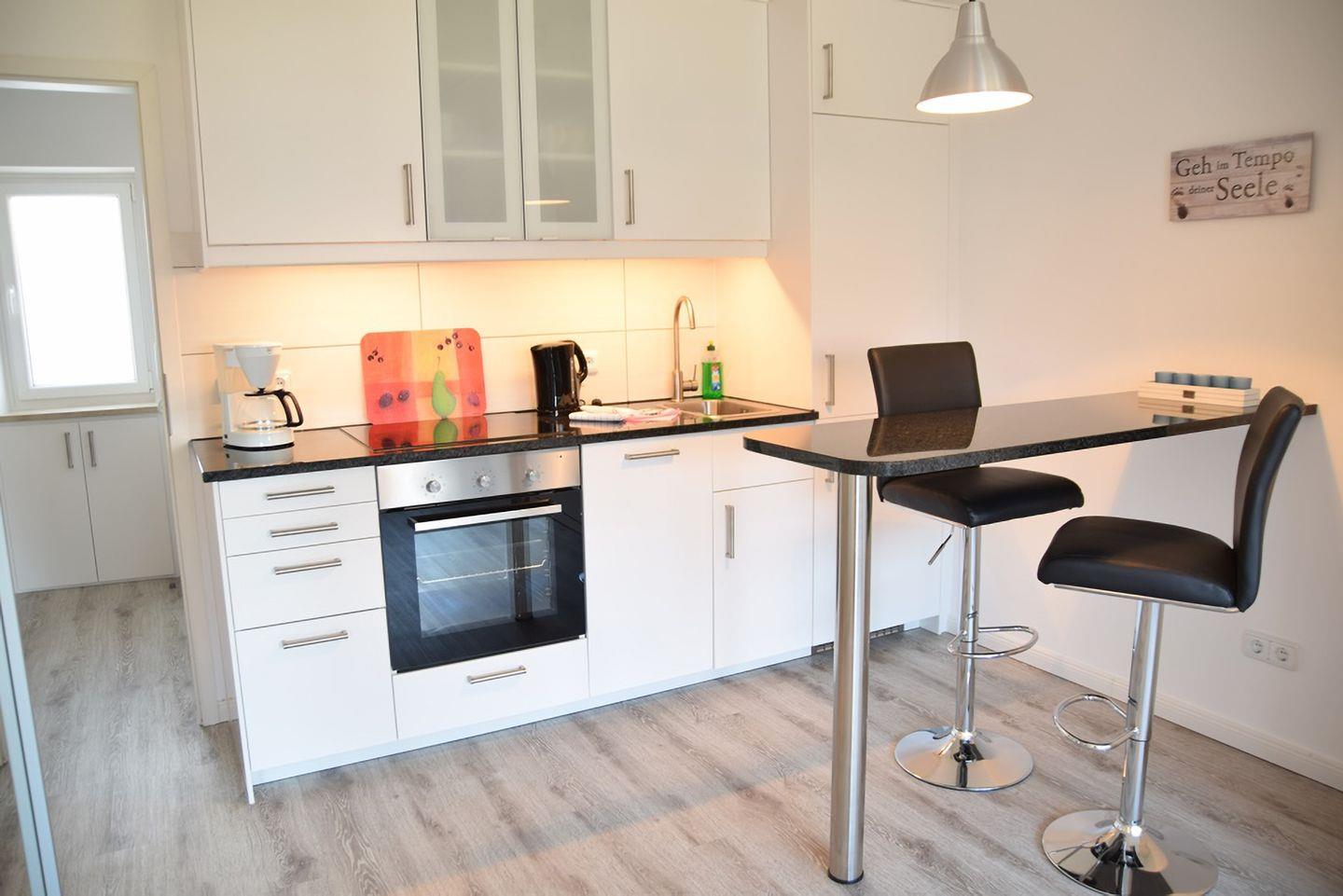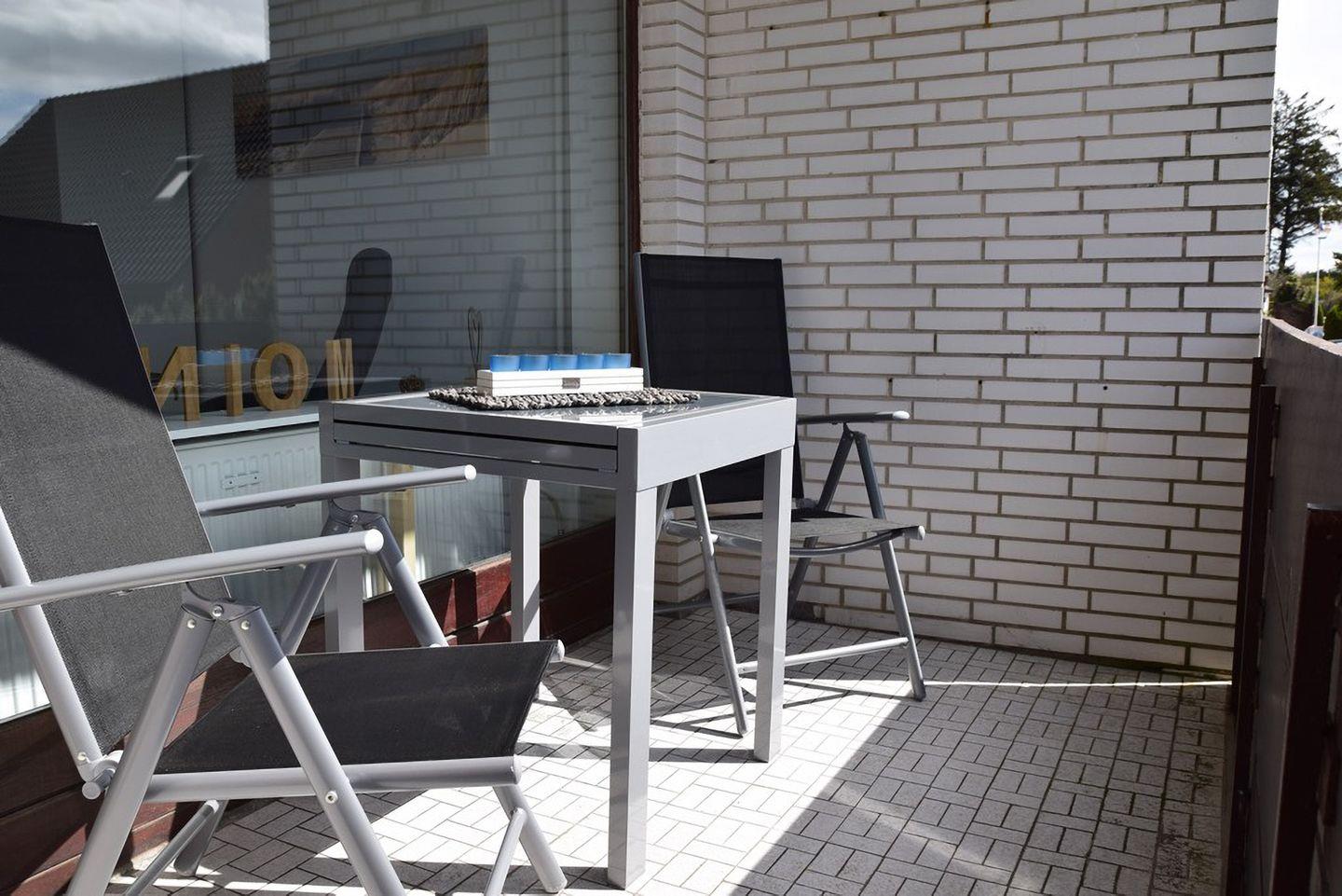 Modernes, renoviertes 1-Zimmer-Appartement für 2 Personen mit großem Südbalkon. Haustiere willkommen! Gut ausgestattete offene Küche, Schrankbett und komfortable Sitzecke. Zentrale Lage in Westerland mit Einkaufsmöglichkeiten in der Nähe.
