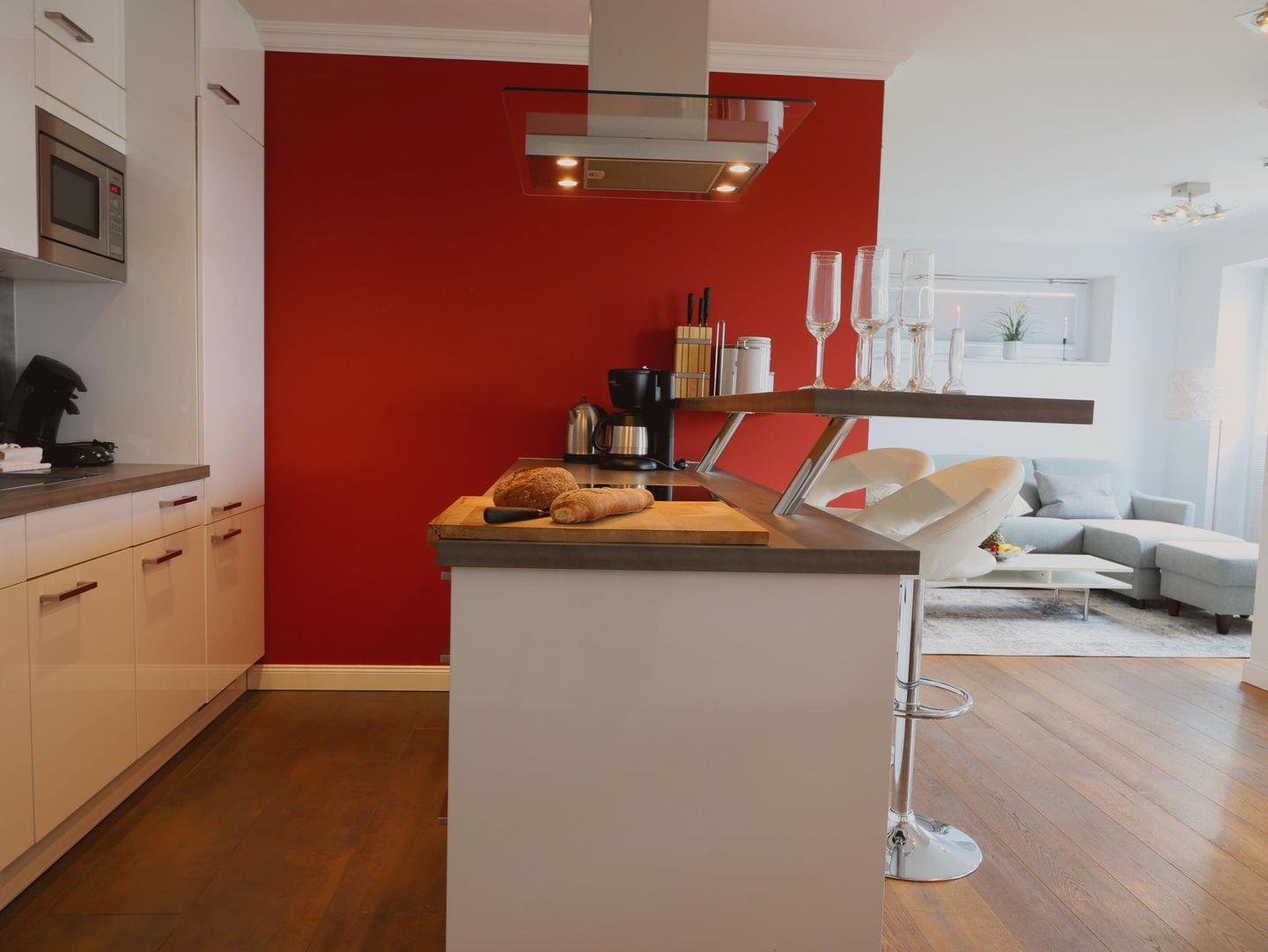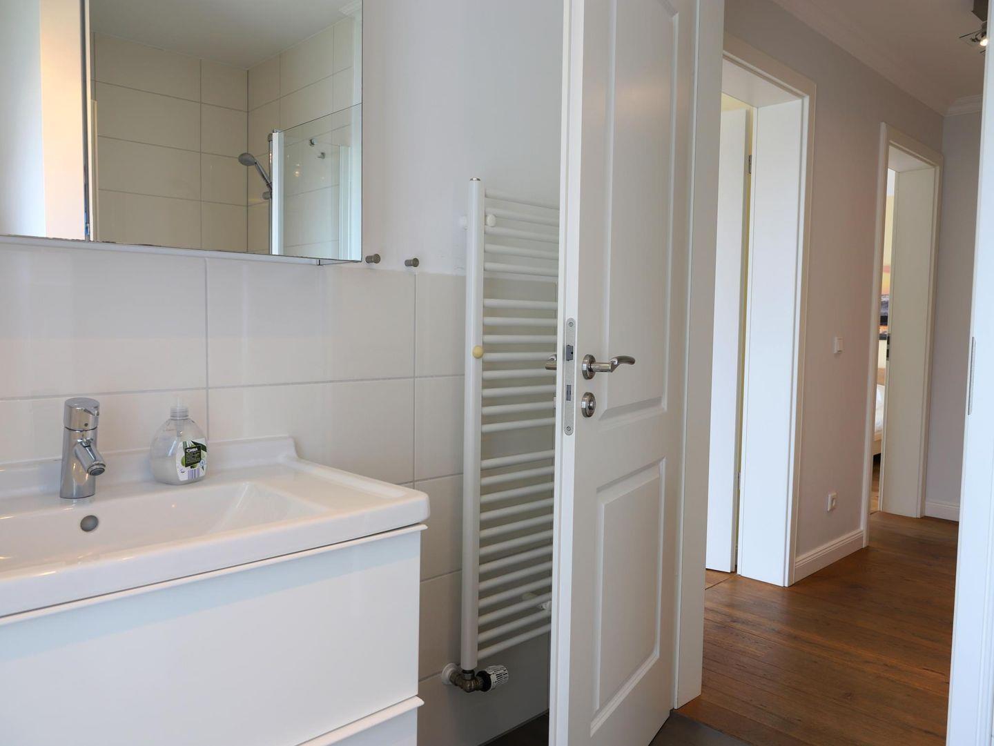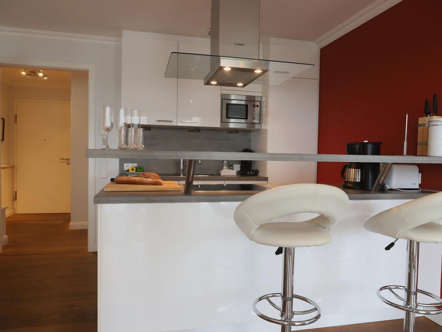 Helle, barrierefreie Neubau-Wohnung (83 m²) im 2. Stock mit West-Balkon, 2 Schlafzimmern, 2 Bädern und voll ausgestatteter Küche. In nächster Strandlage, nahe Fußgängerzonen. Mit kostenfreiem WLAN, TV, Musikanlage, Waschmaschine und Trockner. Haustiere auf Anfrage, Nichtraucherwohnung. Tiefgaragenstellplatz (max. Fahrzeuglänge: 5,0 m, Breite: 1,9 m, Höhe: 1,5 m) auf eigene Verantwortung.