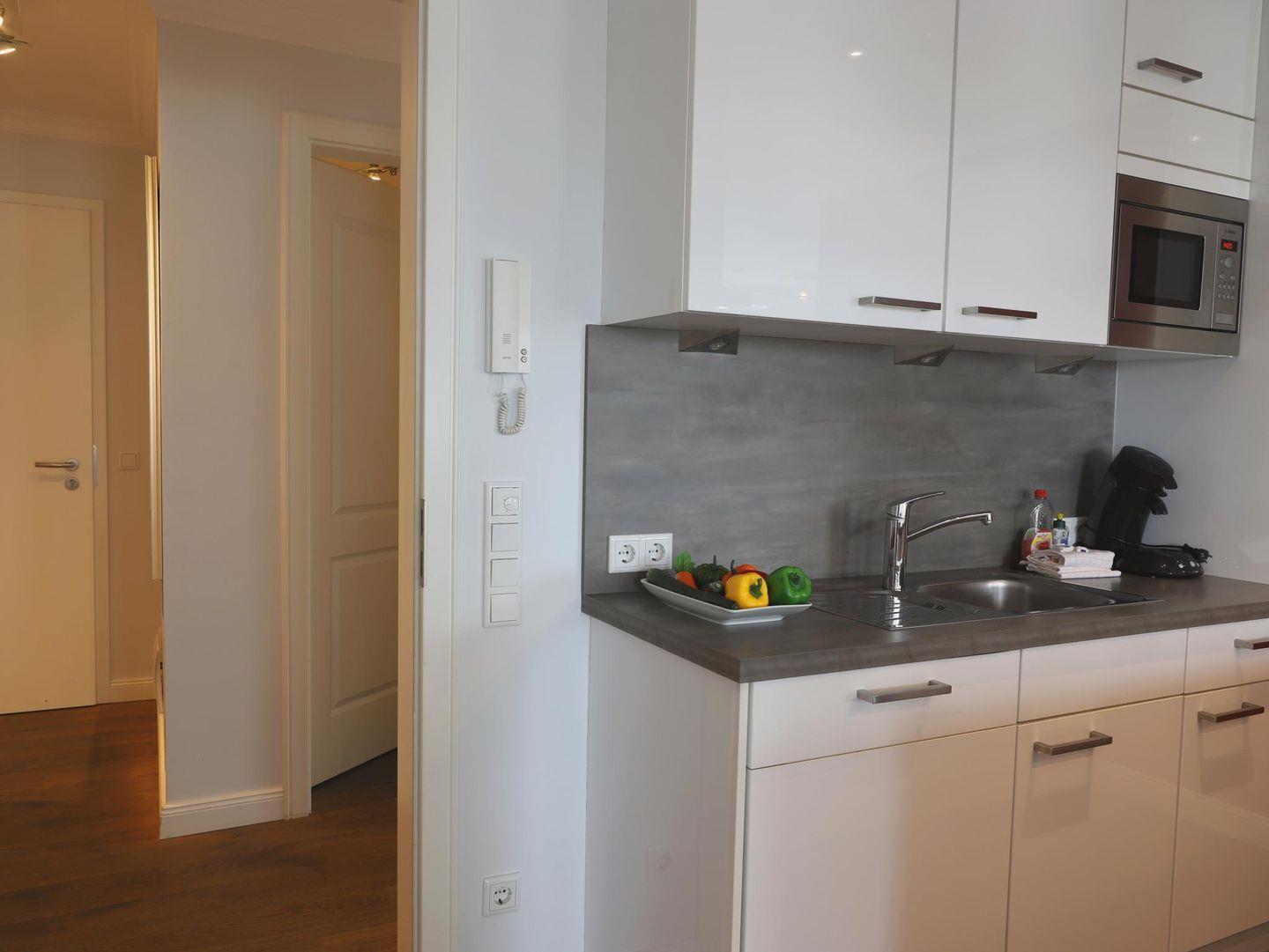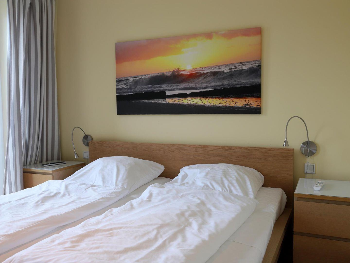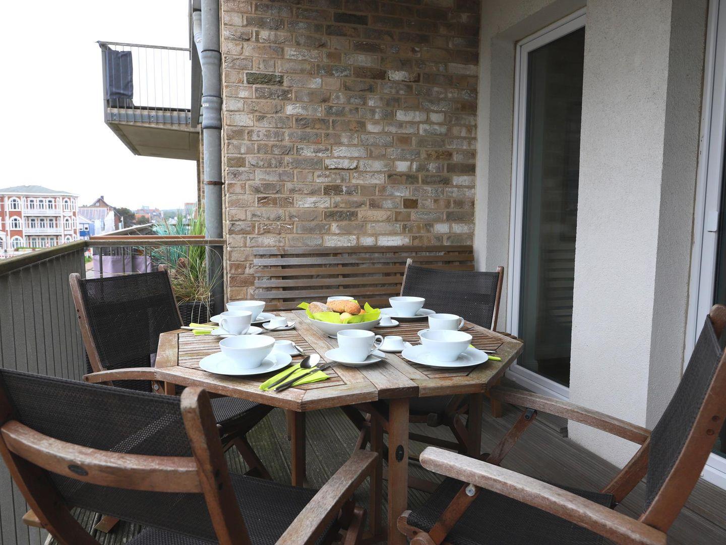 In zentraler Lage, nur wenige Minuten vom Brandenburger Platz und den Strandzonen entfernt, liegt diese moderne Neubau-Wohnung (83 m²) im 2. Stock mit Aufzug. Sie bietet viel Helligkeit in 3 Zimmern. Das große Wohn-Esszimmer hat einen West-Balkon mit Blick auf die Dünen. Ein Flatscreen-TV, Blue-Ray-Player, Sony-Musikanlage (mit iPod/iPhone-Anschluss) und kostenfreies WLAN sorgen für Unterhaltung. Die offene Küche ist komplett ausgestattet. Die beiden Schlafzimmer haben Doppelbetten (je 180 x 200 cm), Flatscreen-TV und Einbauschränke. Ein zusätzliches Bett auf der Schlafcouch (160 x 200 cm) im Wohnzimmer ist möglich. Das geräumige Bad hat eine ebenerdige Dusche, zusätzlich gibt es ein separates WC. Waschmaschine und Trockner stehen in der Wohnung zur Verfügung. Haustiere auf Anfrage. Der Tiefgaragenstellplatz ist für Fahrzeuge mit maximaler Länge von 5,0 m, Breite von 1,9 m und Höhe von 1,5 m geeignet (auf eigene Verantwortung).